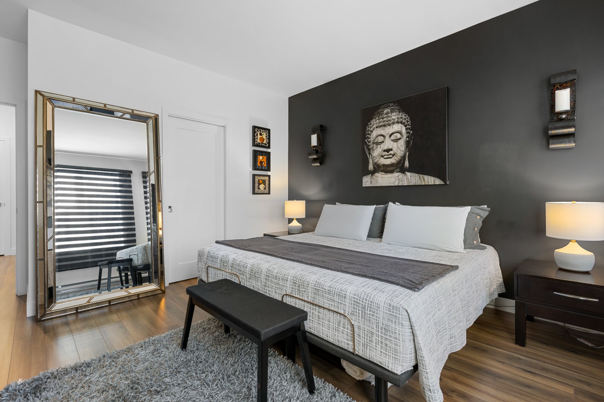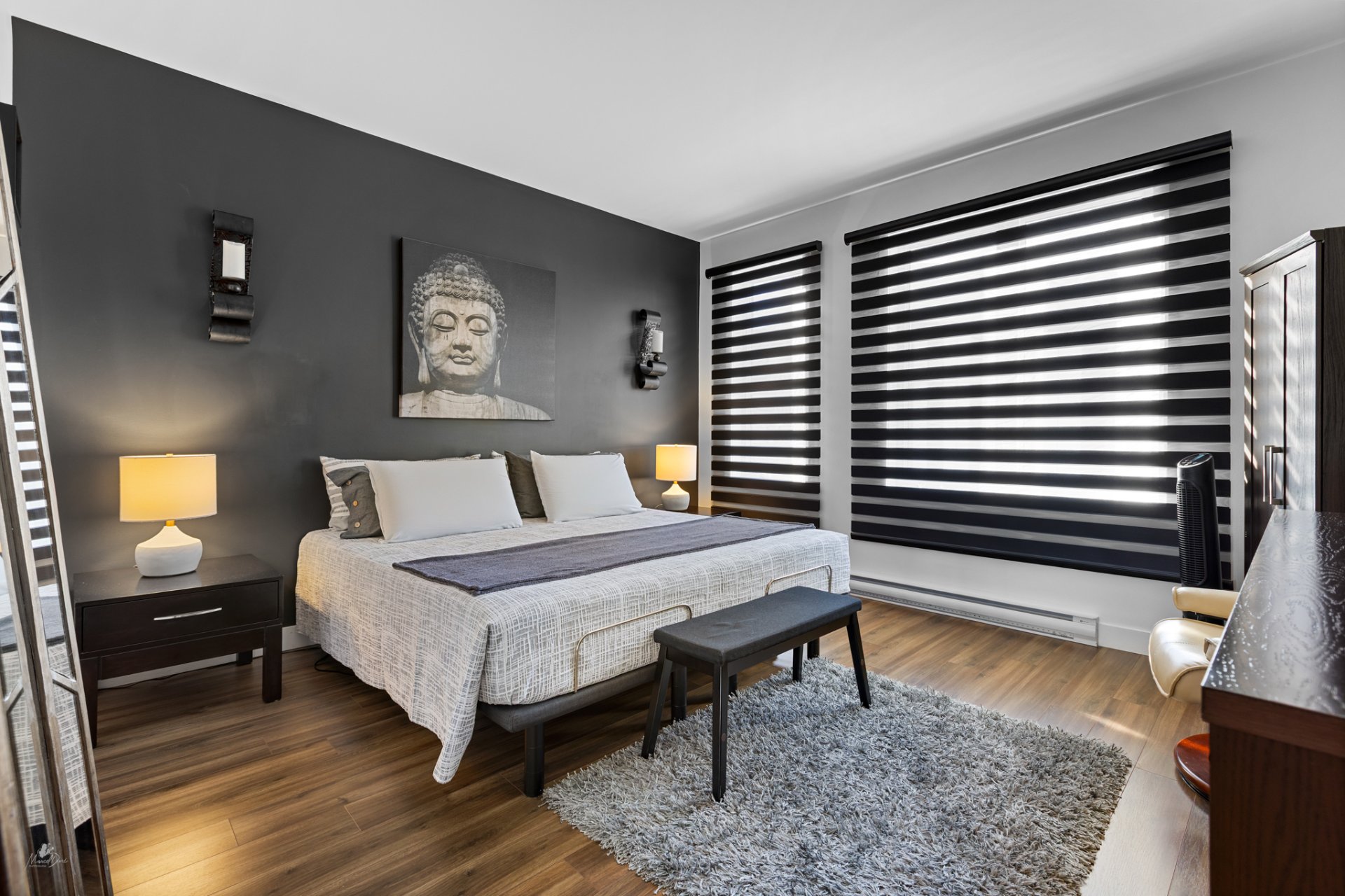 * Master bedroom with electric blinds