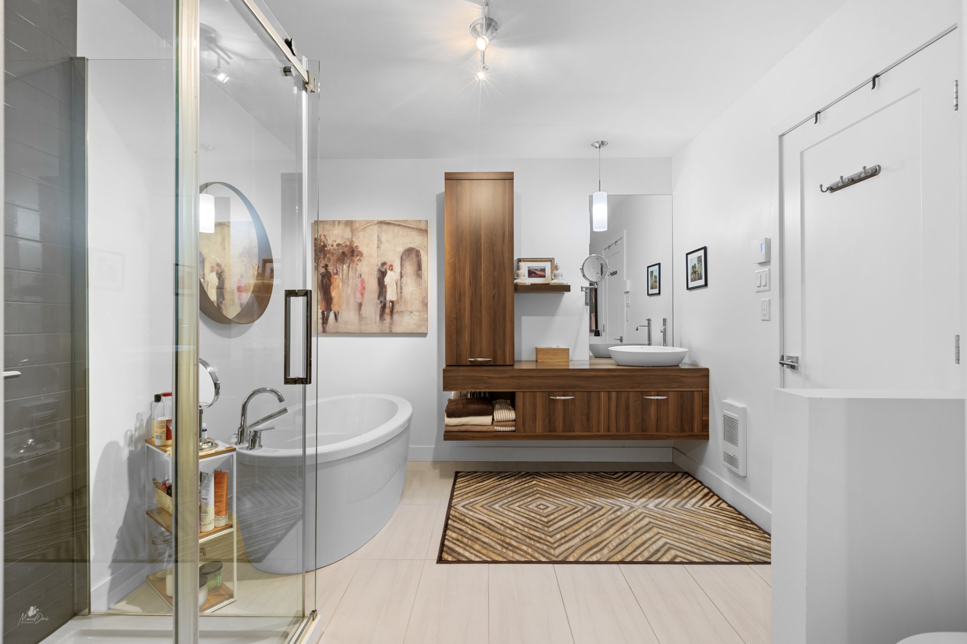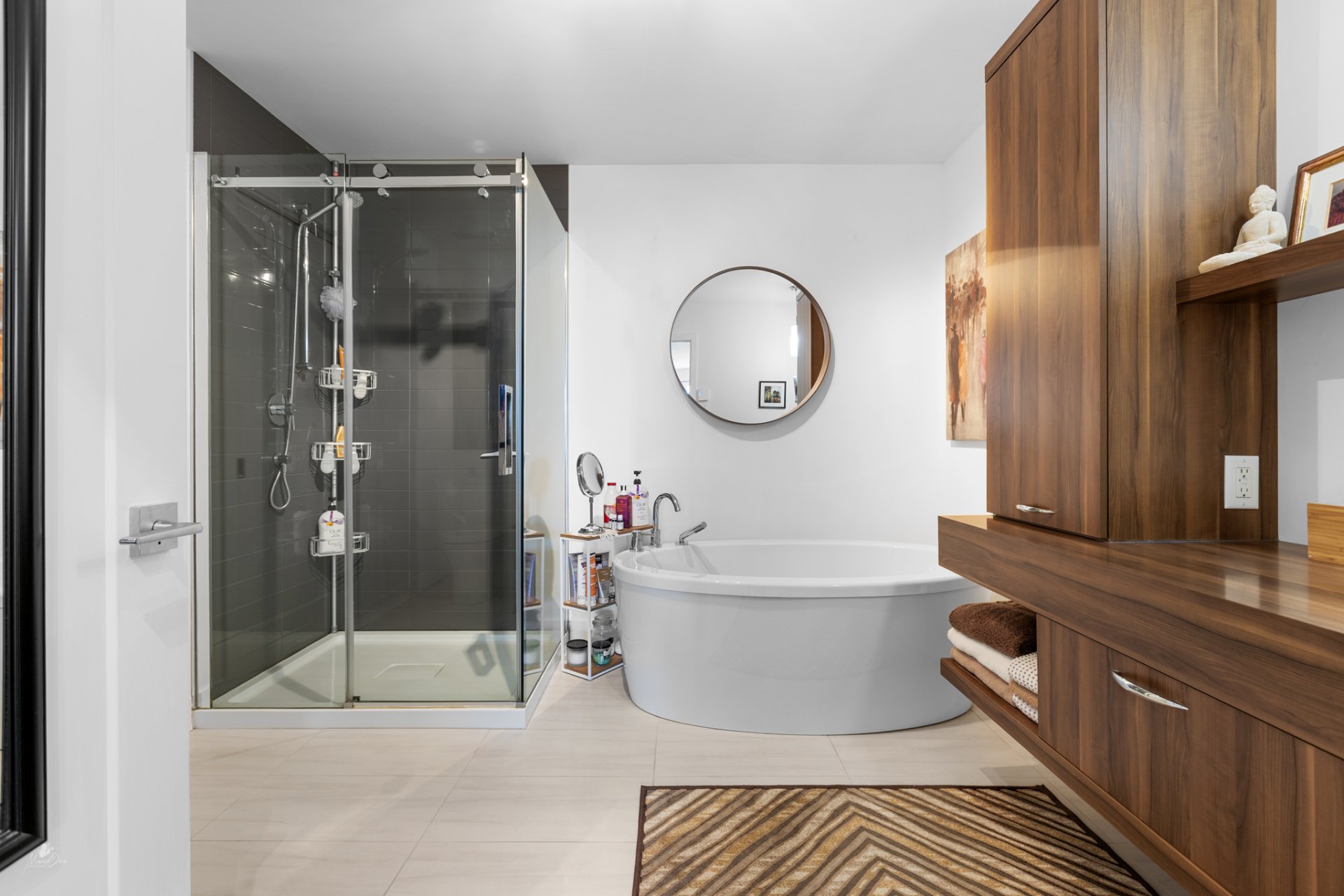 * Luxurious bathroom with a freestanding oval bathtub and a