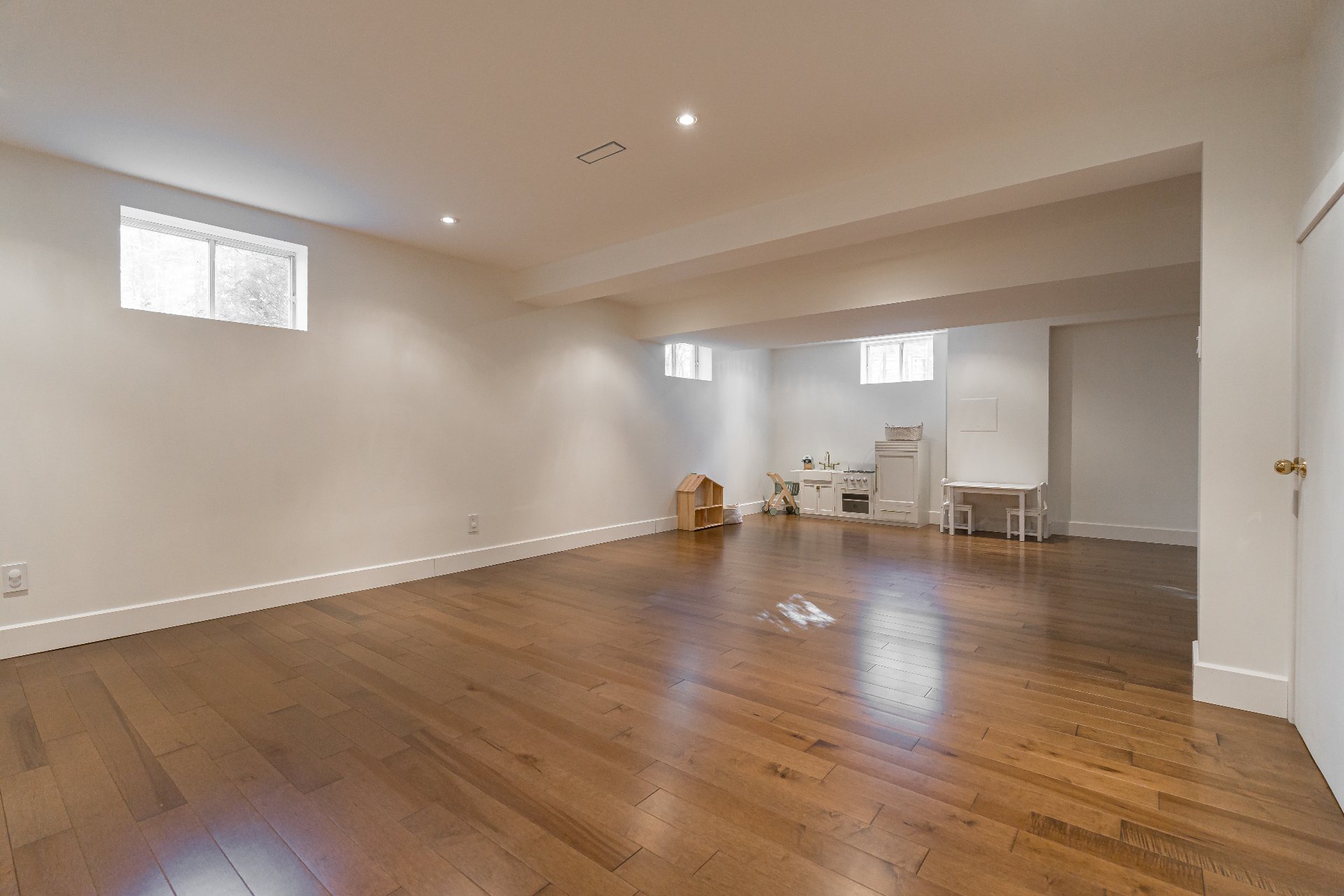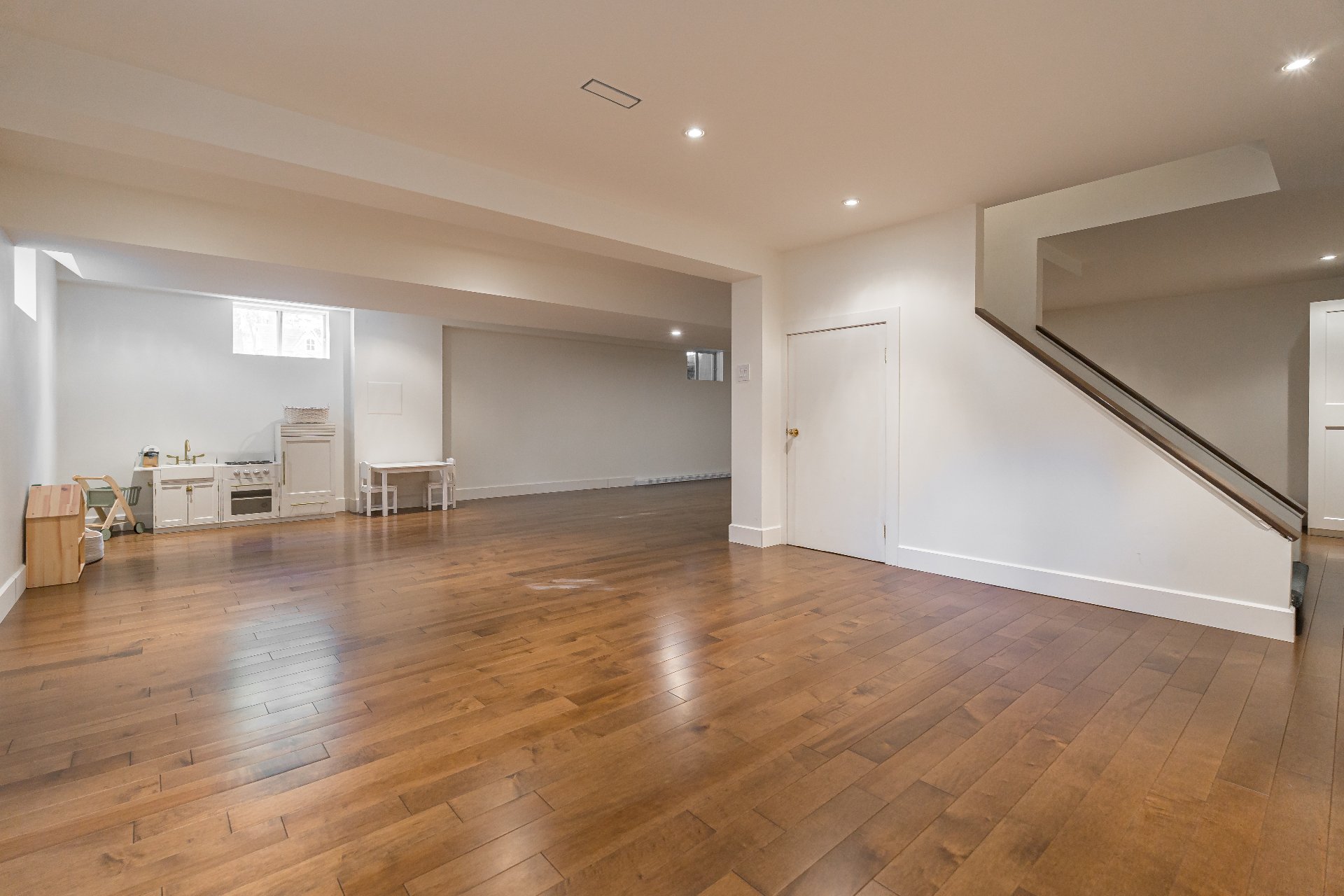 Large open area ideal for a playroom, gym, or family room