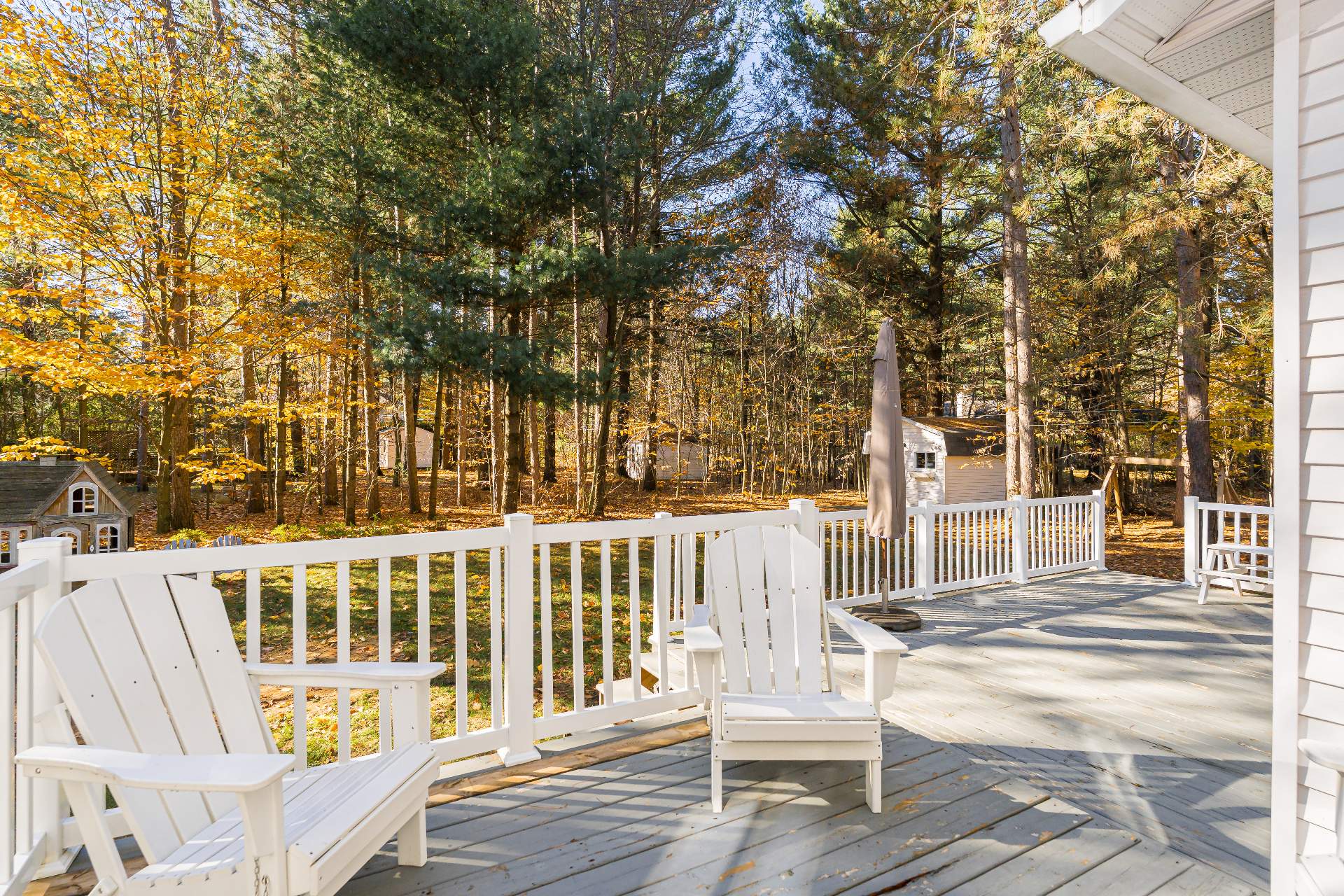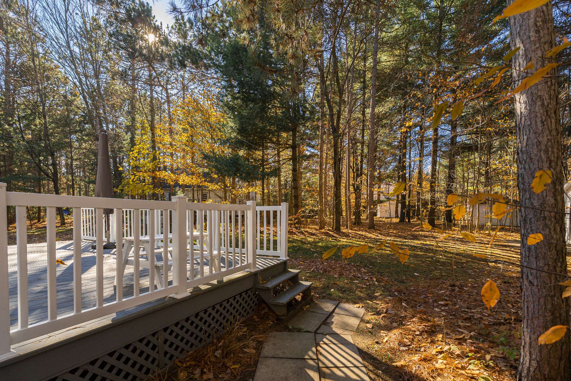 Tranquil backyard with deck -- perfect for entertaining or