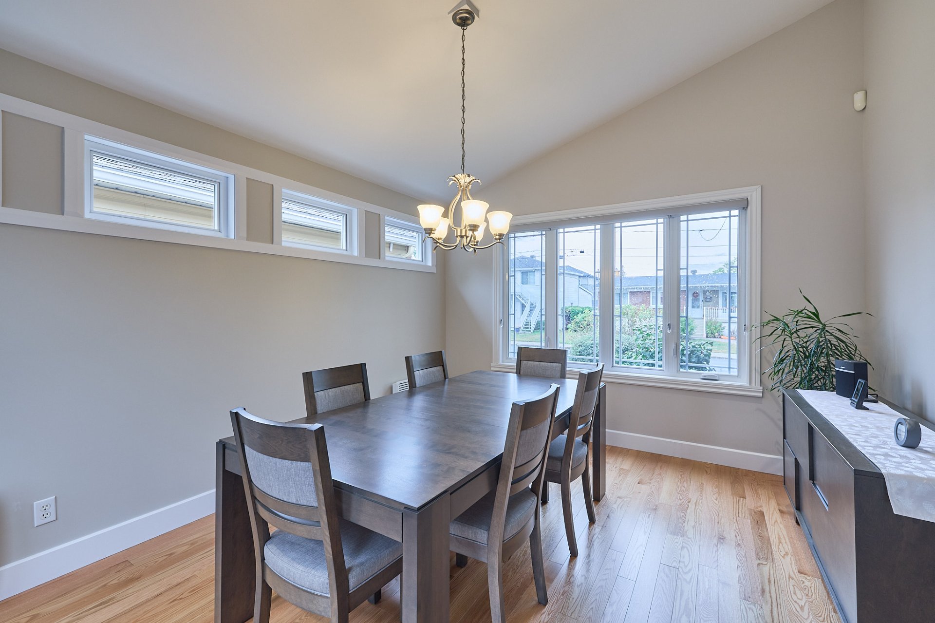 Bright dining room with abundant windows