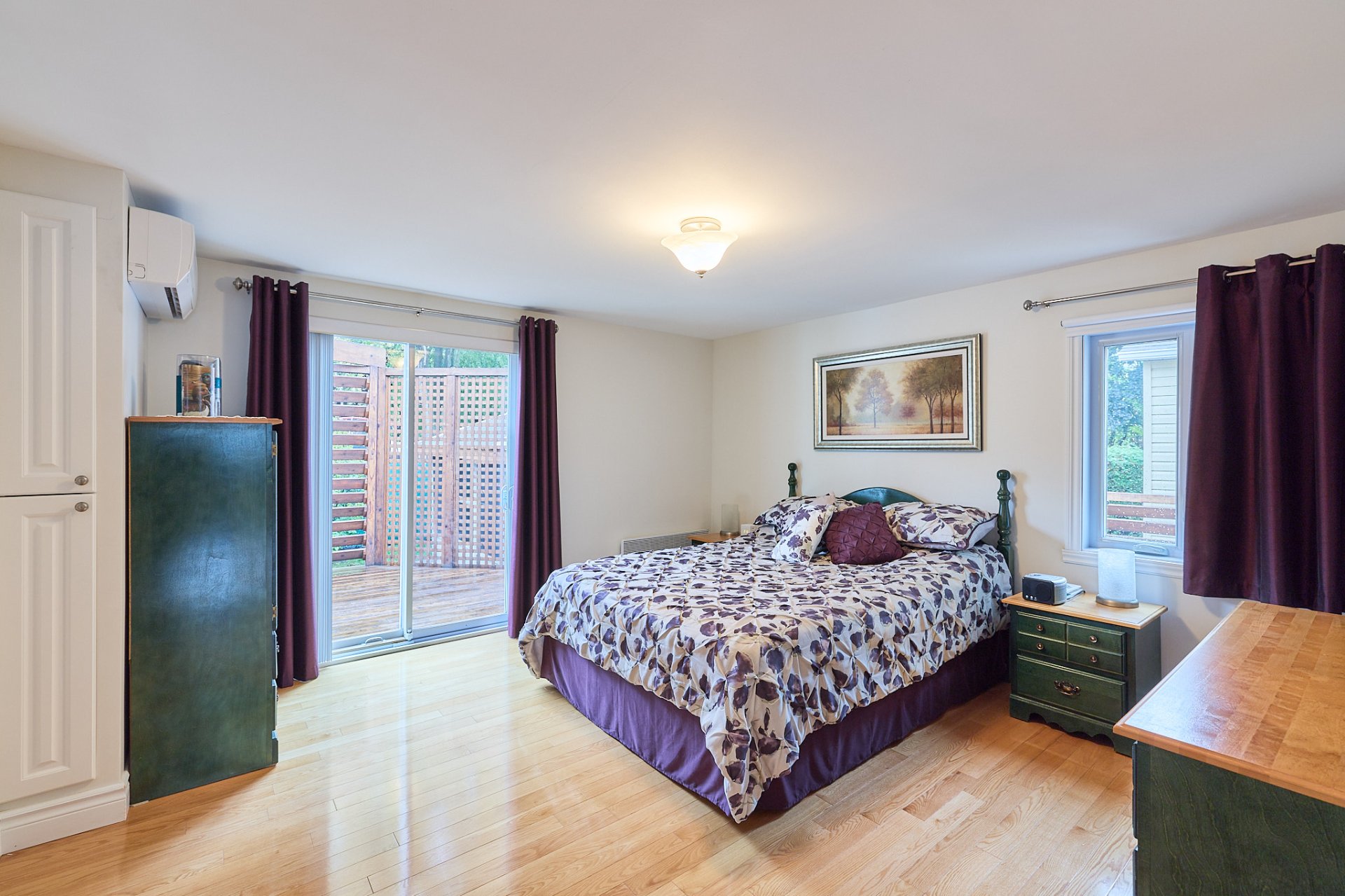 Primary bedroom with patio door opening onto the deck