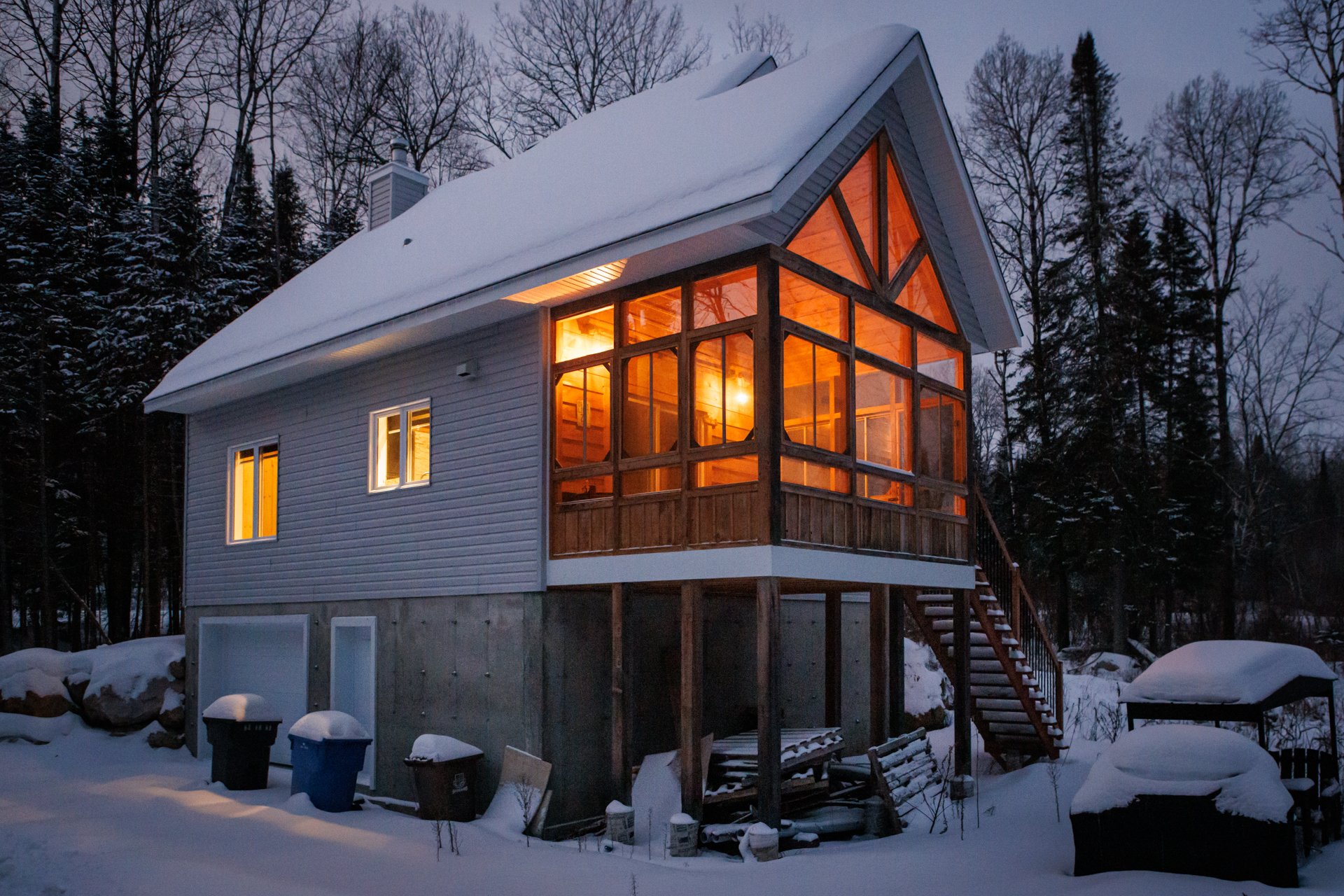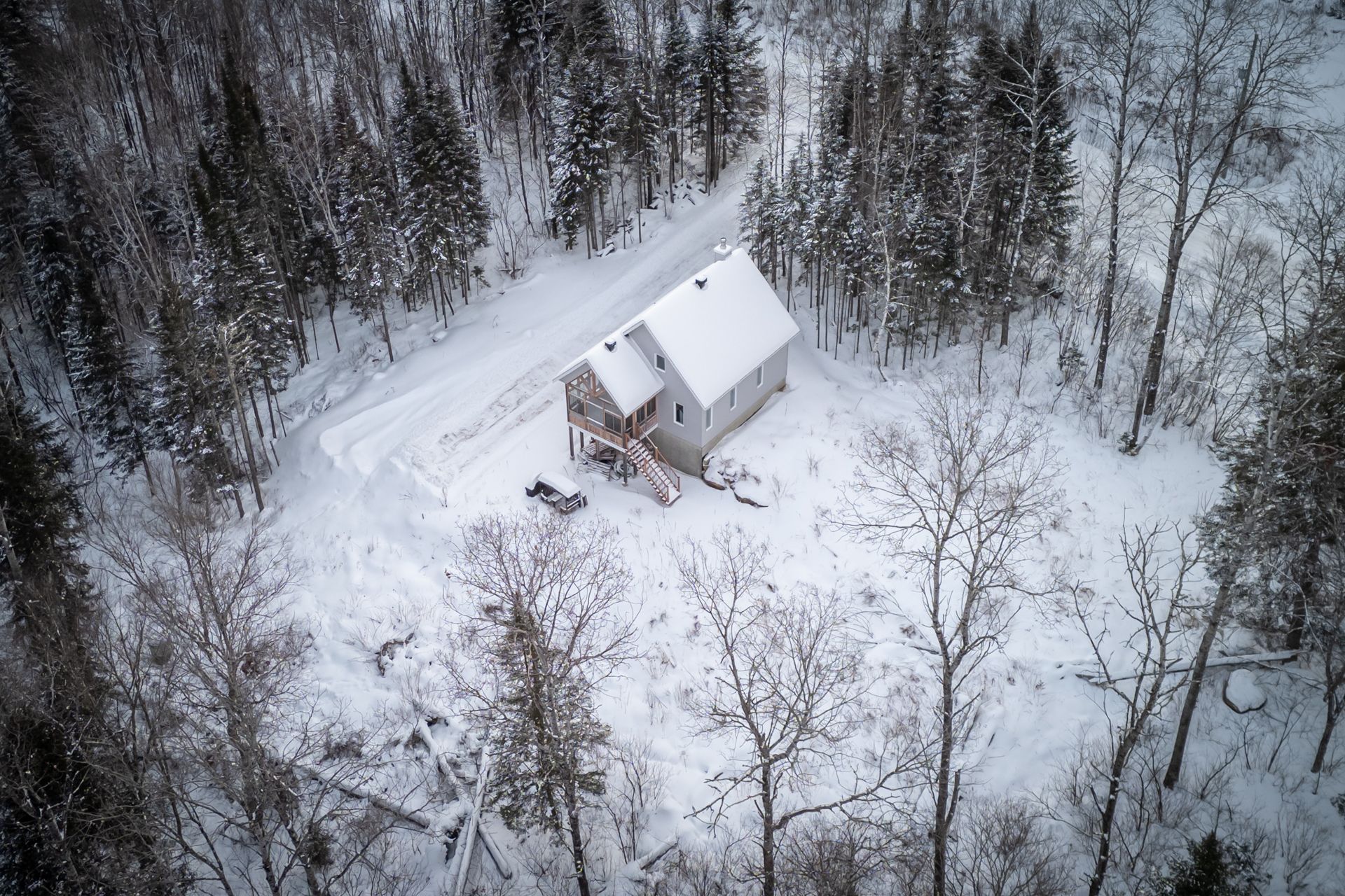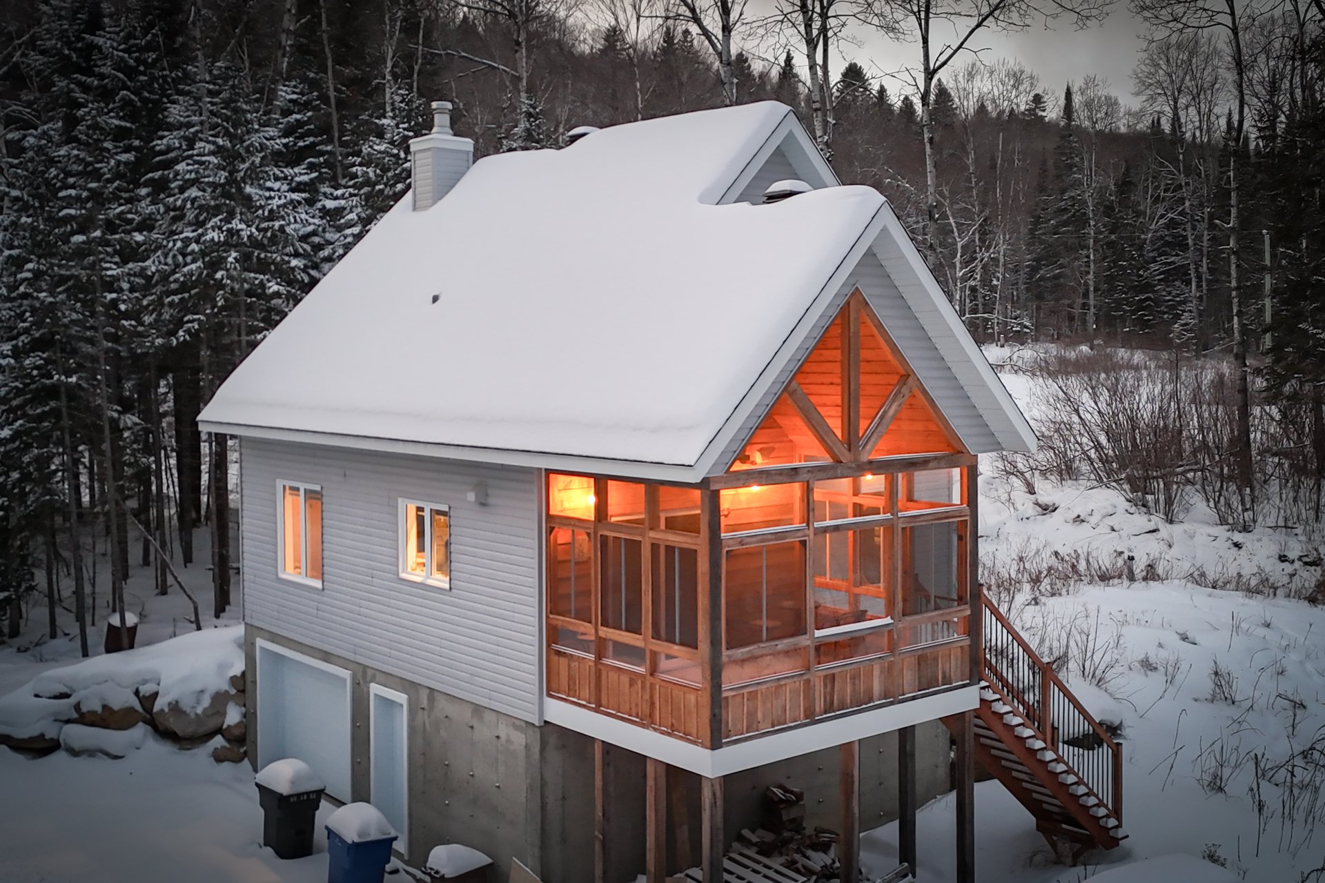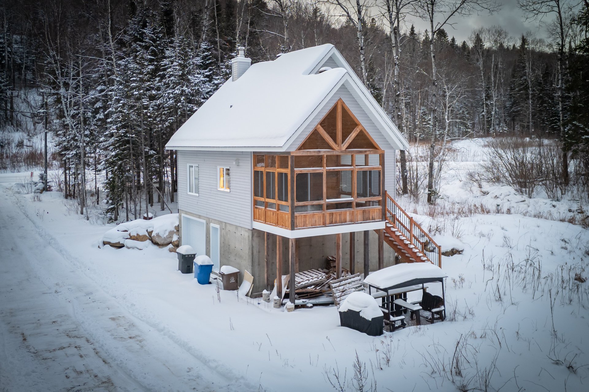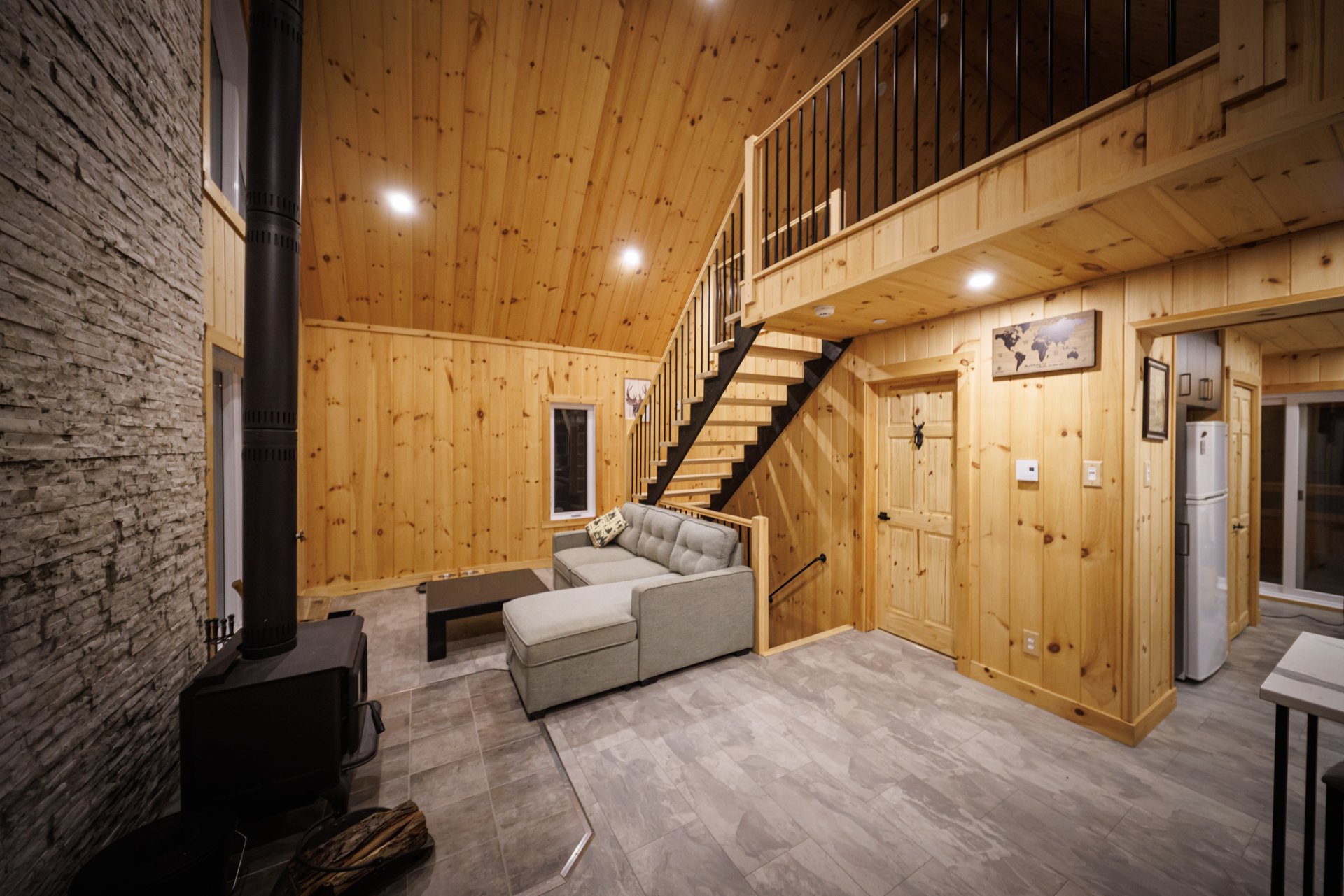 2023 Construction | Marina Dock Access | Nature and Privacy Discover this modern property nestled in an exceptional setting in Saint-Michel-des-Saints, where tranquility meets the joys of the lake. Built in 2023, the home features a wooded lot at the front, ensuring privacy and serenity from the moment you arrive. A charming stream borders the back of the property, which is visited by deer year-round, creating a truly peaceful atmosphere. The bright, open-concept interior is highlighted by its soaring cathedral ceiling and wood-burning stove."