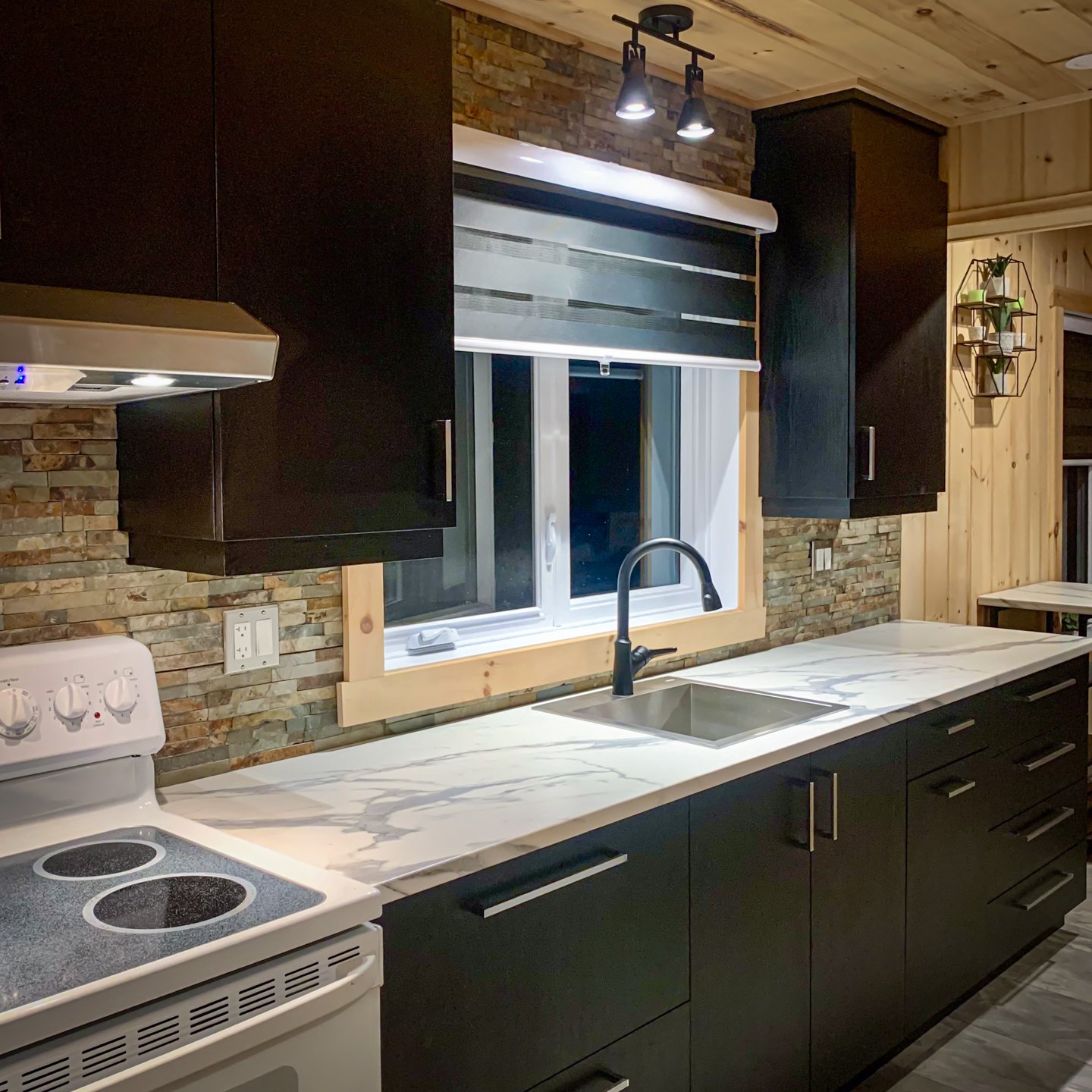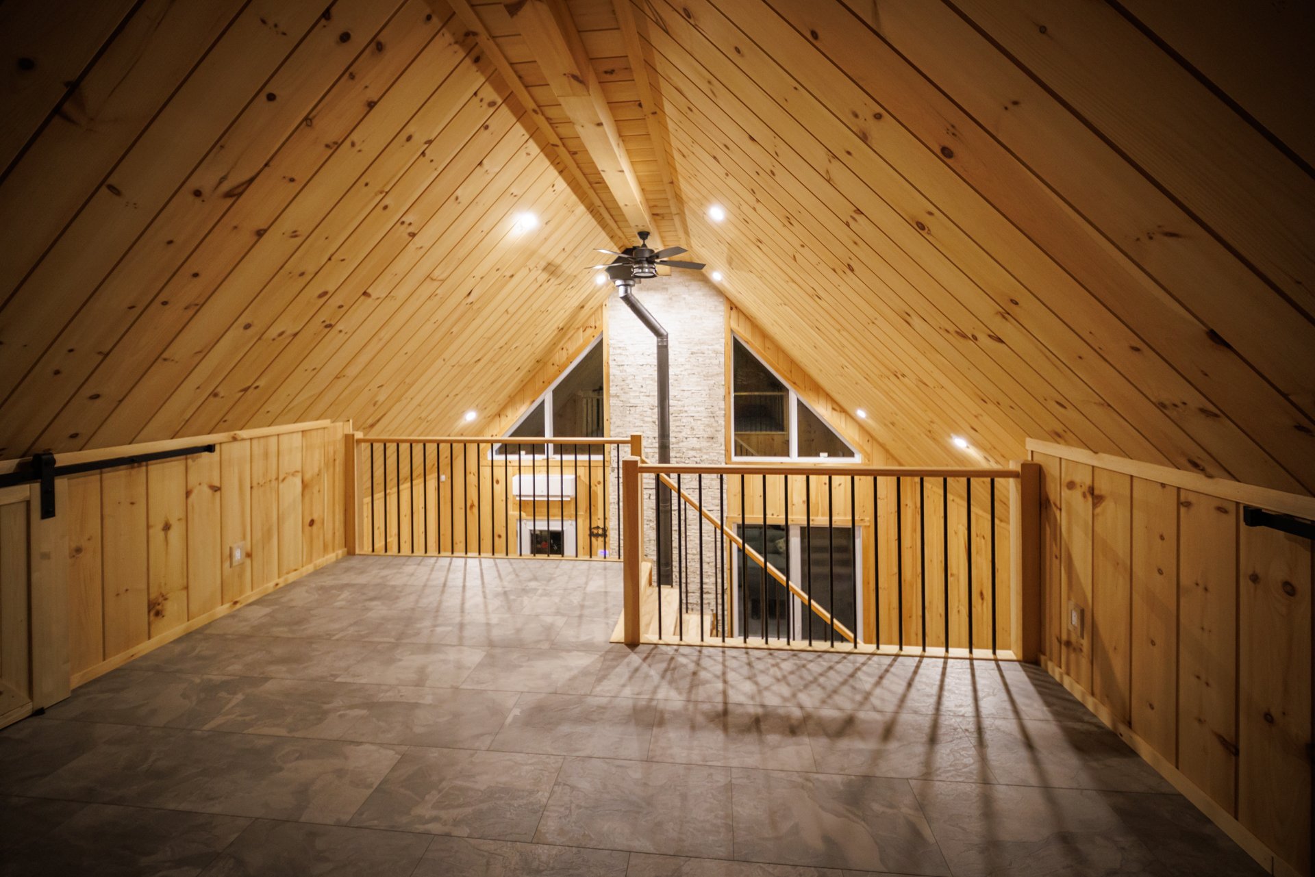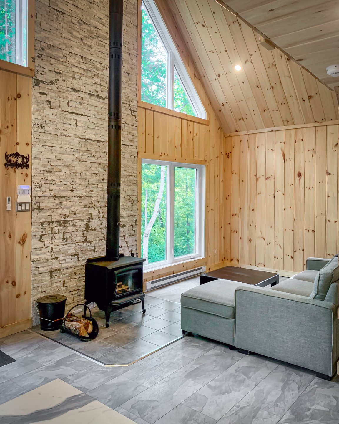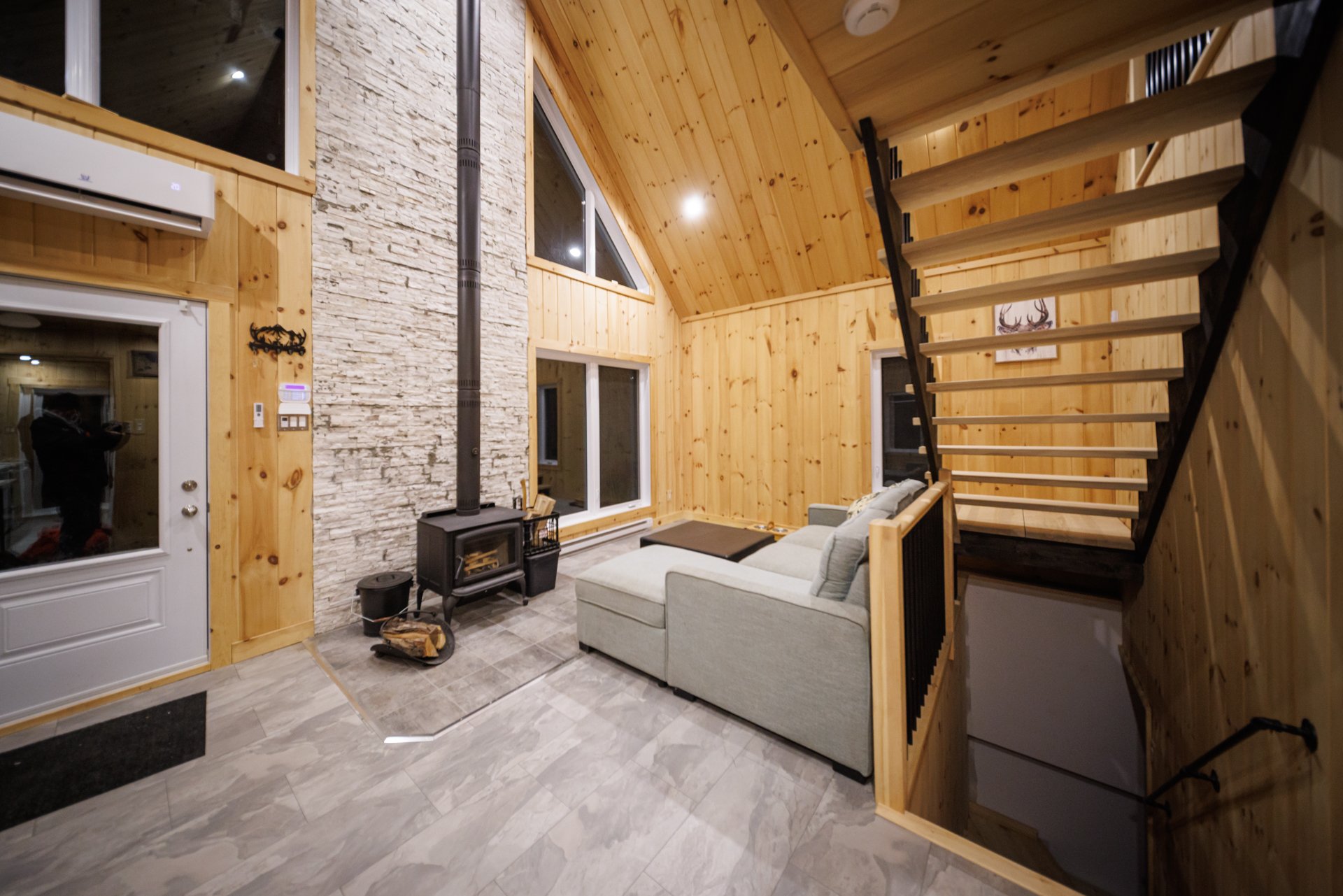 soaring cathedral ceiling and wood-burning stove--perfect