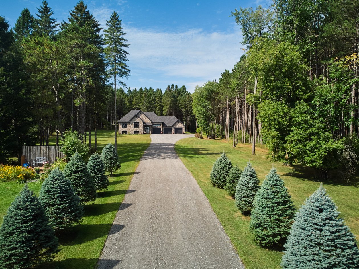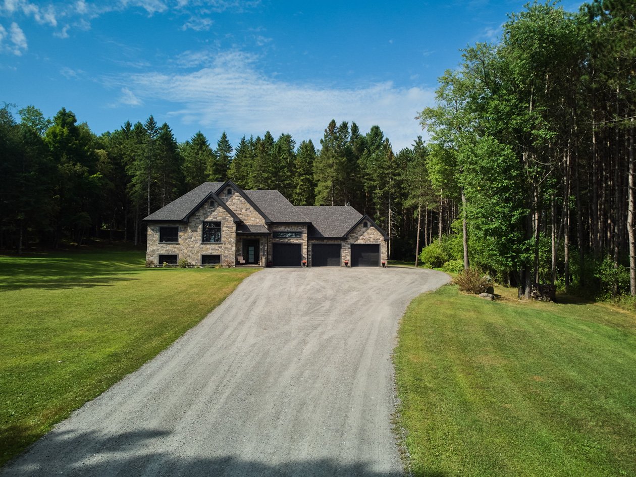 Majestic property nestled on a wooded lot of over 130,000 sq. ft., surrounded by white spruces and offering privacy and tranquility. A private 350-ft entrance, west-facing backyard, and an impressive 1,088 sq. ft. garage. Inside, a refined maple solid-wood kitchen with granite countertops. Primary suite with private bathroom, children's wing in the basement with 3 bedrooms, family room, and bathroom with laundry area. A solid and prestigious residence in the heart of nature!