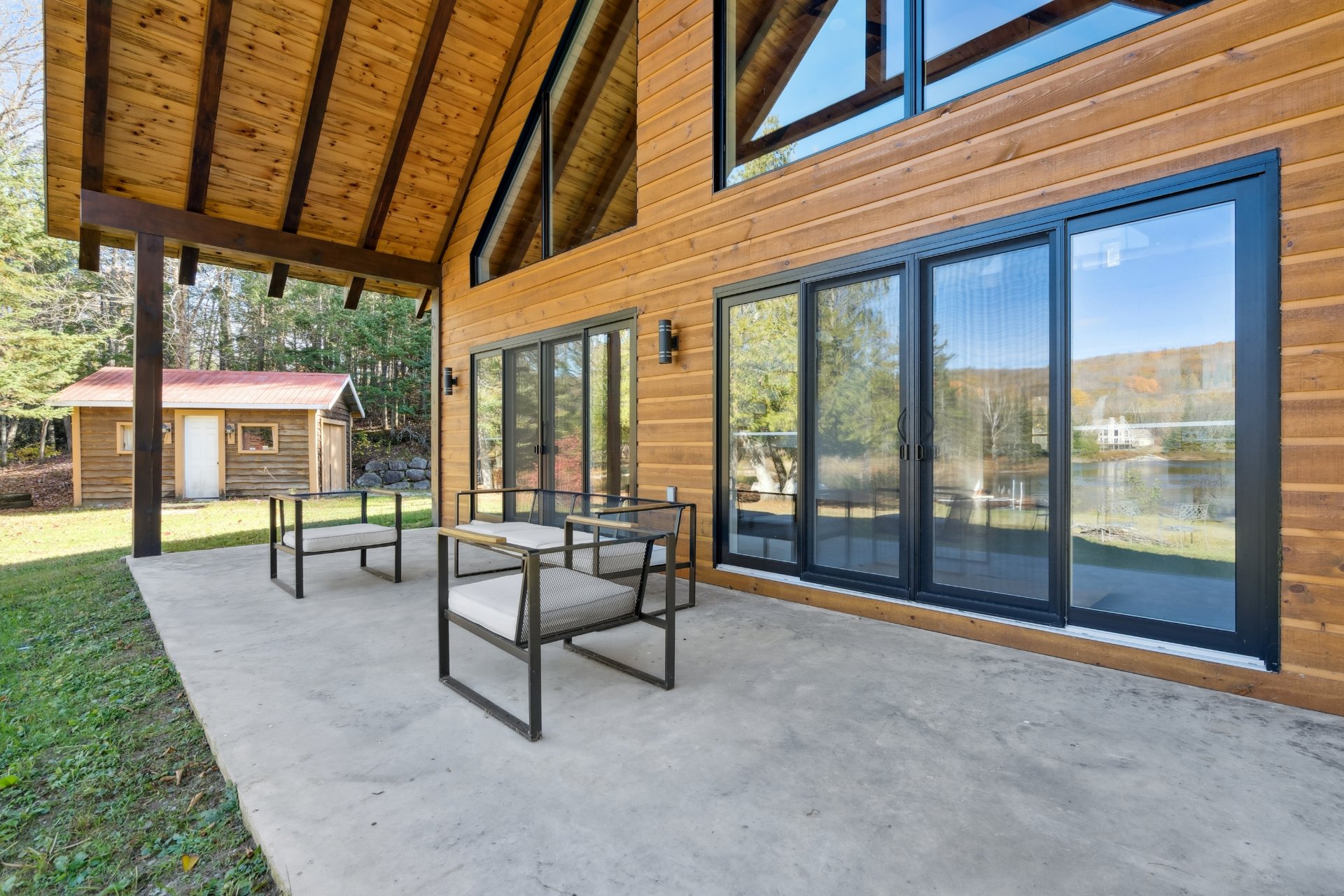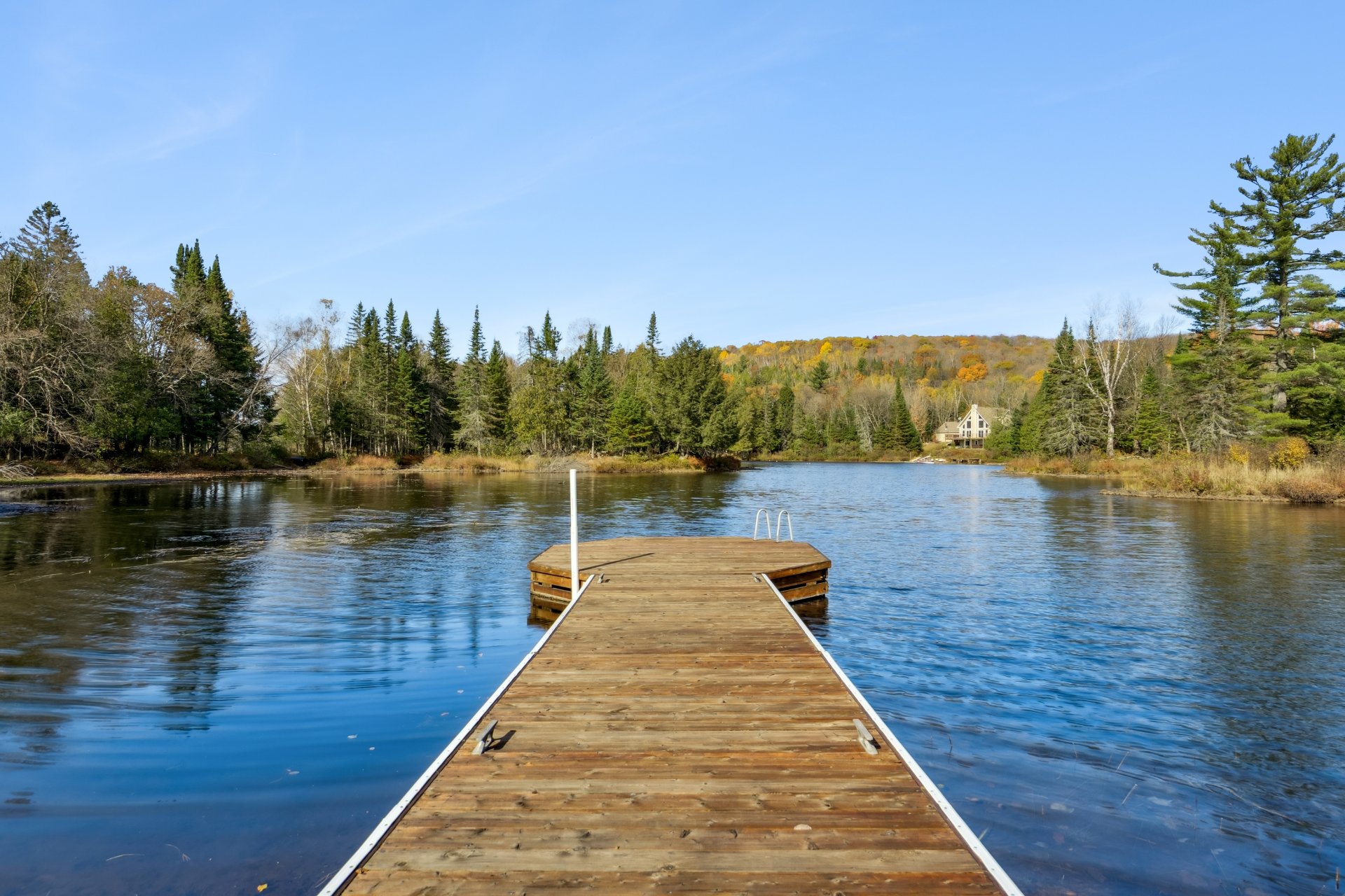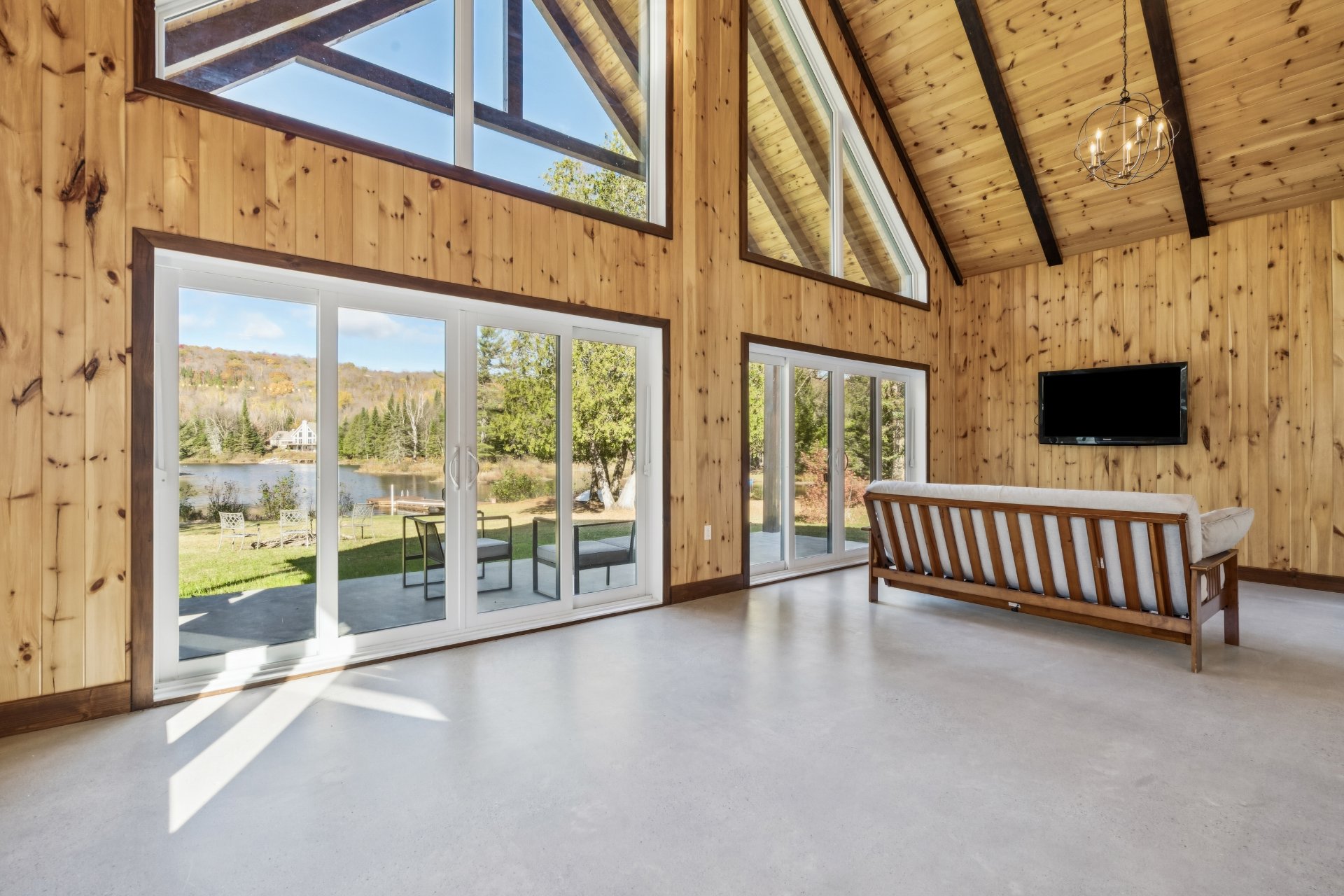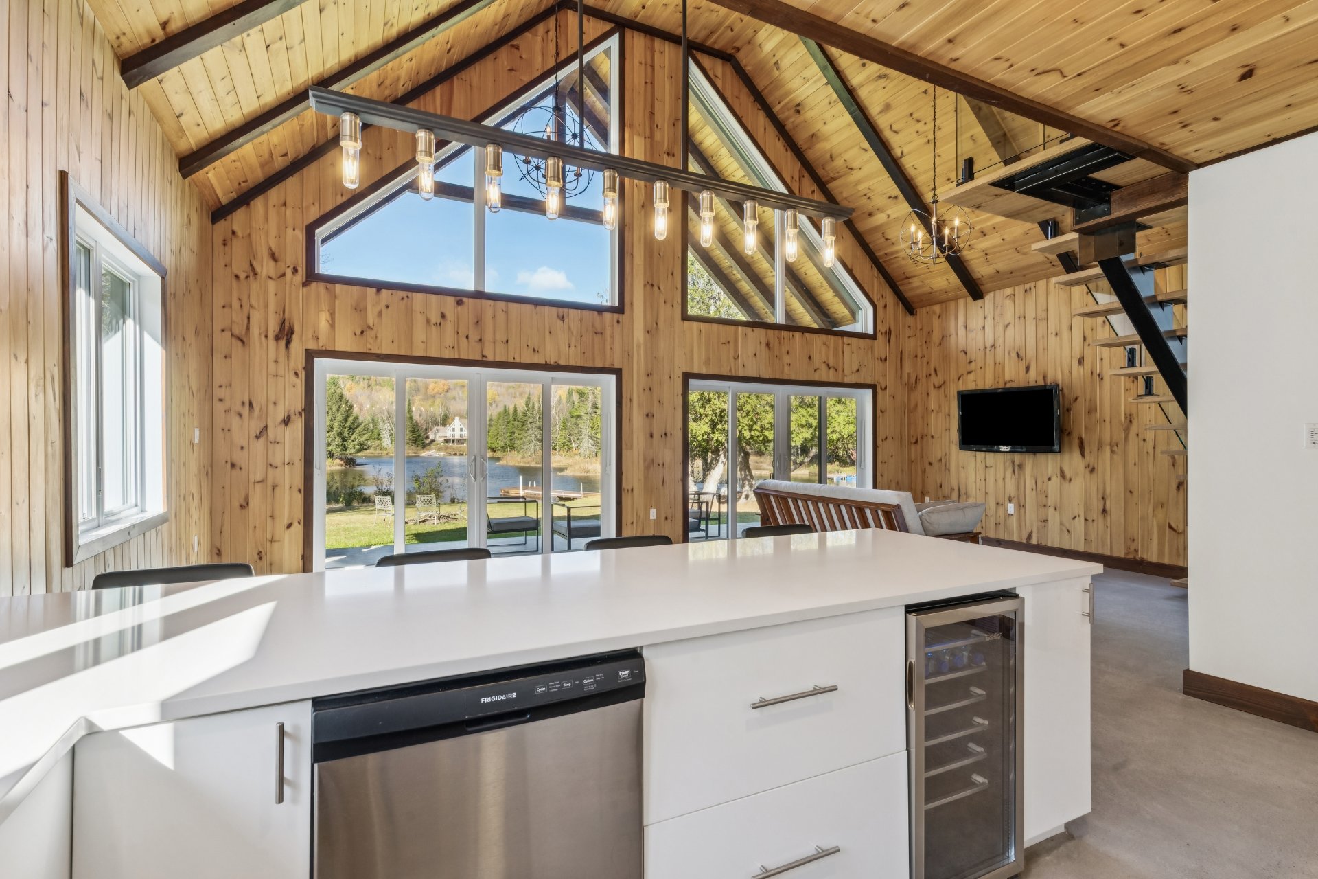 Waterfront -- turnkey! Stunning modern chalet located directly on the navigable Lac de la Sucrerie. Peaceful setting, panoramic bay view and flat lot with easy lake access. Bright open living area with cathedral ceiling, huge windows and heated concrete floors. Perfect place to unwind, fish or enjoy boating on a lake stocked yearly with walleye and bass. Just 40 minutes from Tremblant and 2h10 from Montreal. Immediate occupancy available -- move in and enjoy the calm of the Laurentians!