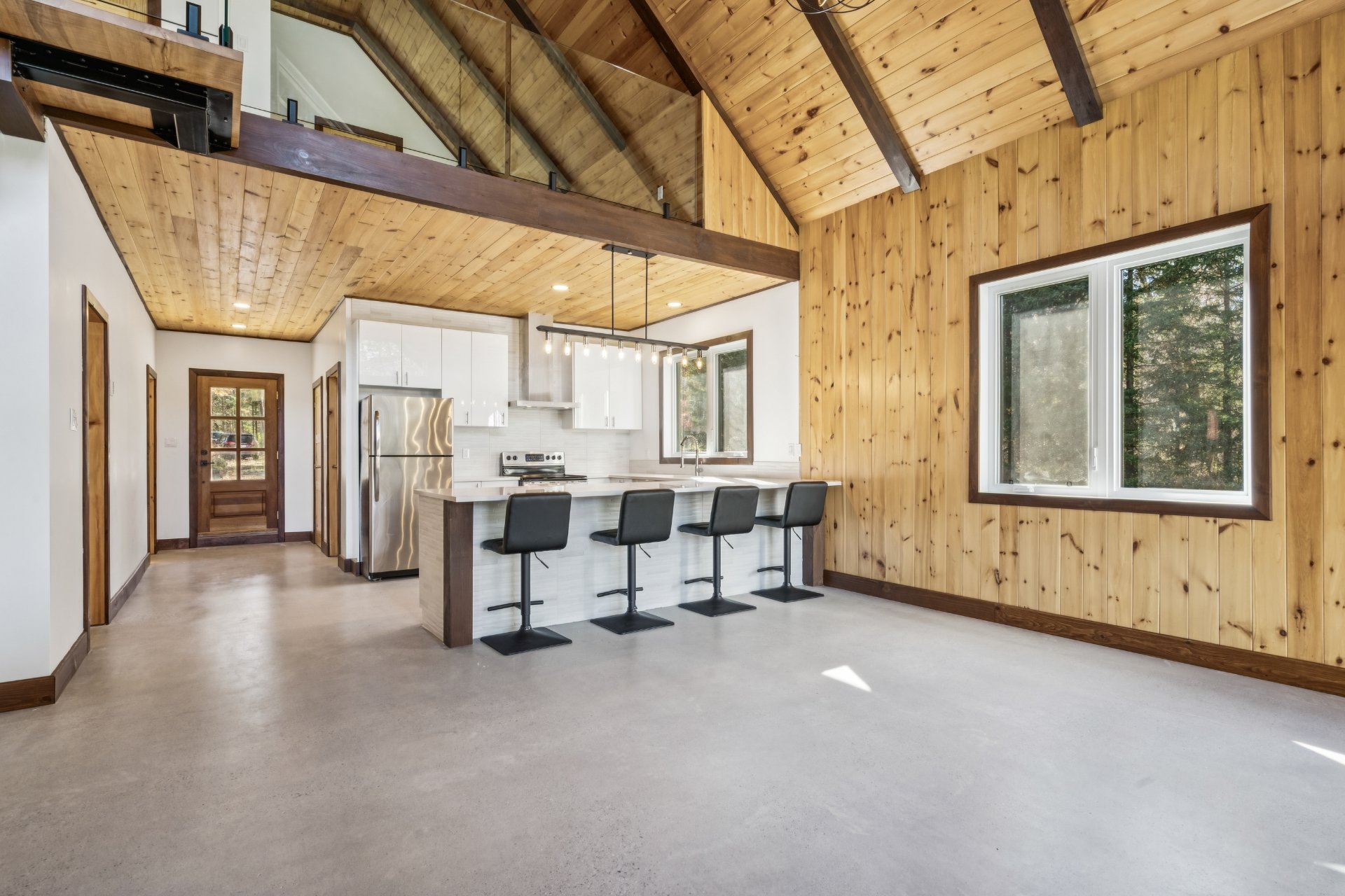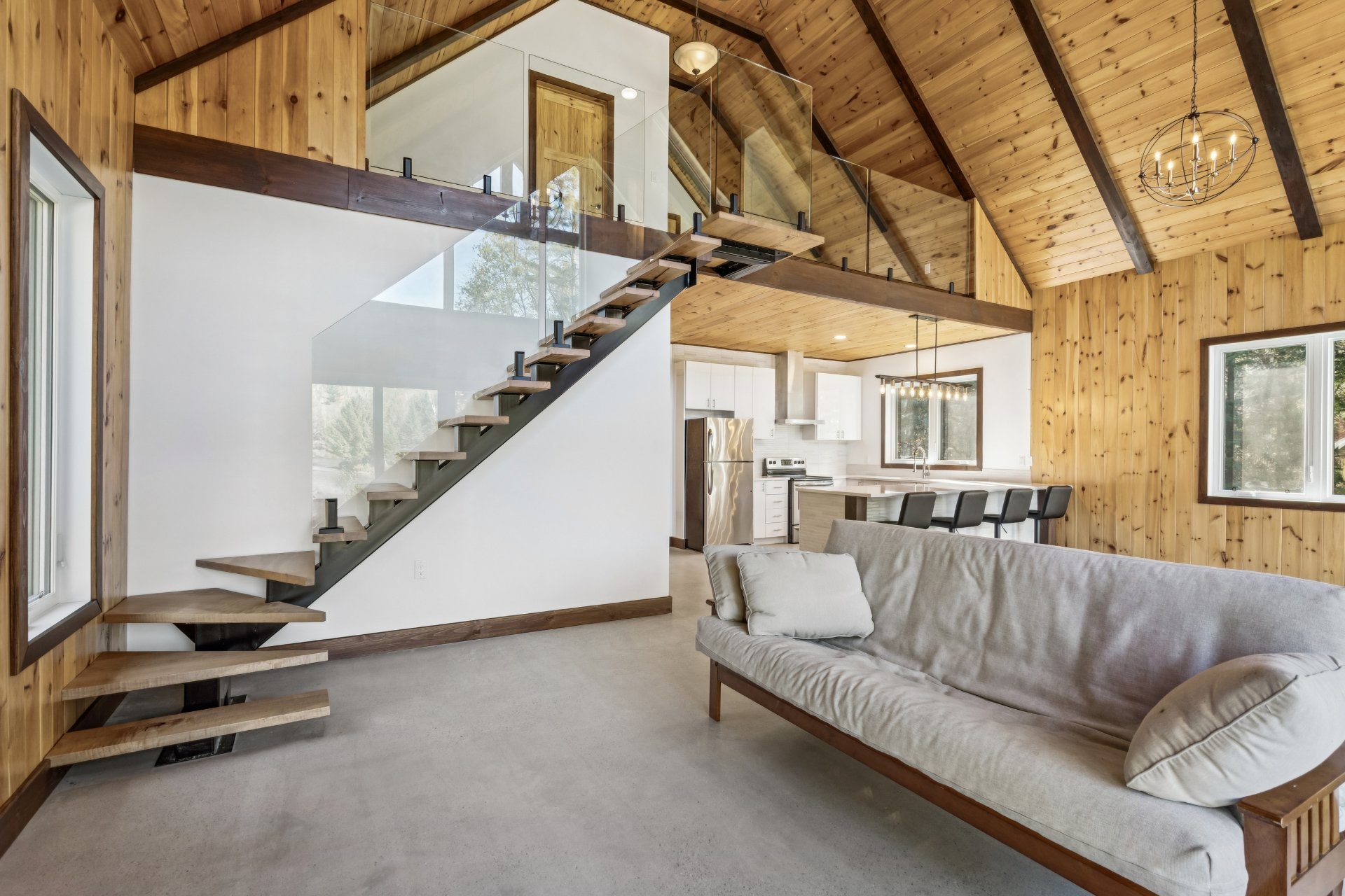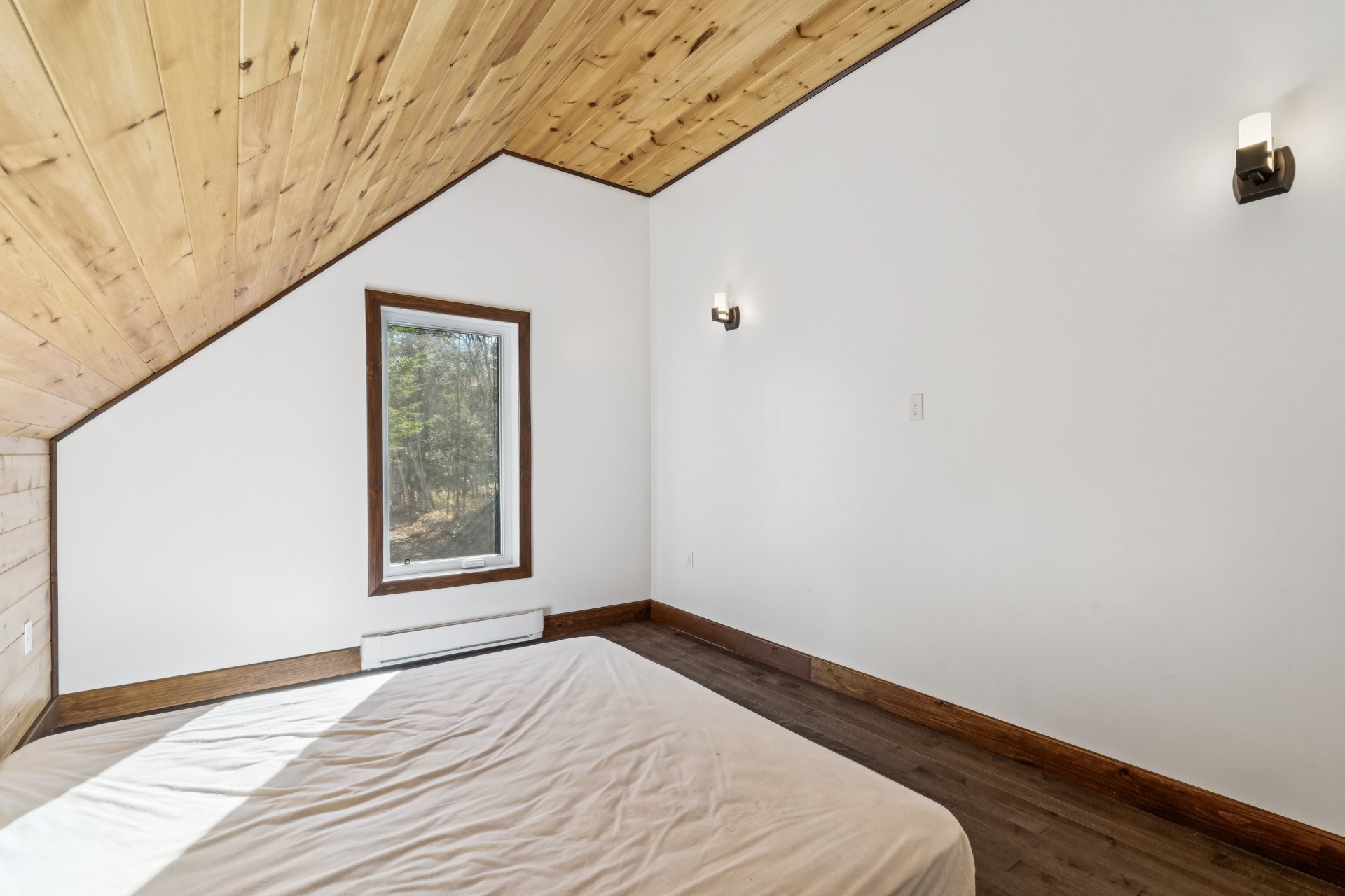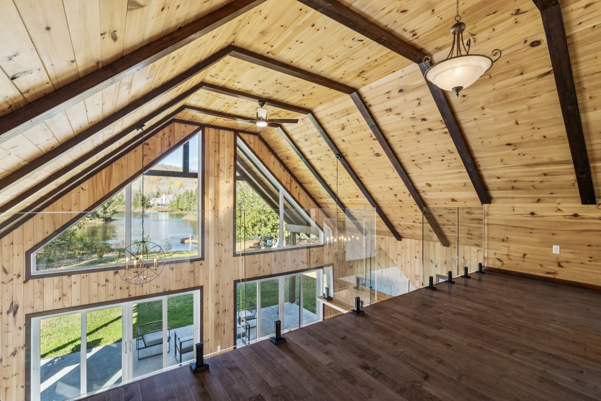 Waterfront -- turnkey! Stunning modern chalet located directly on the navigable Lac de la Sucrerie. Peaceful setting, panoramic bay view and flat lot with easy lake access. Bright open living area with cathedral ceiling, huge windows and heated concrete floors. Perfect place to unwind, fish or enjoy boating on a lake stocked yearly with walleye and bass. Just 40 minutes from Tremblant and 2h10 from Montreal. Immediate occupancy available -- move in and enjoy the calm of the Laurentians!
