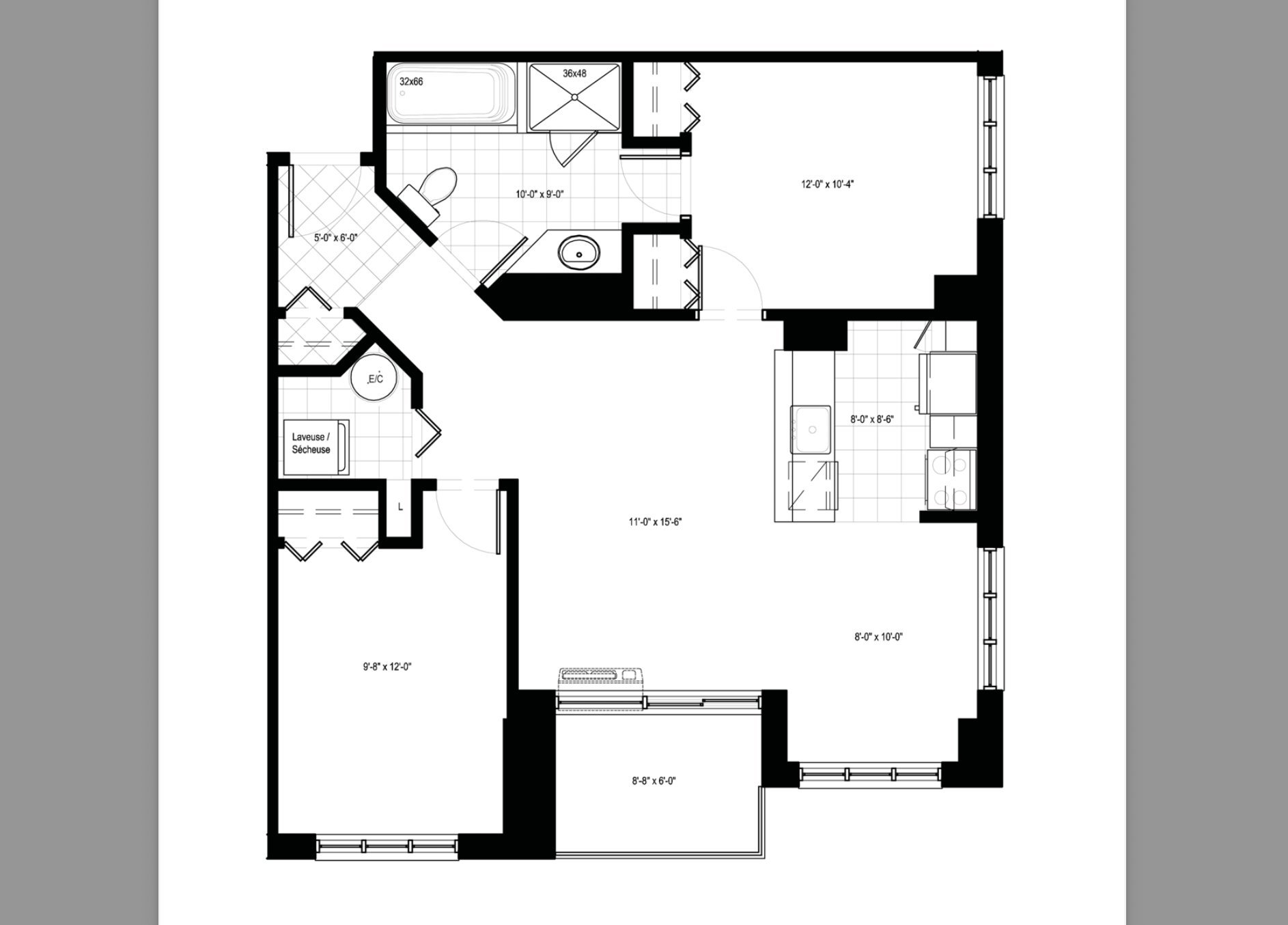 | Chambre à coucher principale | 3.66 x 3.15 M | 2ième étage | Bois |