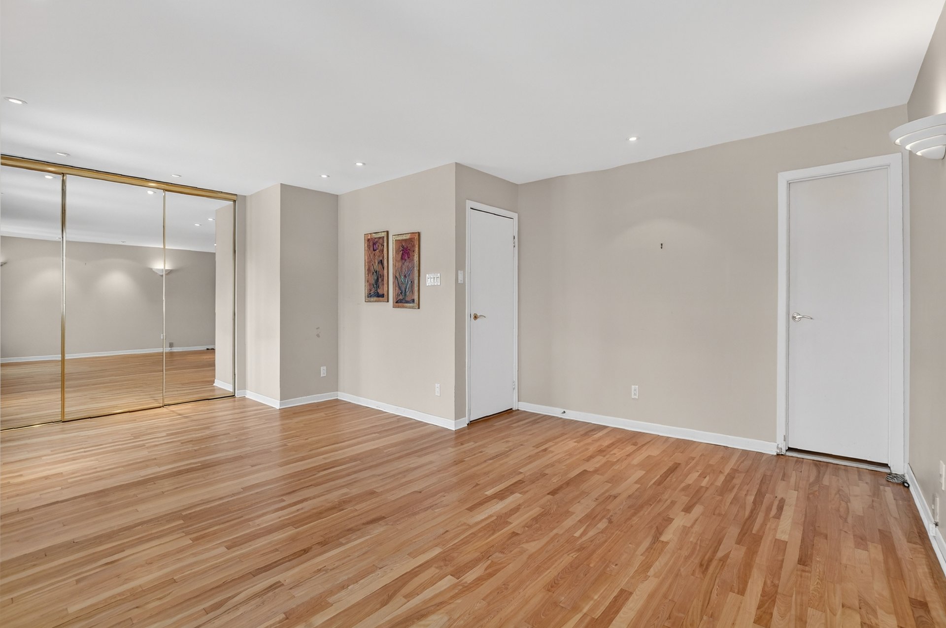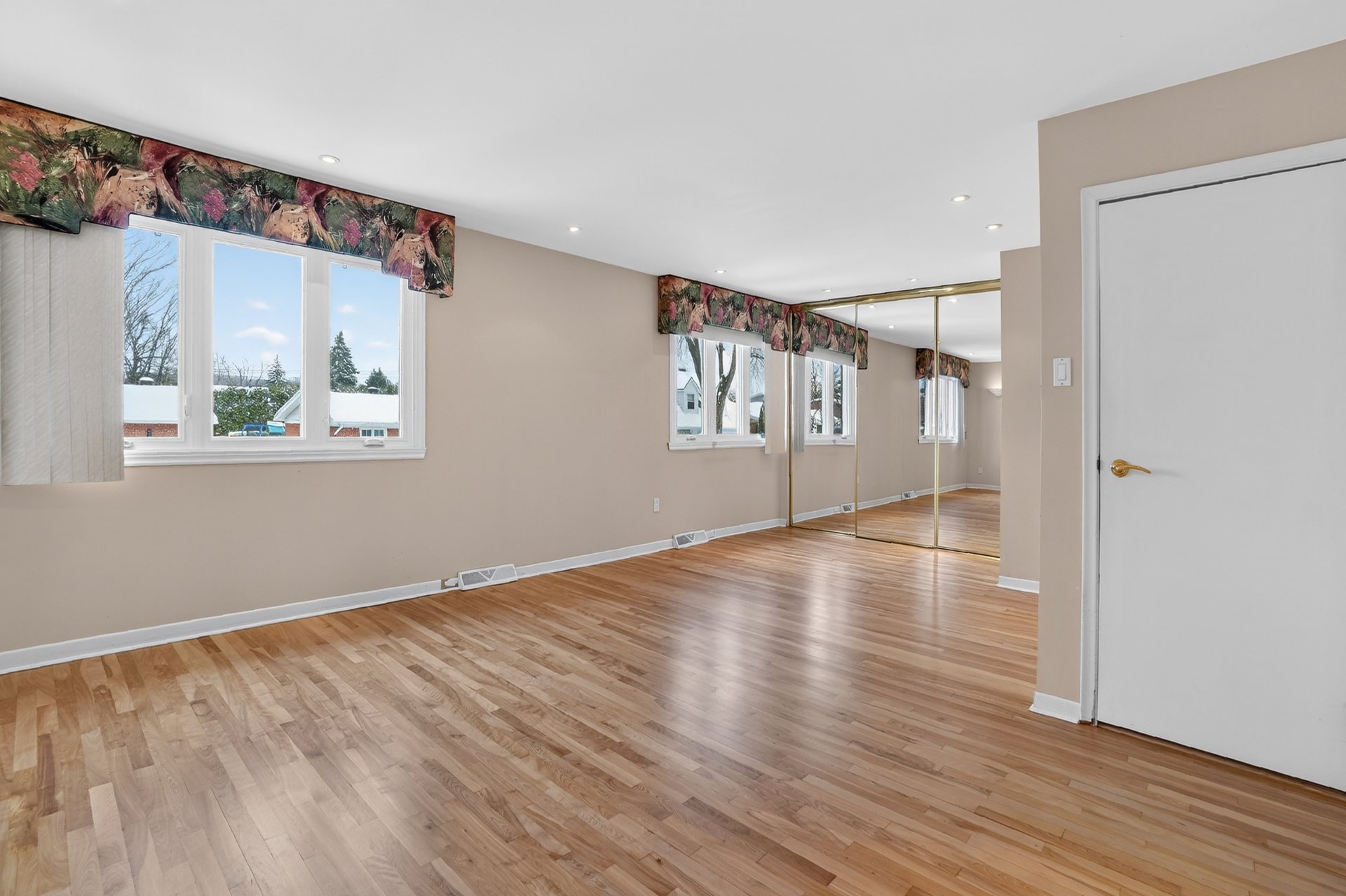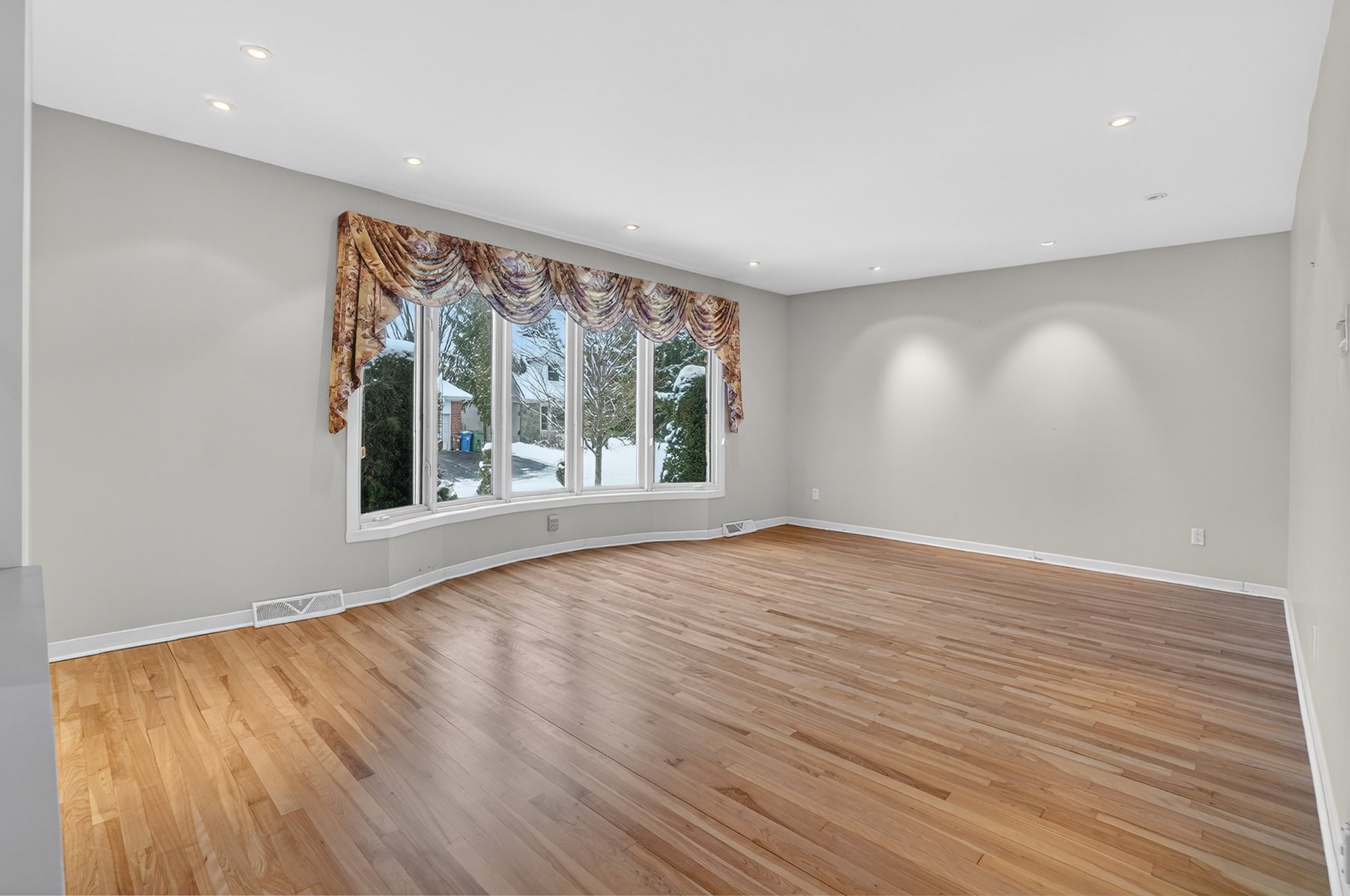 Planchers en bois franc récemment sablés et vernis dans la