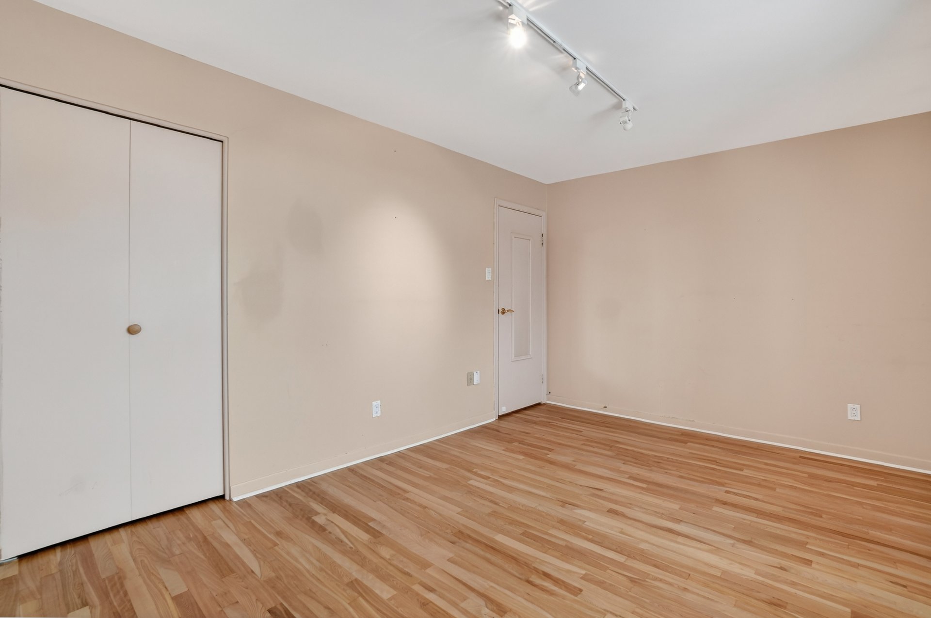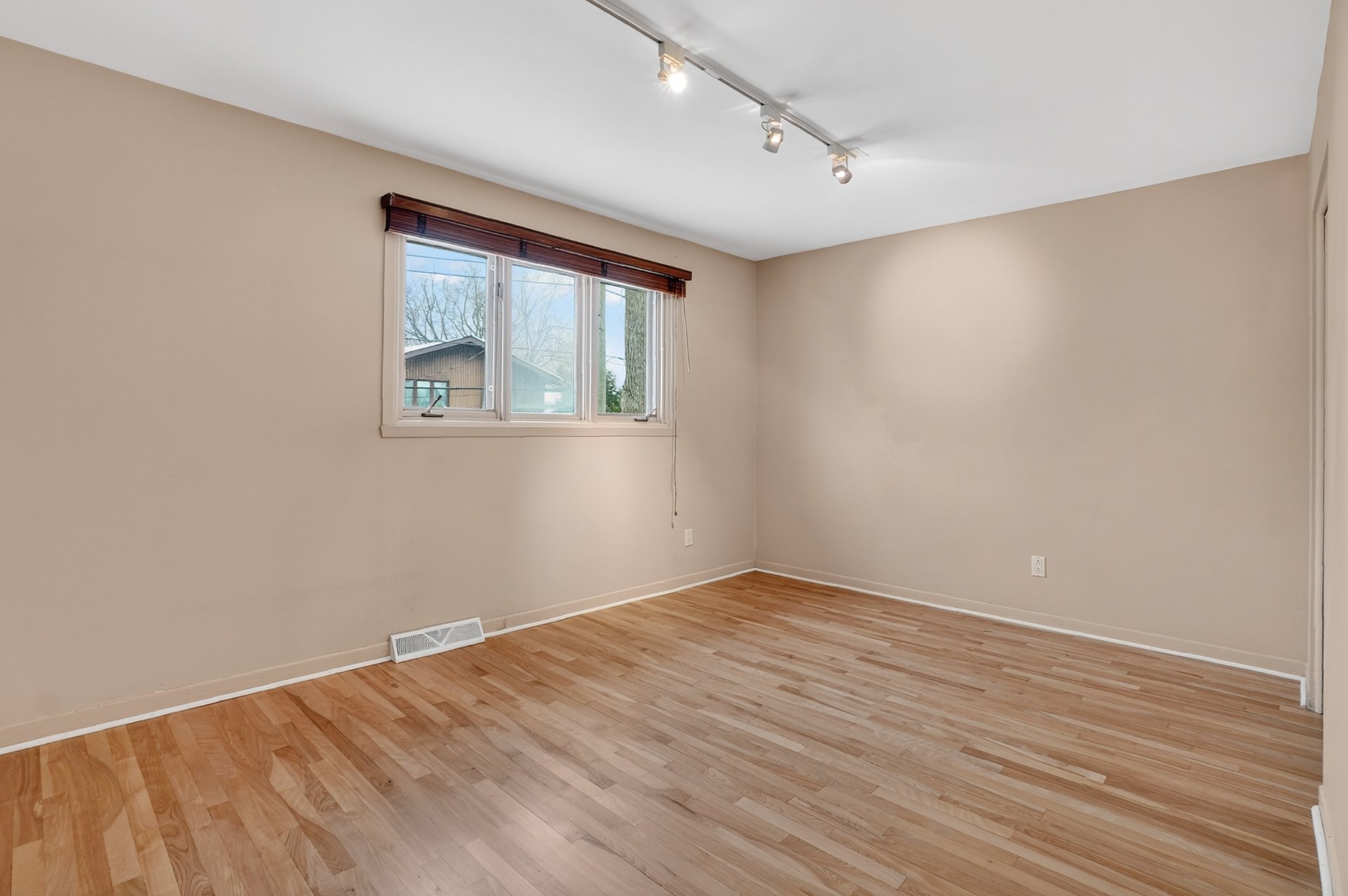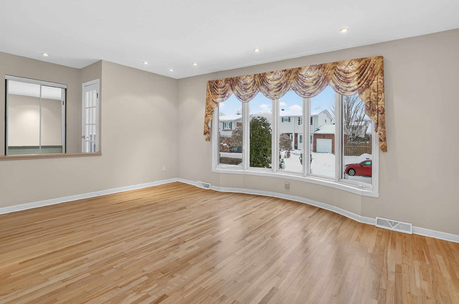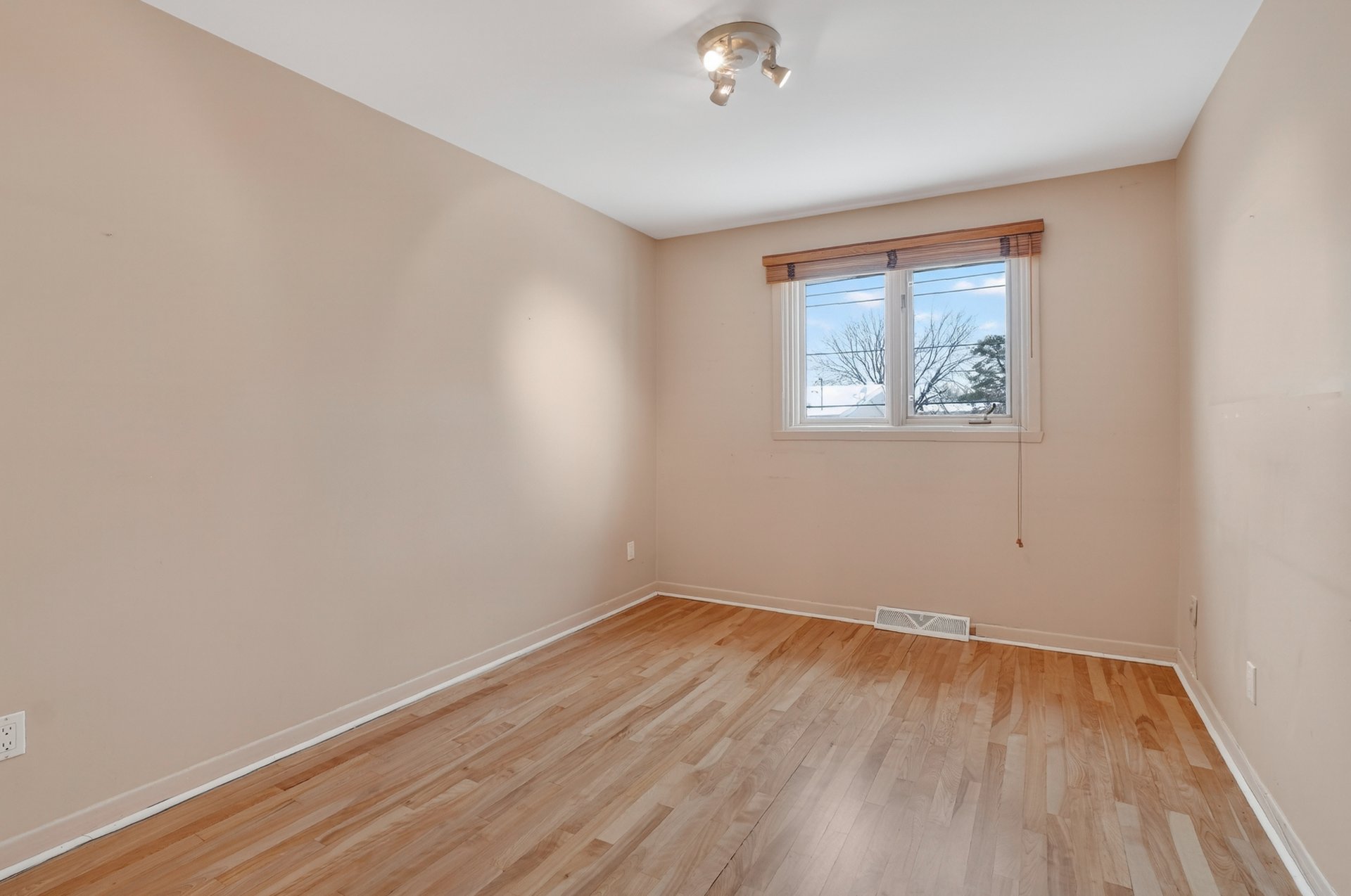 Planchers en bois franc récemment sablés et vernis dans la