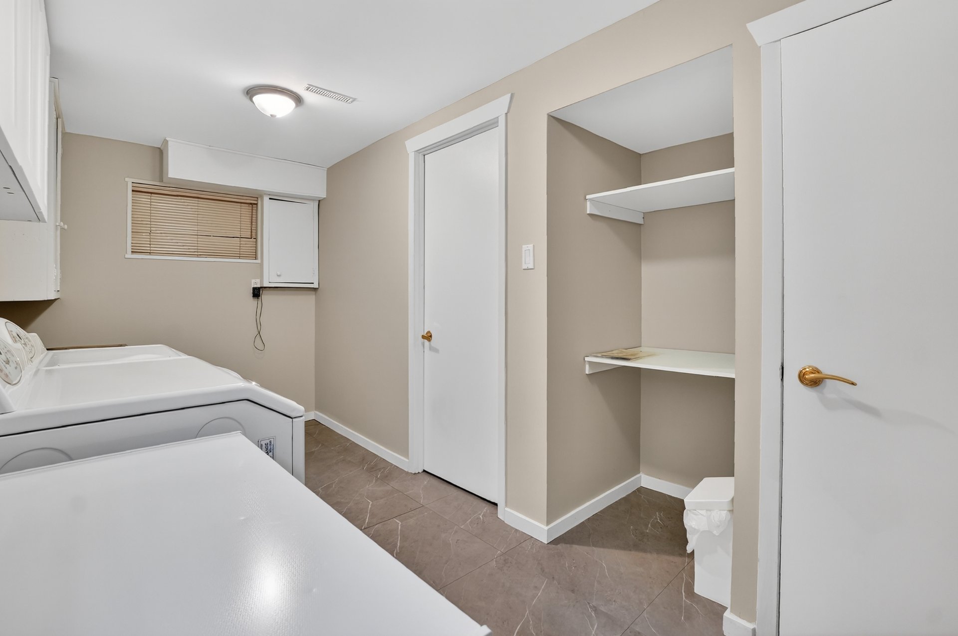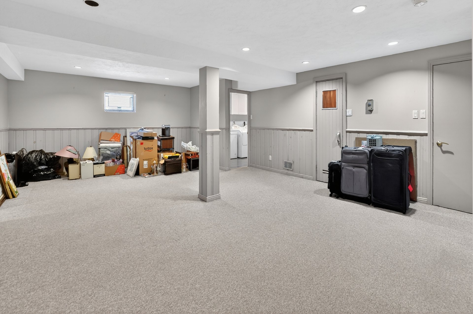 Sous-sol aménagé avec salle de jeux, nombreux rangements,