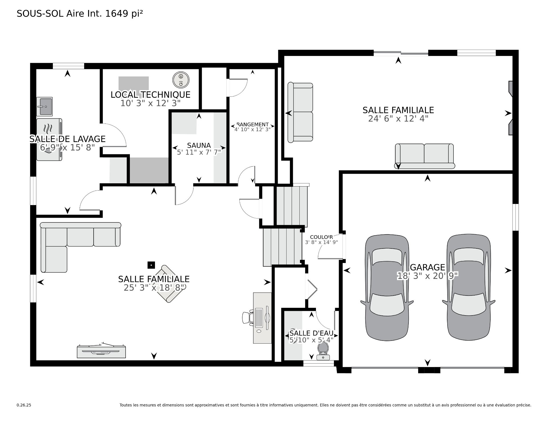 | Salle de jeux | 26.11 x 19.1 P | Sous-sol | Tapis |
