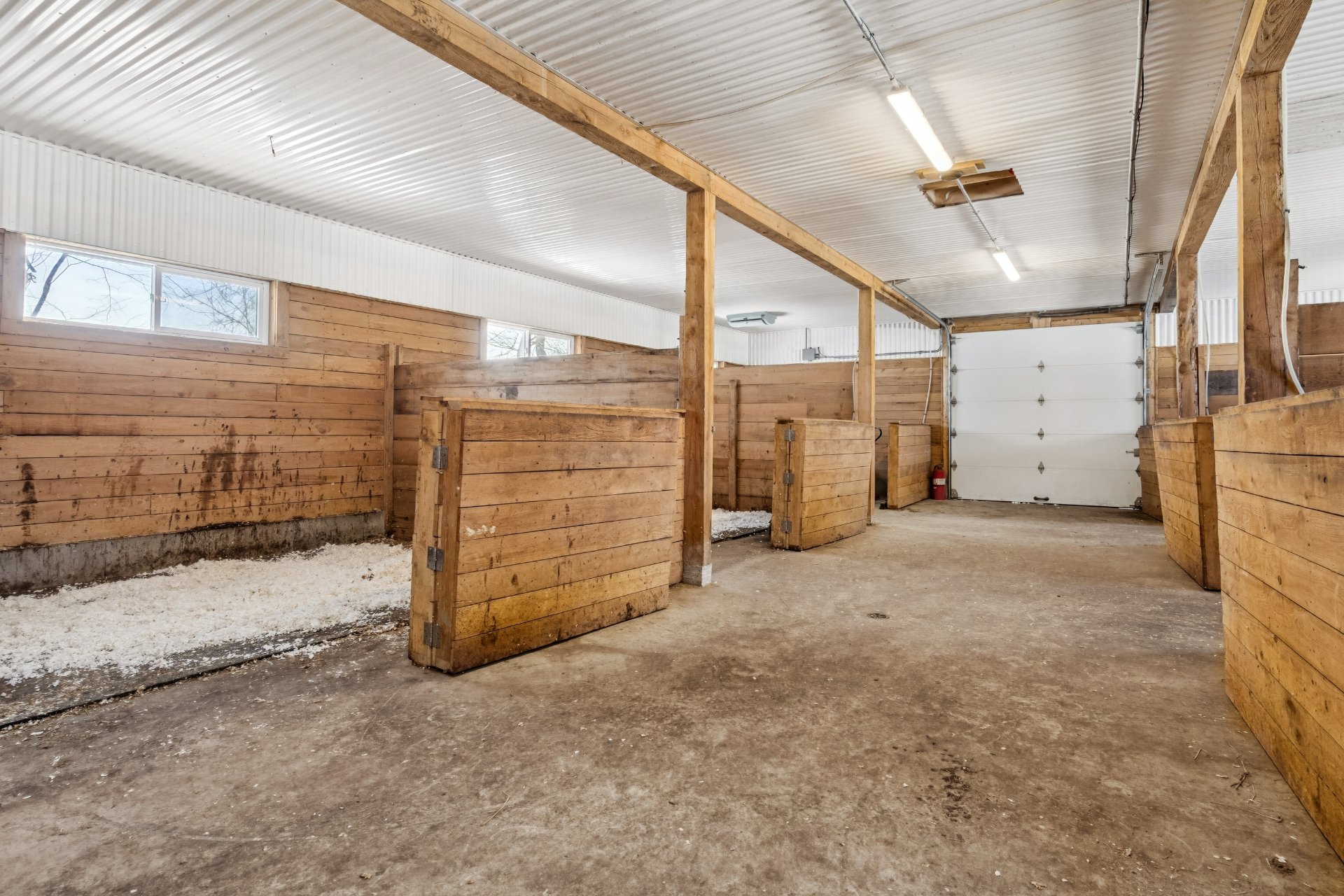 Superbe fermette clé en main avec installations équestres exceptionnelles! Écurie récente 32x48 (2024) offrant 6 box 12x12 amovibles, espace douche, sellerie, caméras 360°, ventilation et chauffage à contrôle électronique. Grand prés d'environ 20 000 pi², paddock de 25 000 pi², clôture en bois et verger (pommiers, poiriers, pruniers). Maison rénovée, confortable et fonctionnelle. Poulailler isolé avec électricité, terrasse en pavé, abris pour foin et spa, accès aménagé jusqu'aux installations. Un site rêvé pour les amoureux de chevaux et de vie rurale!
