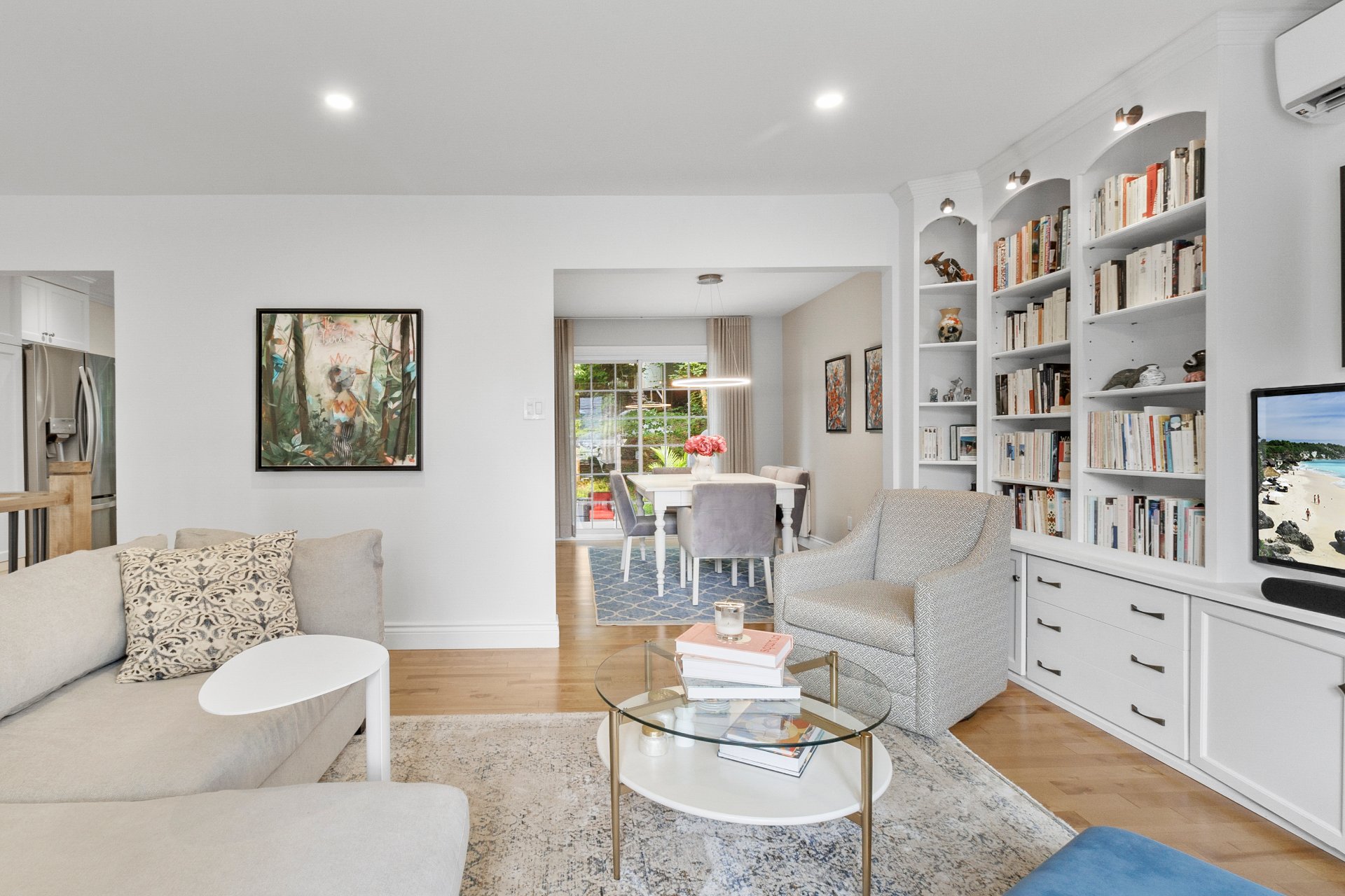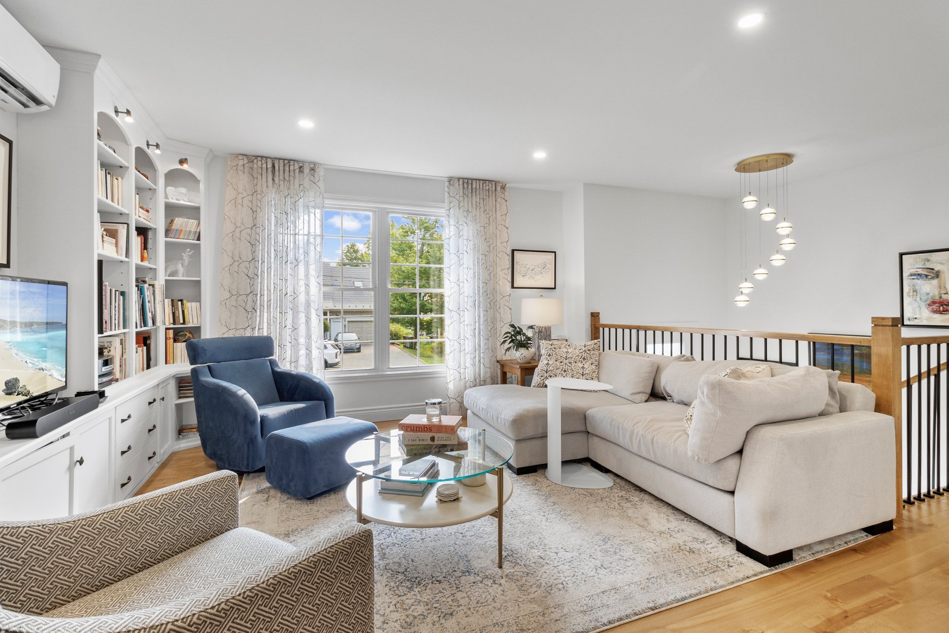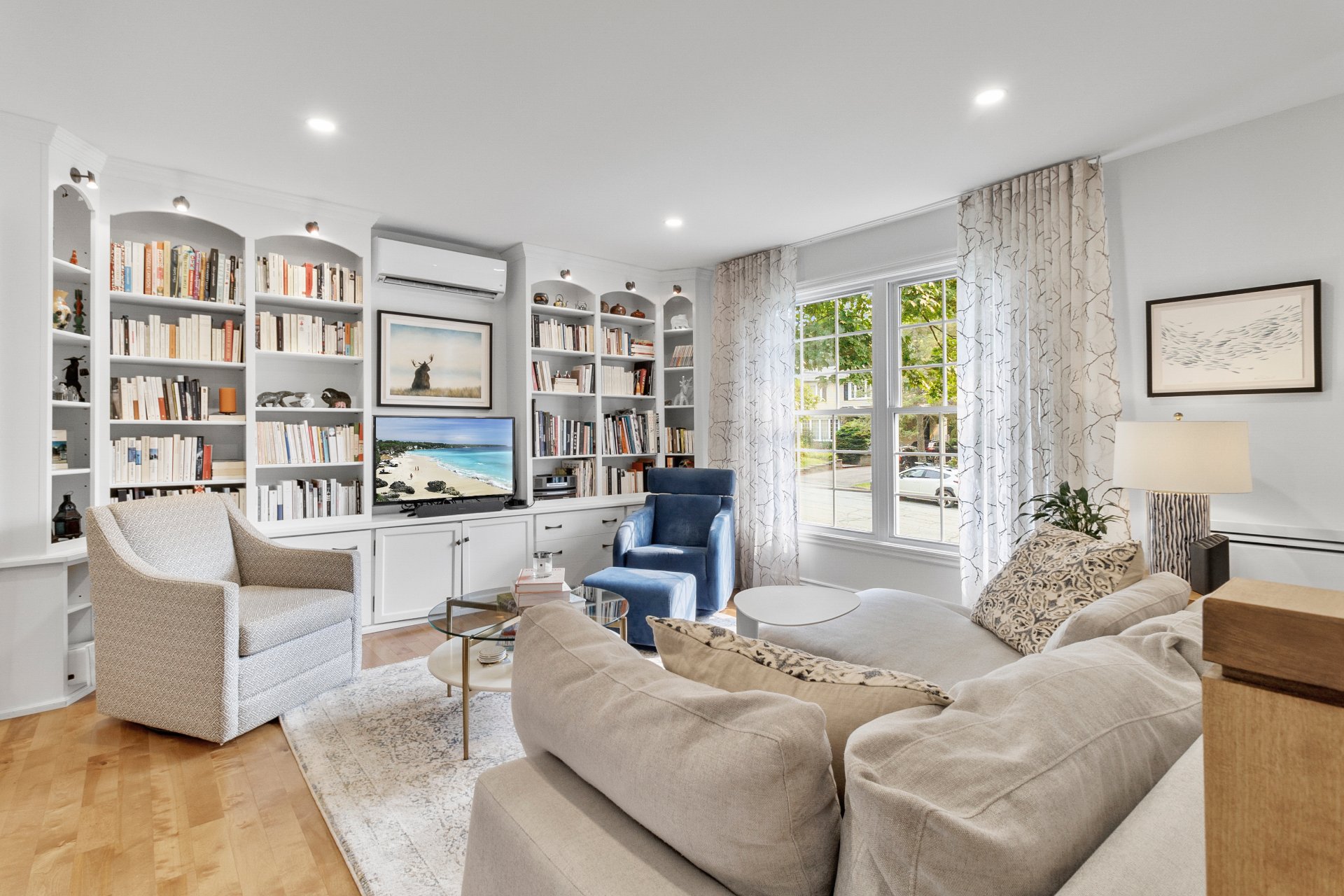 bibliothèque sur mesure et sa grande fenêtre orientée à