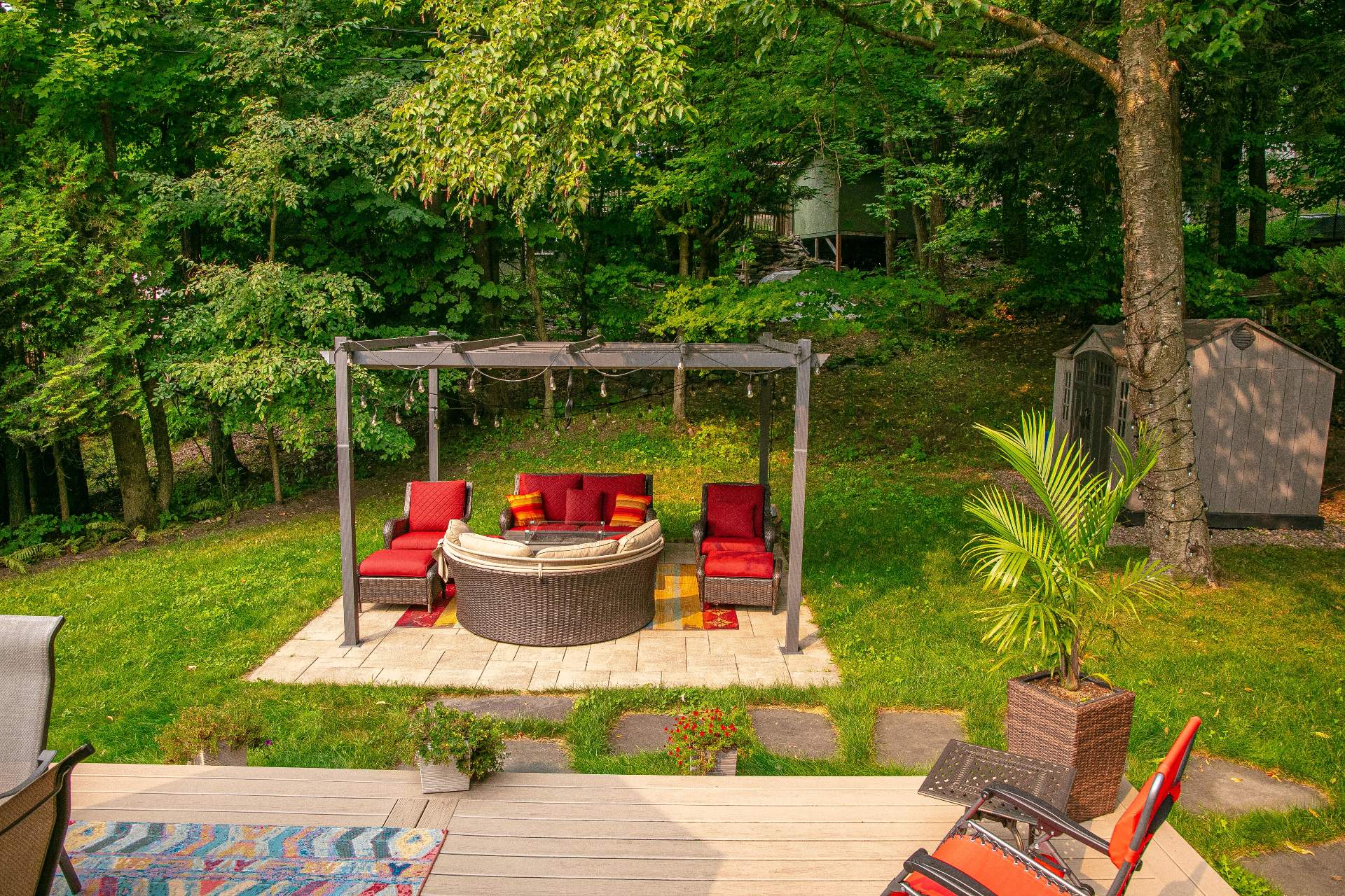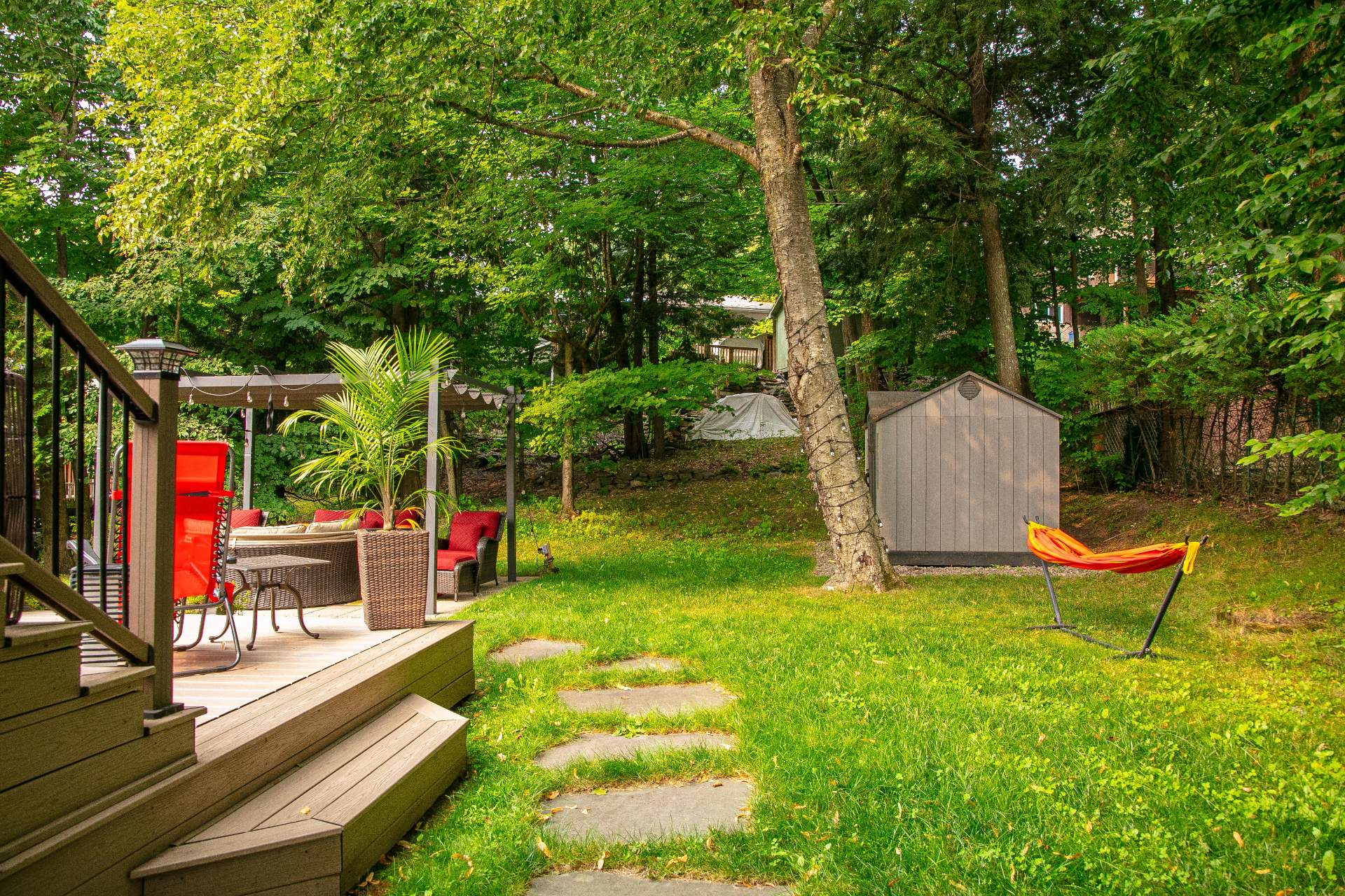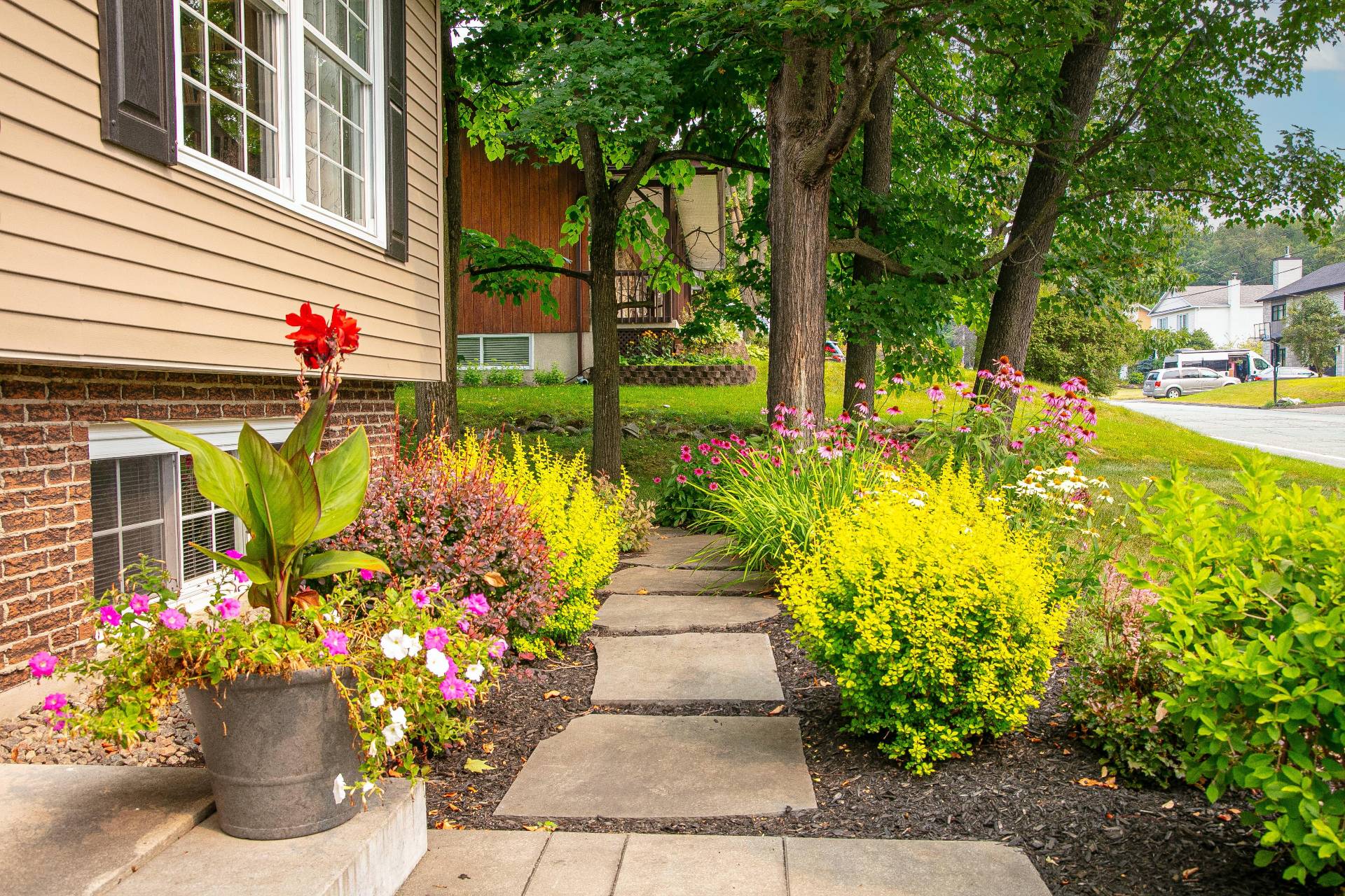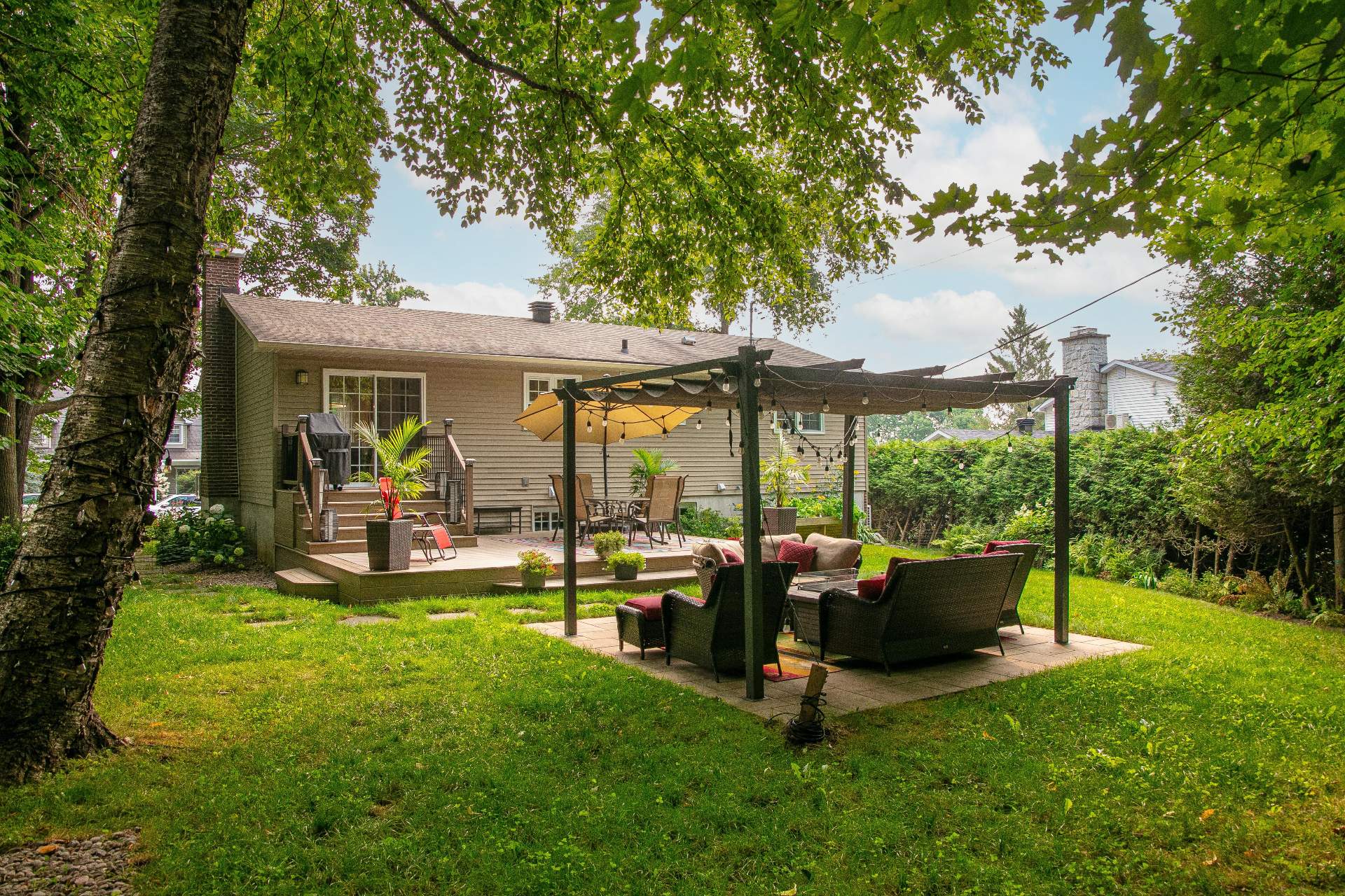 aménagement paysager soigné, ses arbres matures et son