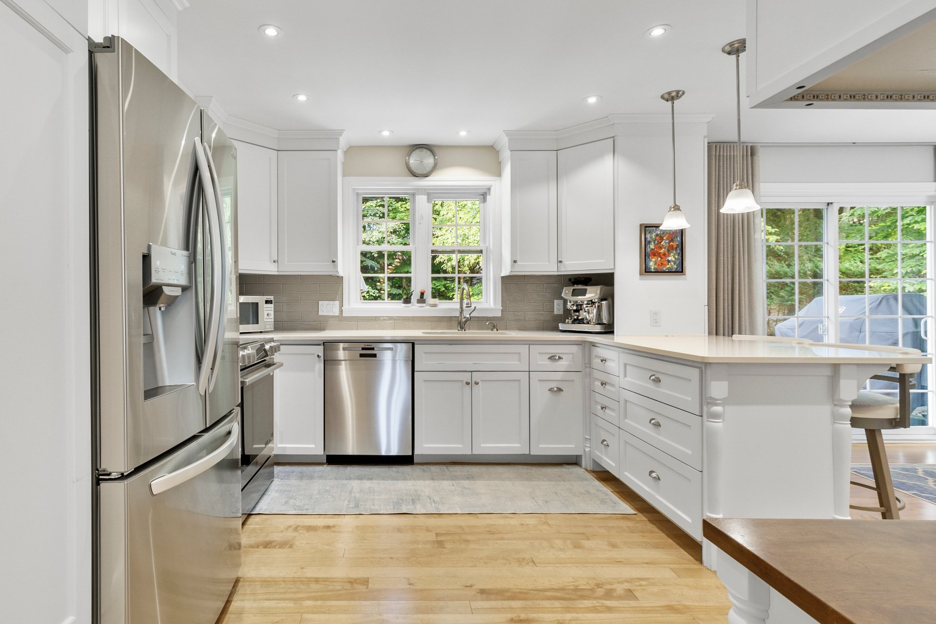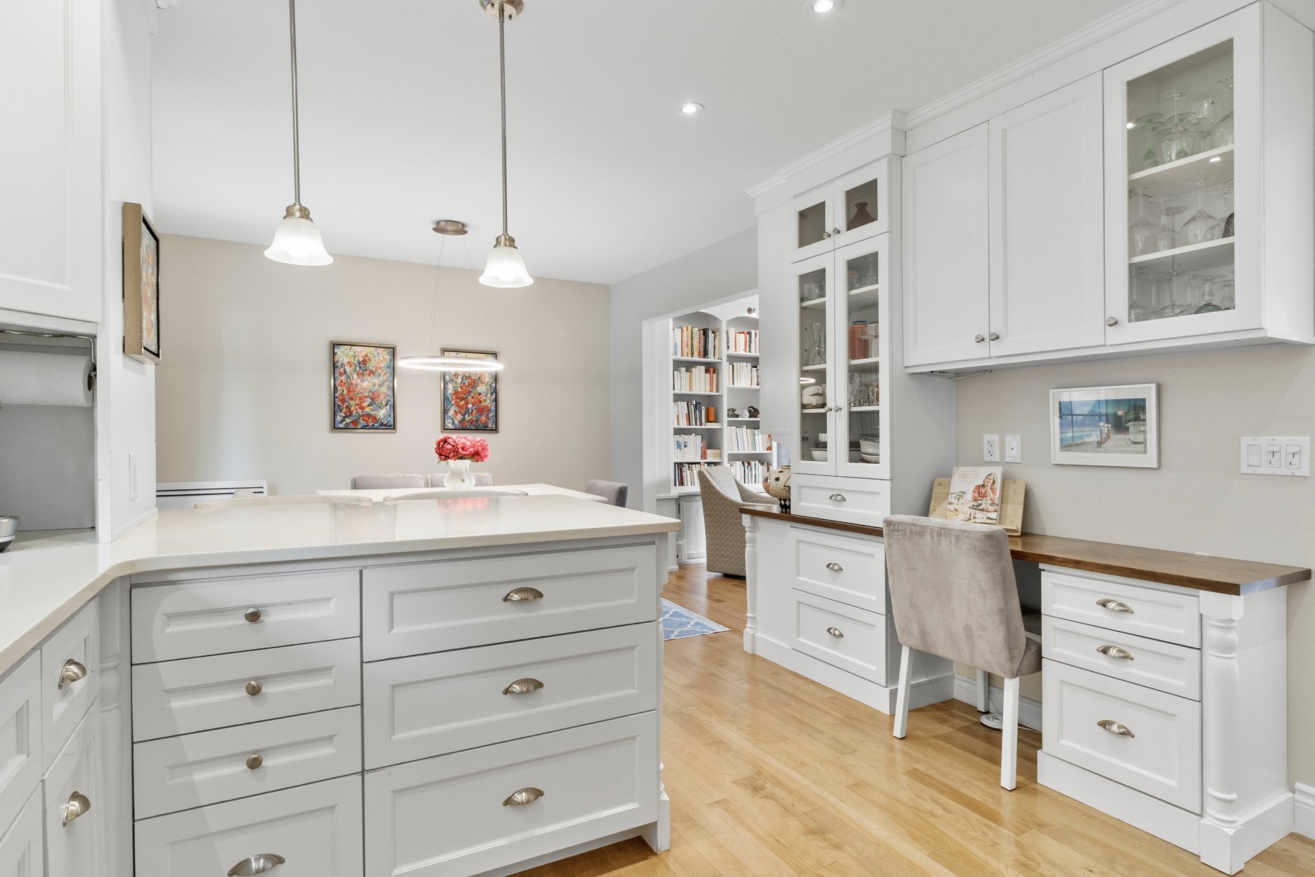 ses armoires en bois massif, ses comptoirs de quartz et son
