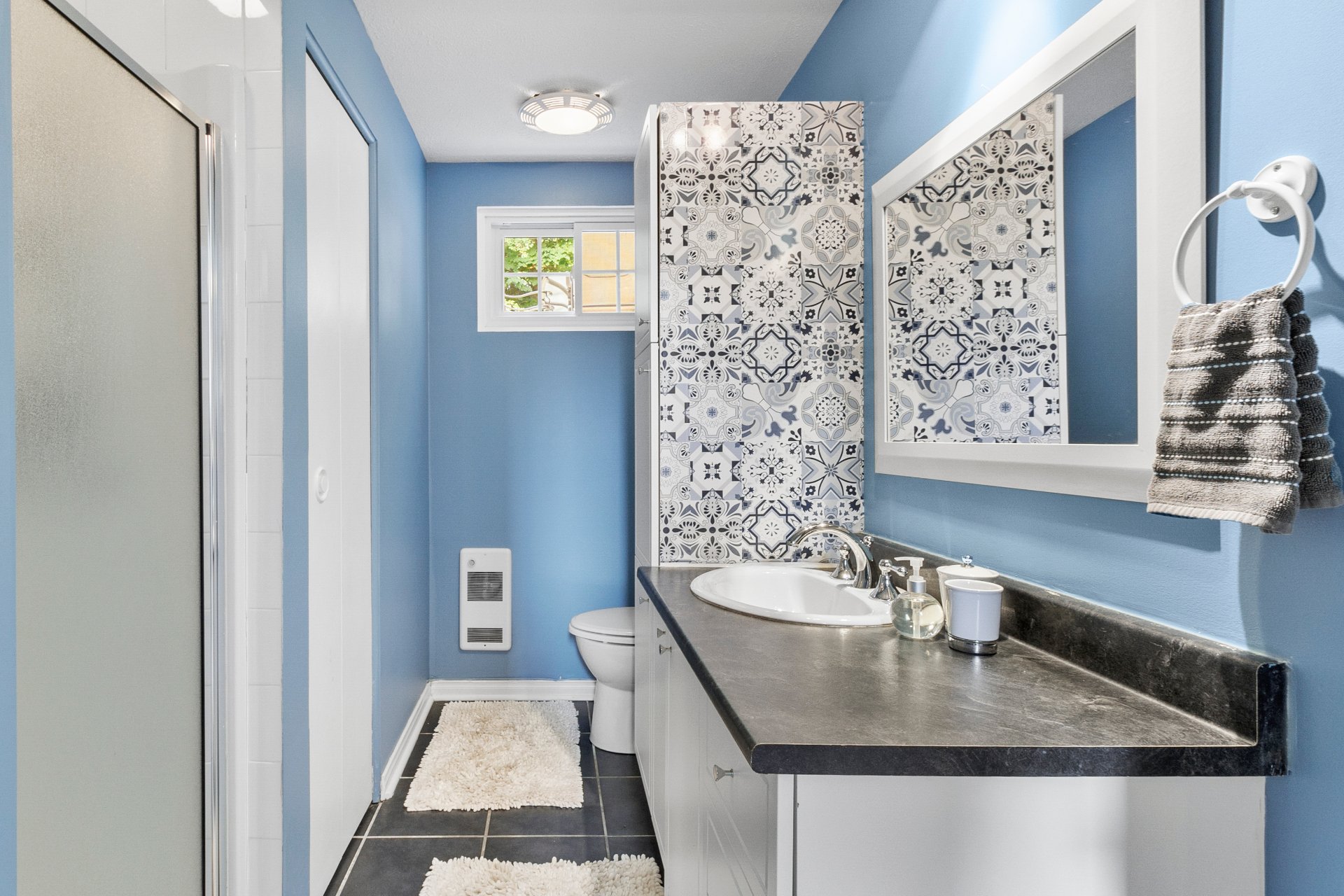 Le sous-sol entièrement aménagé comprend une chambre, une