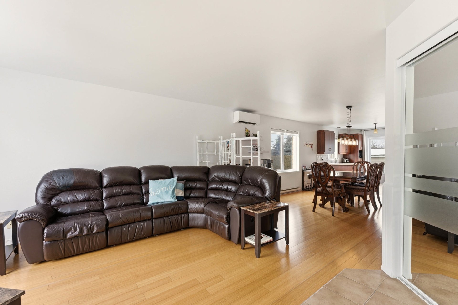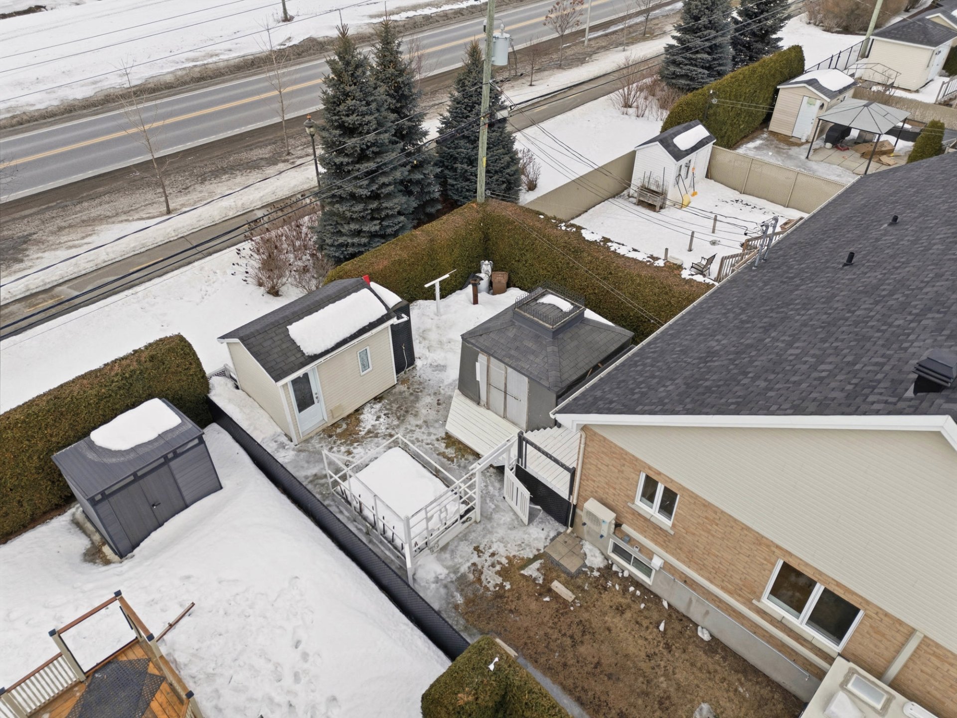 Propriété construite en 2008 et soigneusement entretenue par son unique propriétaire. Offrant un concept moderne à aire ouverte, elle propose un salon lumineux ouvert sur la salle à manger et une cuisine fonctionnelle idéale pour recevoir. Le rez-de-chaussée comprend une chambre principale ainsi qu'une seconde pièce actuellement aménagée en walk-in, pouvant servir de chambre ou bureau. Le sous-sol entièrement aménagé offre une salle familiale, une chambre, un bureau et une salle de bain avec installation laveuse-sécheuse. Terrasse arrière, cour bordée de haies de cèdre et stationnement pour trois véhicules. Emplacement idéal