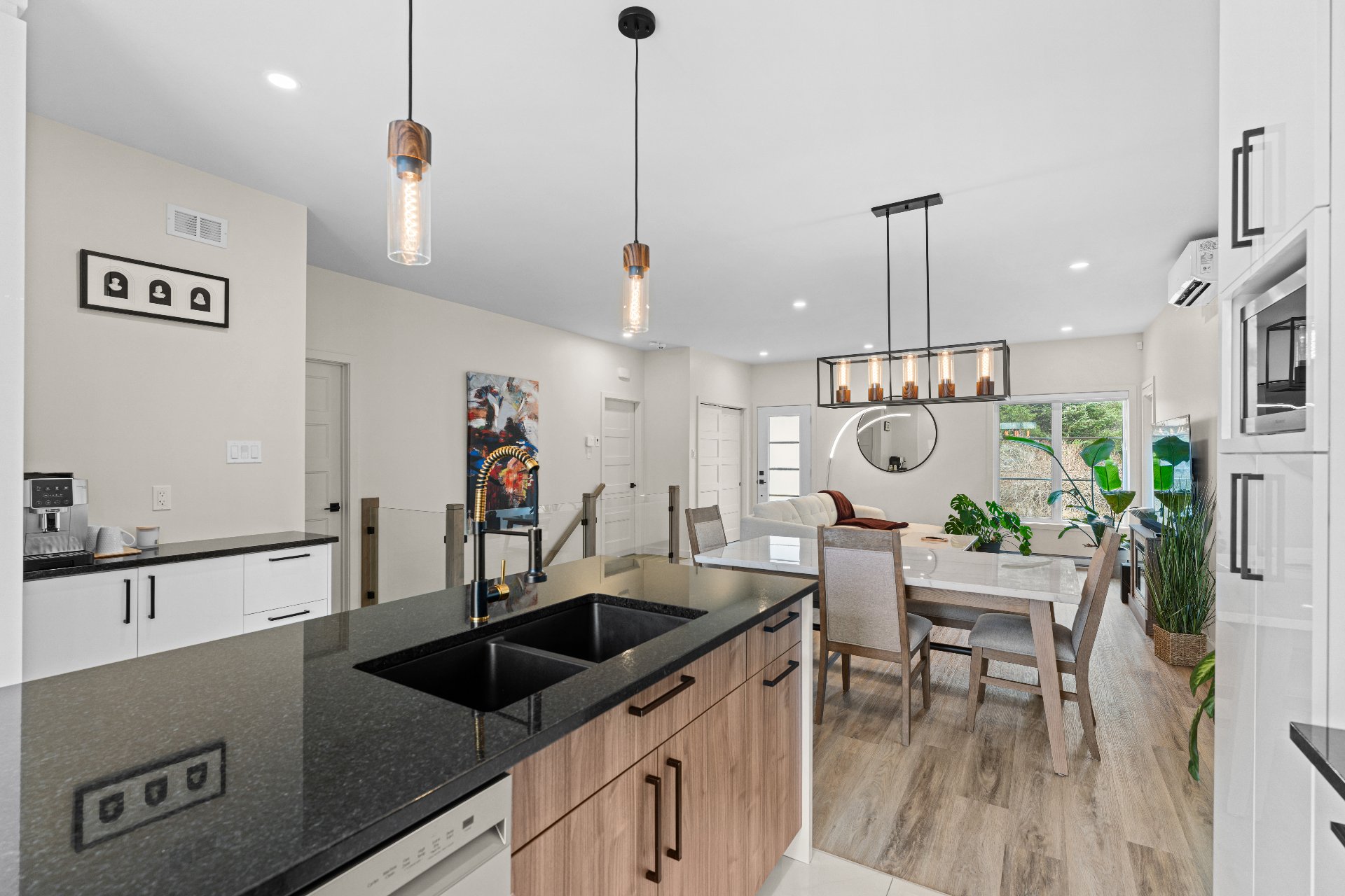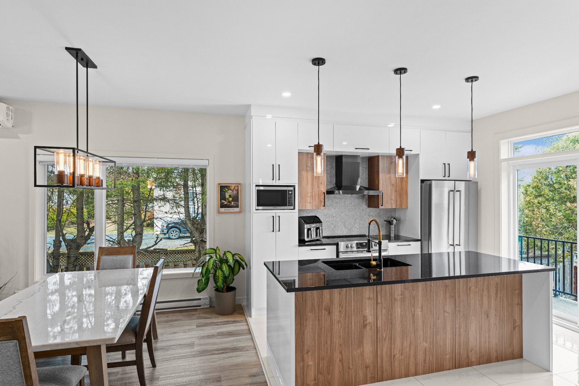 À Deauville, superbe jumelé 2021 encore sous garantie, offrant un vrai mode de vie de villégiature à l'année! Rue sans issue, aucun voisin arrière et accès direct à l'eau : ponton-quai avec moteur dans la cour pour naviguer jusqu'au lac Magog lors des belles journées d'été. Intérieur lumineux avec plafonds de 9 pi, aire ouverte conviviale et cuisine coup de coeur avec îlot en granit. Quatre chambres, deux salles de bain complètes et sous-sol entièrement aménagé. L'équilibre parfait entre nature, eau et commodités urbaines.