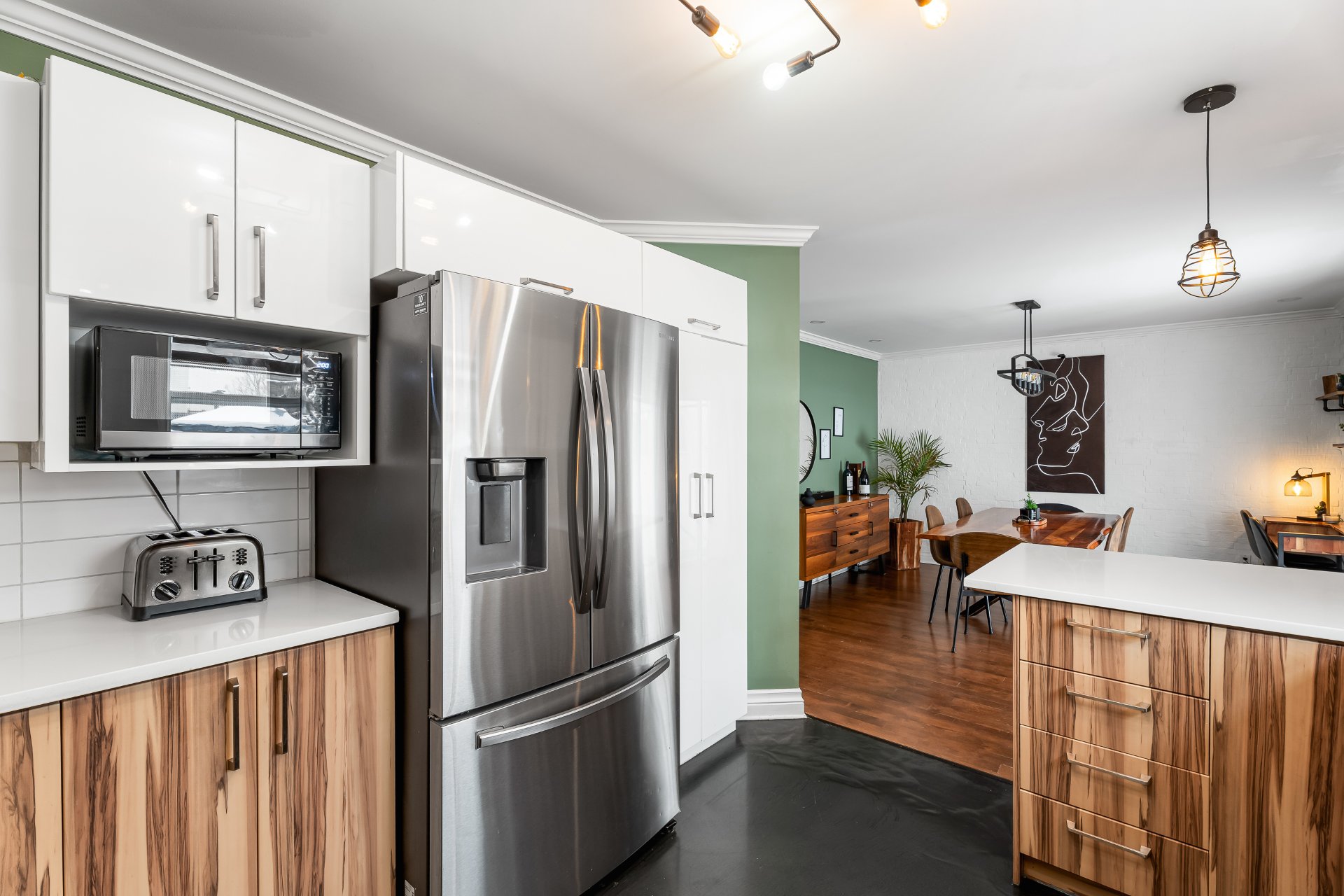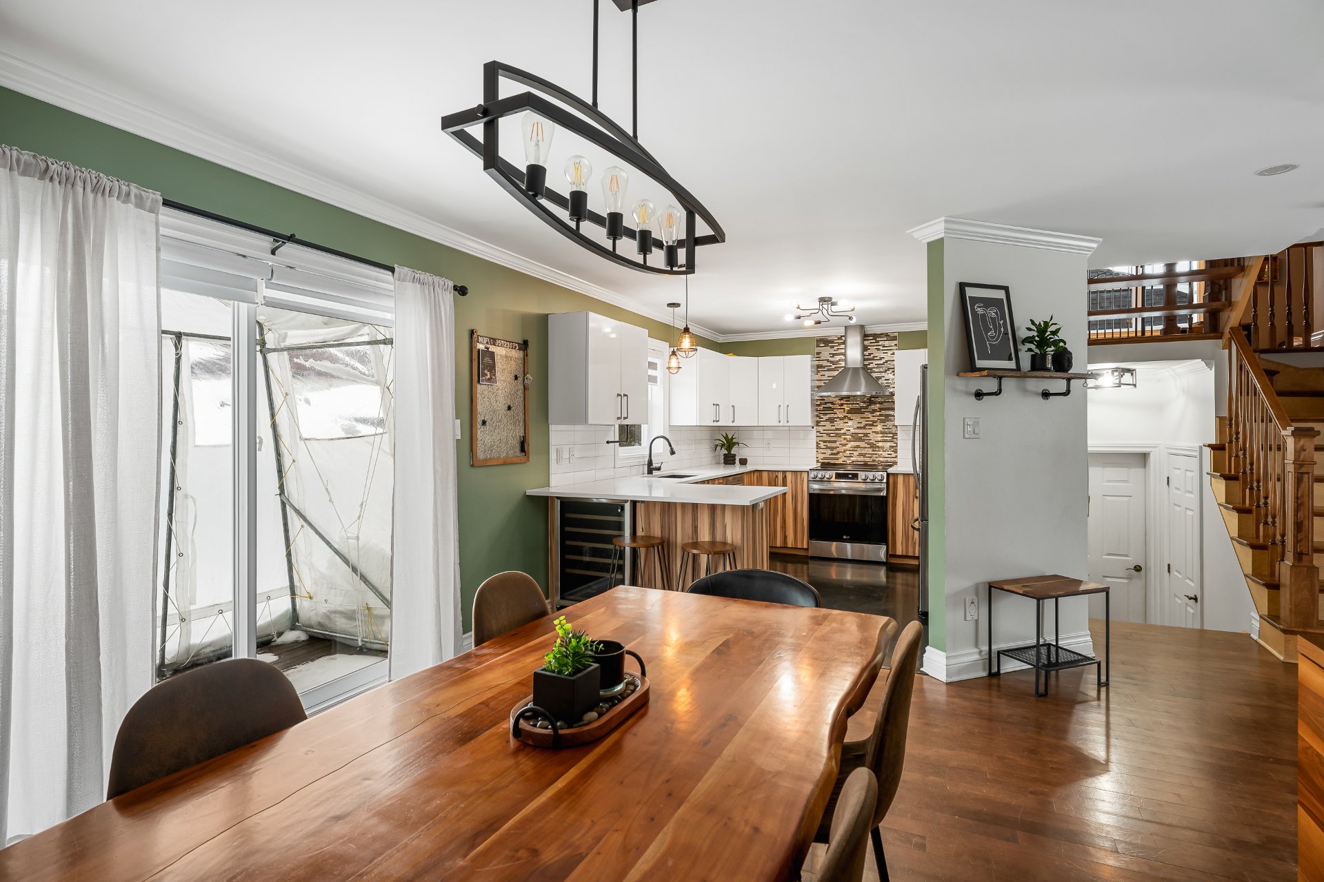 ouverte réunissant salle à manger spacieuse et cuisine