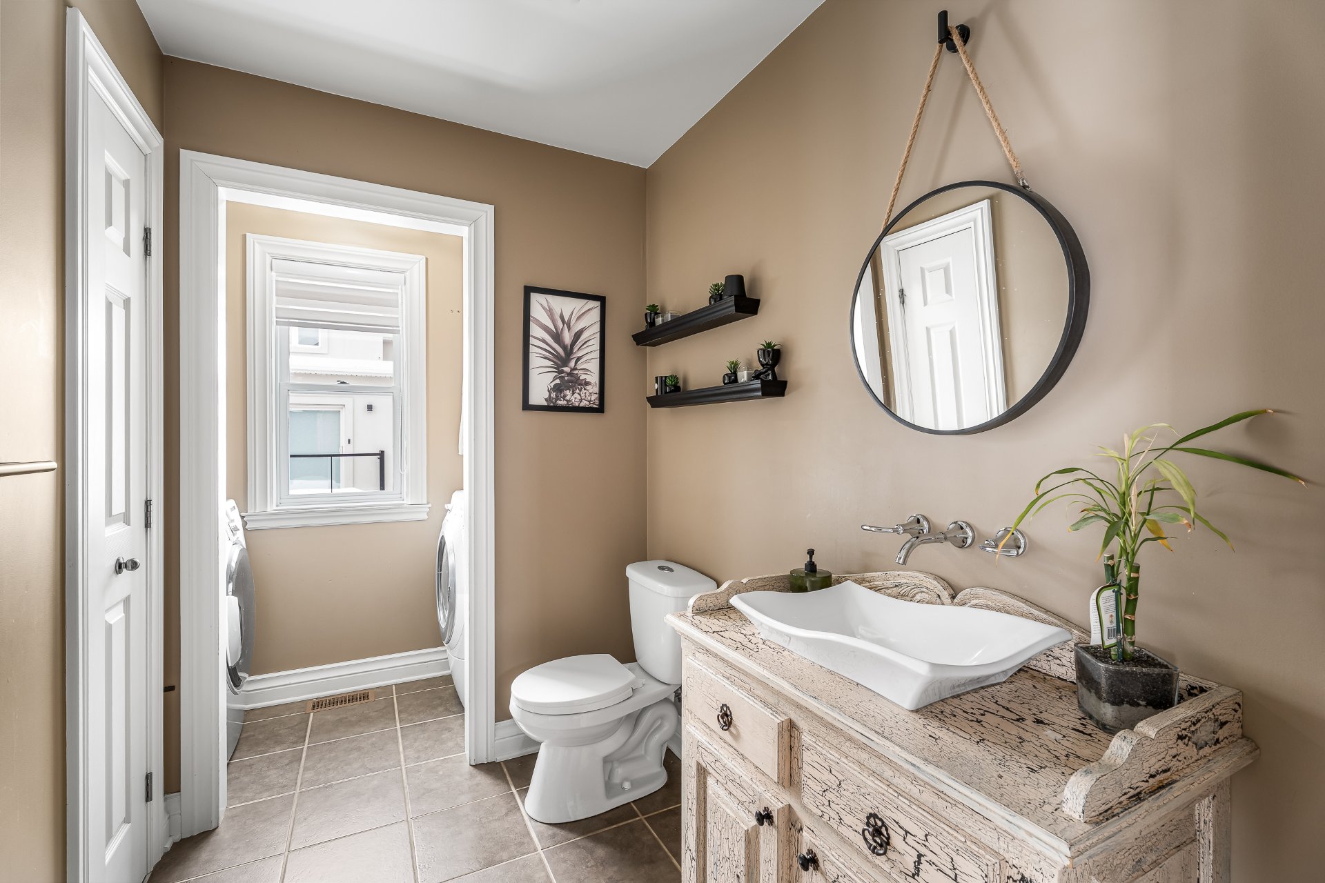 salle d'eau avec buanderie intégrée, puis une aire de vie