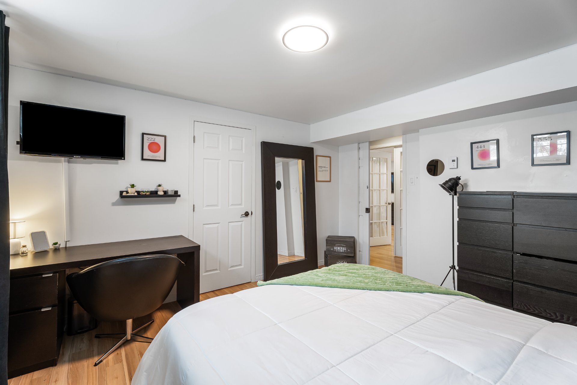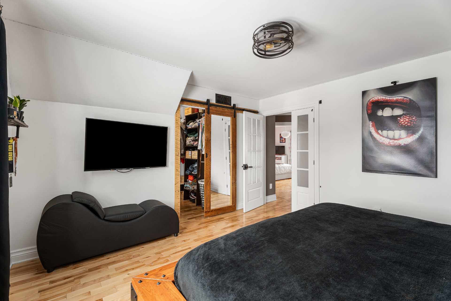 chambre à coucher ainsi qu'un grand espace de rangement.