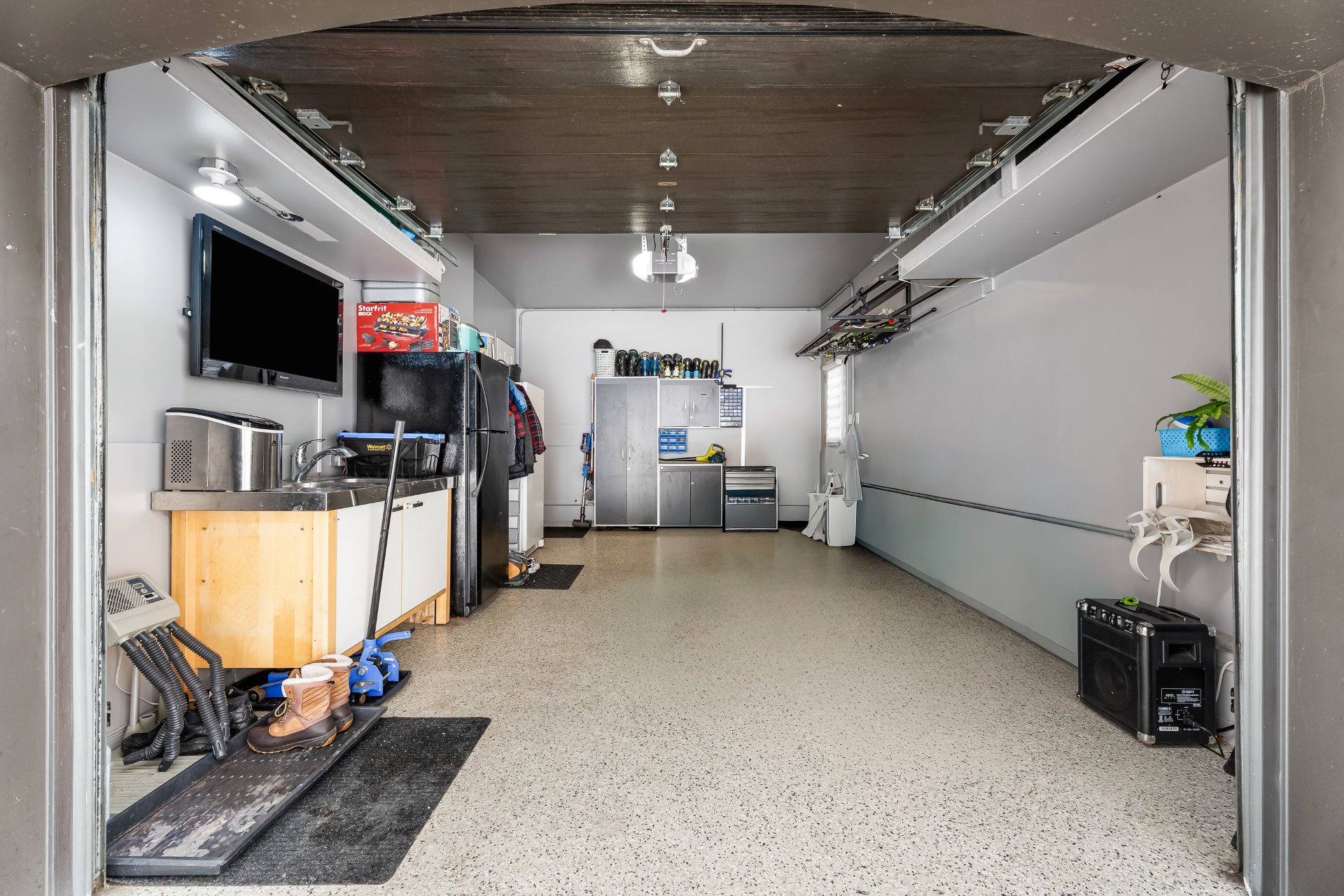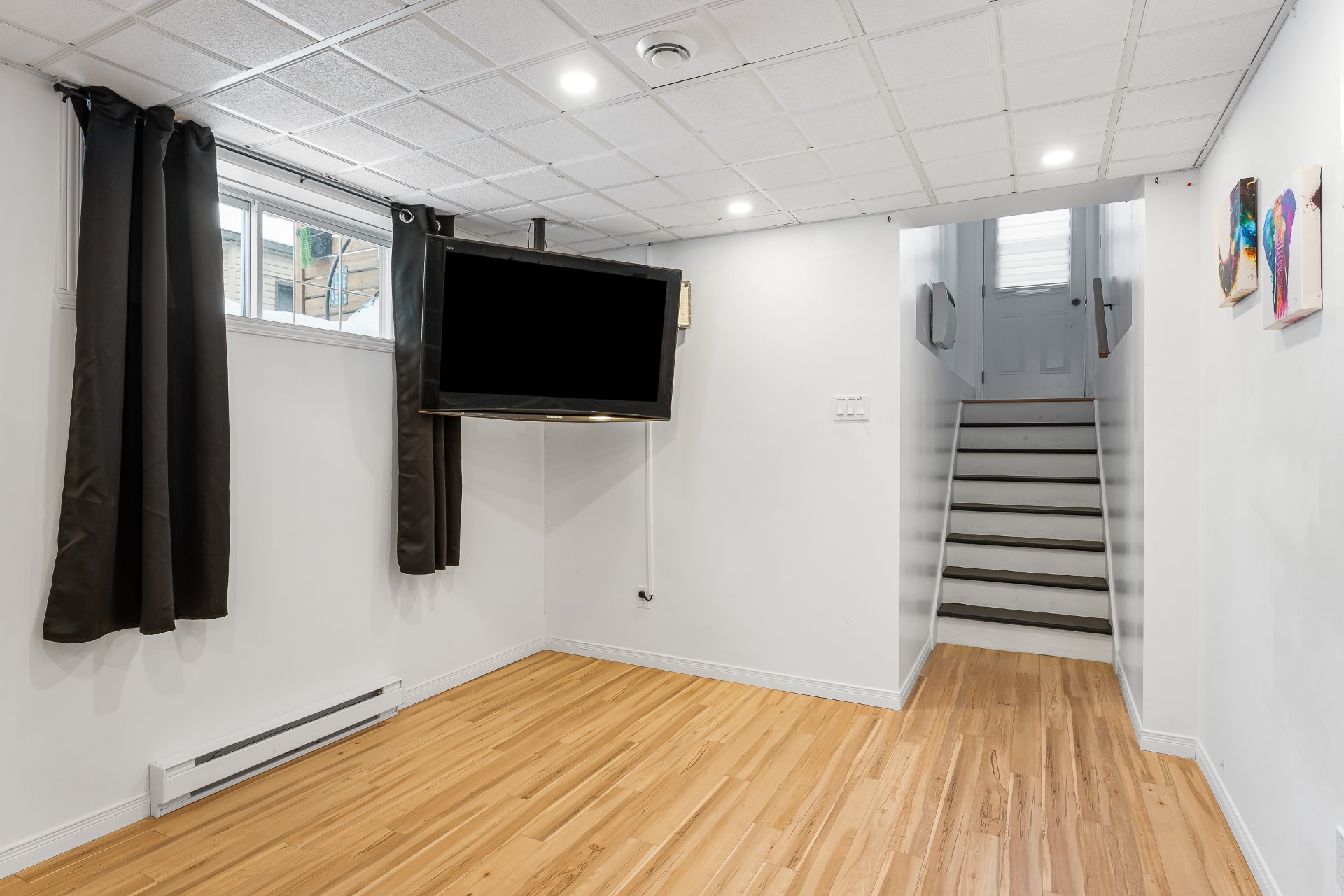 Le sous-sol est entièrement aménagé et offre une salle