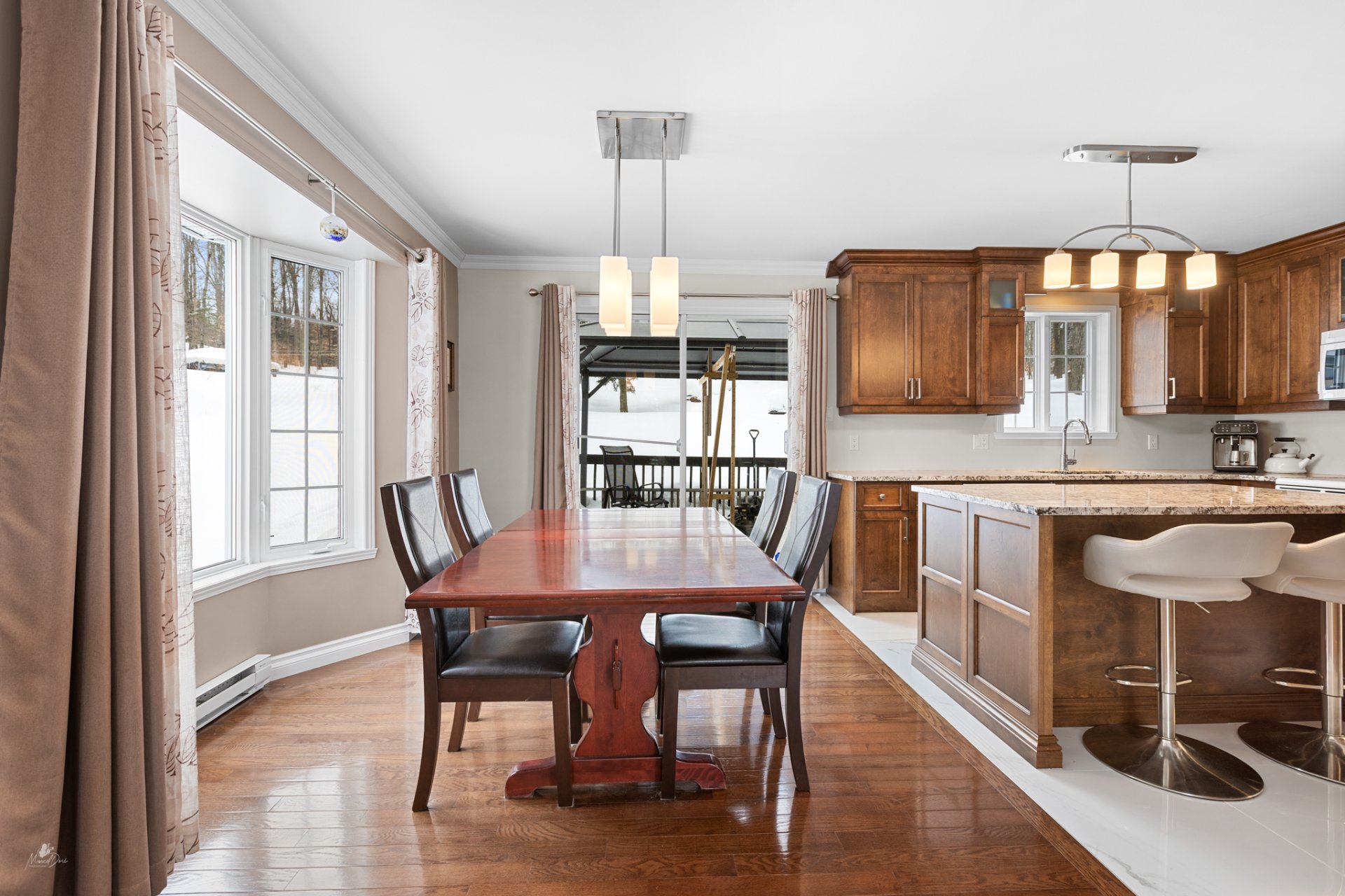 | Salle à manger | 10.9 x 9.6 P | Rez-de-chaussée | Bois |