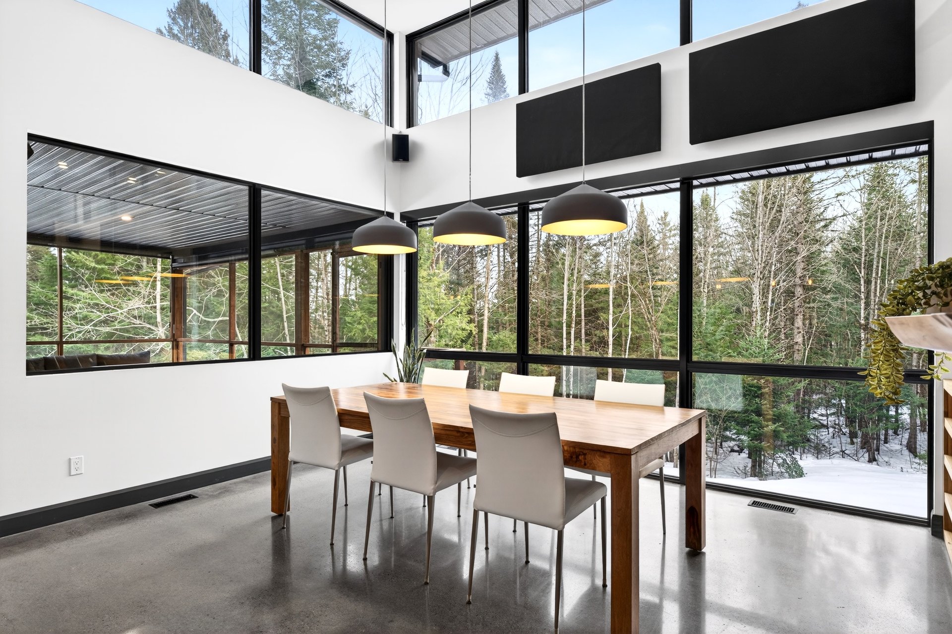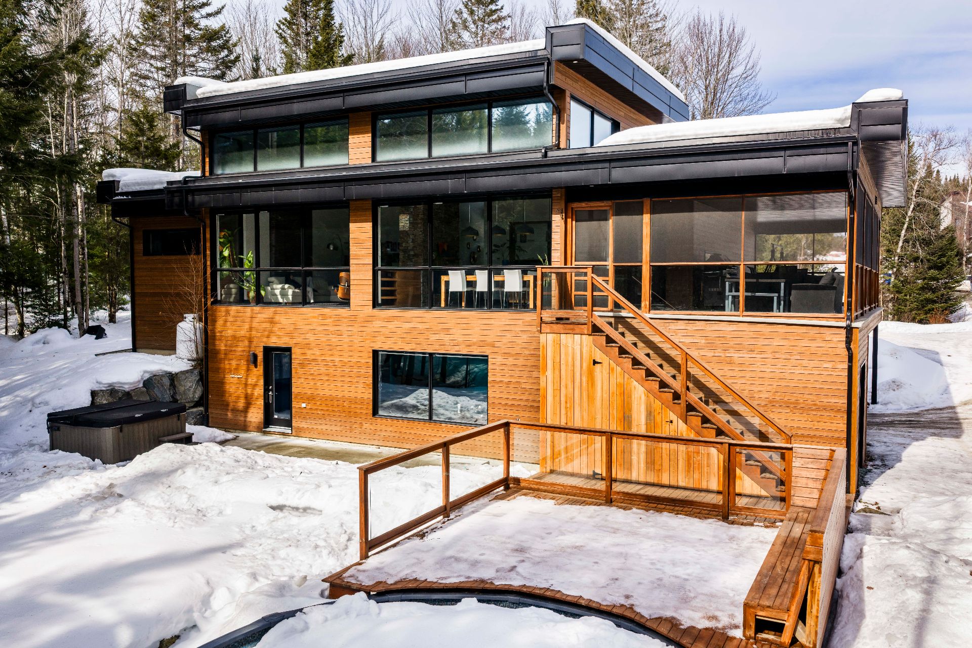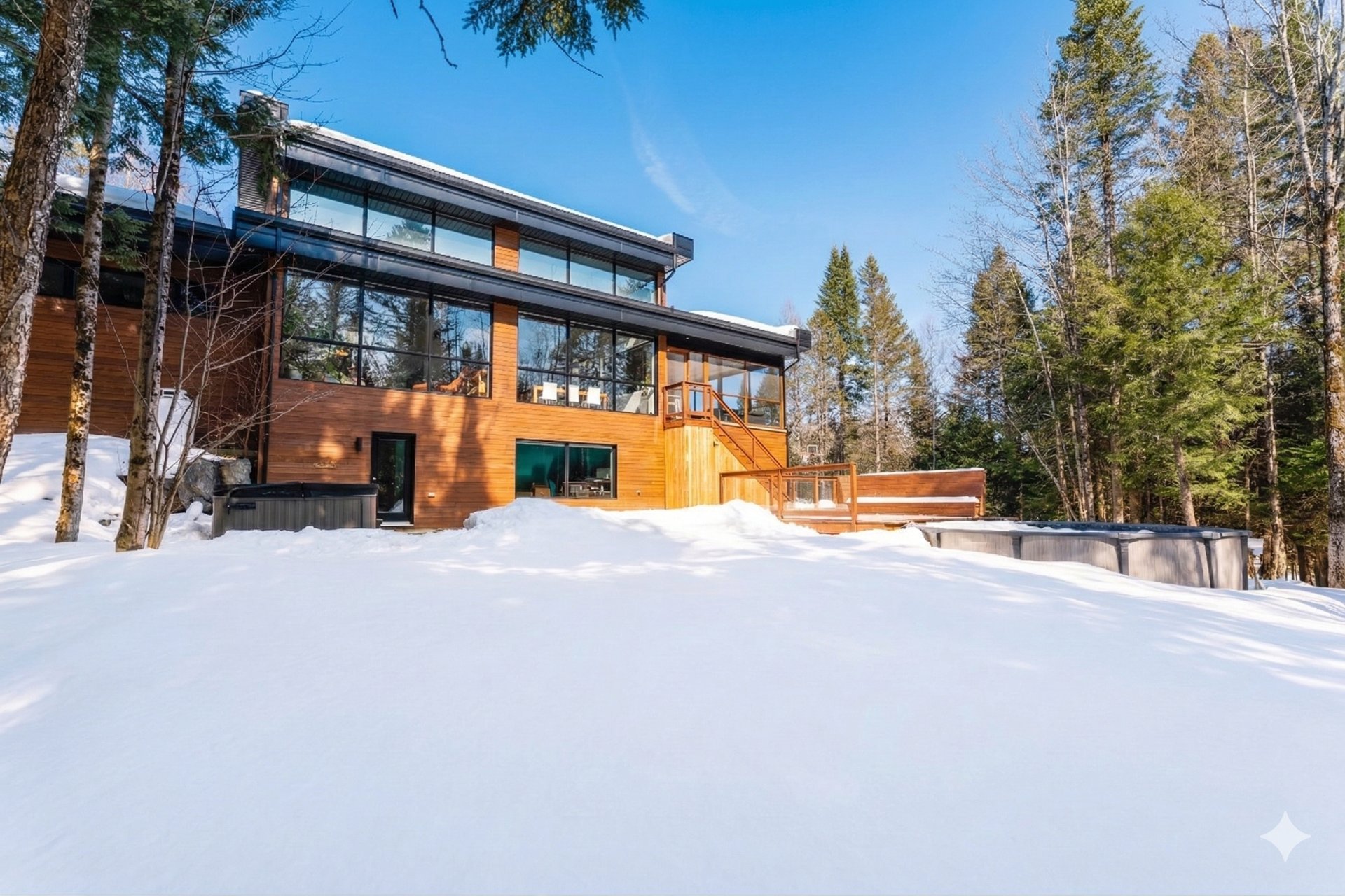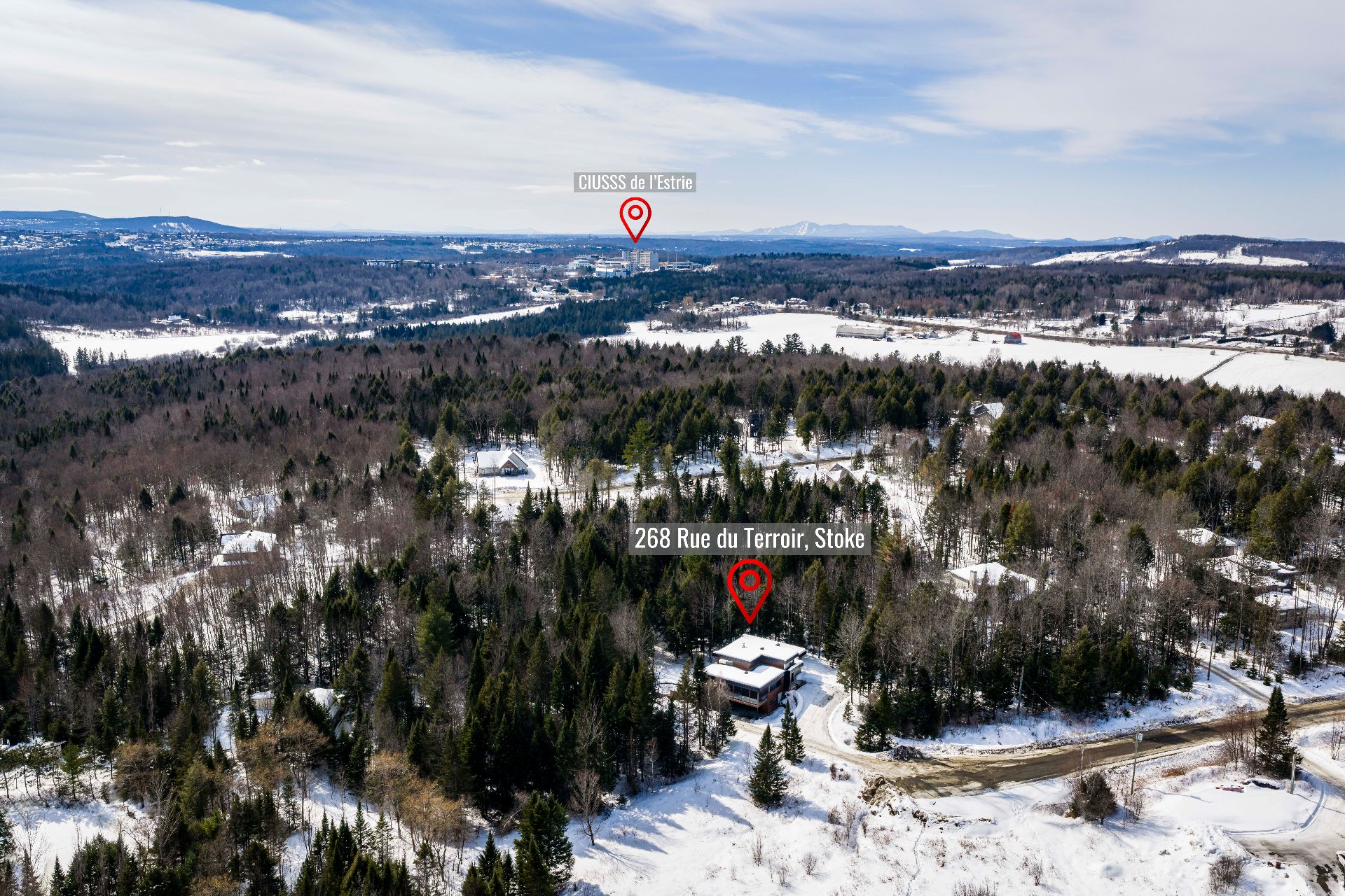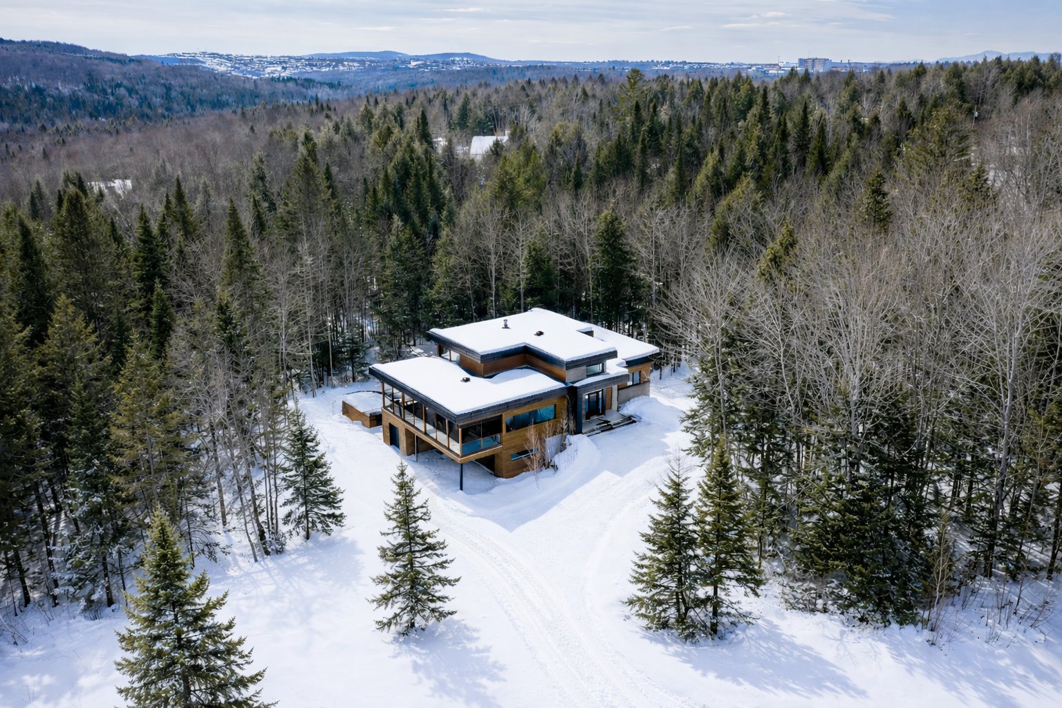 Véritable havre de paix, cette propriété haut de gamme à l'architecture contemporaine et aux matériaux nobles est située sur un terrain boisé intime de près de 2,5 acres, dans un rond-point. L'aire de vie, coiffée d'un plafond de 14 pieds et d'un spectaculaire mur vitré, met en valeur le foyer 3 faces en pierre, la cuisine en noyer massif et les planchers de béton radiant. 3 chambres se trouvent au rez-de-chaussée, ainsi qu'une salle de bain style spa. Rez-de-jardin lumineux offrant la possibilité d'aménager un bi-génération. Immense véranda 3 saisons, garage double et cabanon attenant. À 5 minutes du CHUS, de l'autoroute et des commerces.