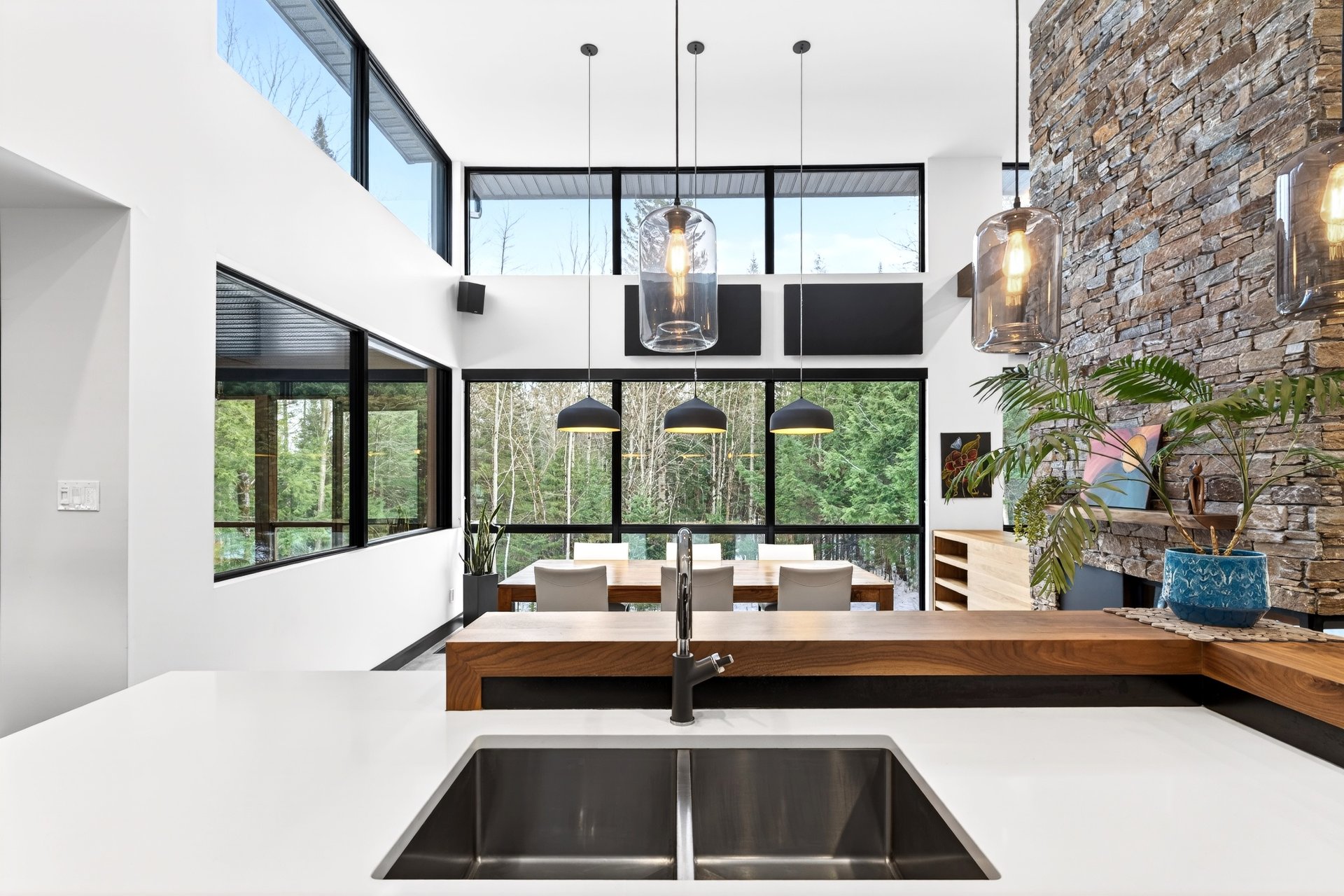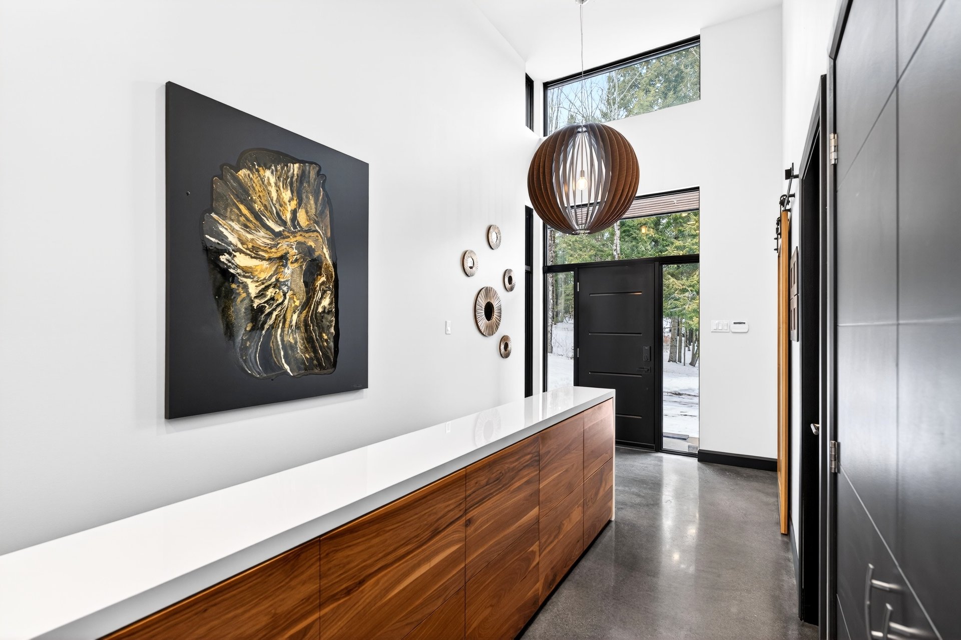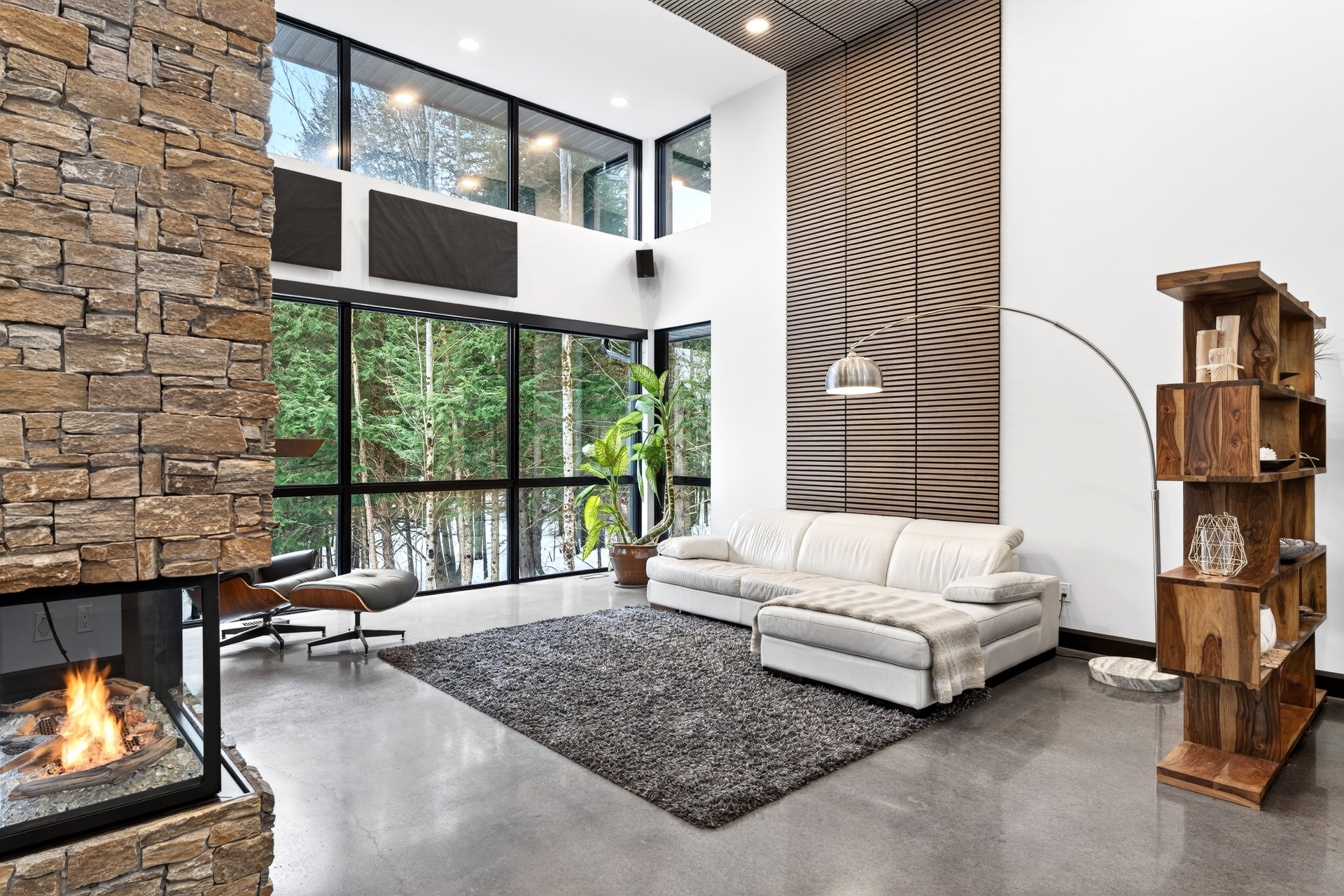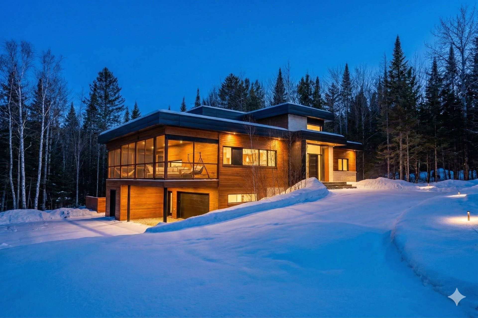 Véritable havre de paix, cette propriété haut de gamme à l'architecture contemporaine et aux matériaux nobles est située sur un terrain boisé intime de près de 2,5 acres, dans un rond-point. L'aire de vie, coiffée d'un plafond de 14 pieds et d'un spectaculaire mur vitré, met en valeur le foyer 3 faces en pierre, la cuisine en noyer massif et les planchers de béton radiant. 3 chambres se trouvent au rez-de-chaussée, ainsi qu'une salle de bain style spa. Rez-de-jardin lumineux offrant la possibilité d'aménager un bi-génération. Immense véranda 3 saisons, garage double et cabanon attenant. À 5 minutes du CHUS, de l'autoroute et des commerces.