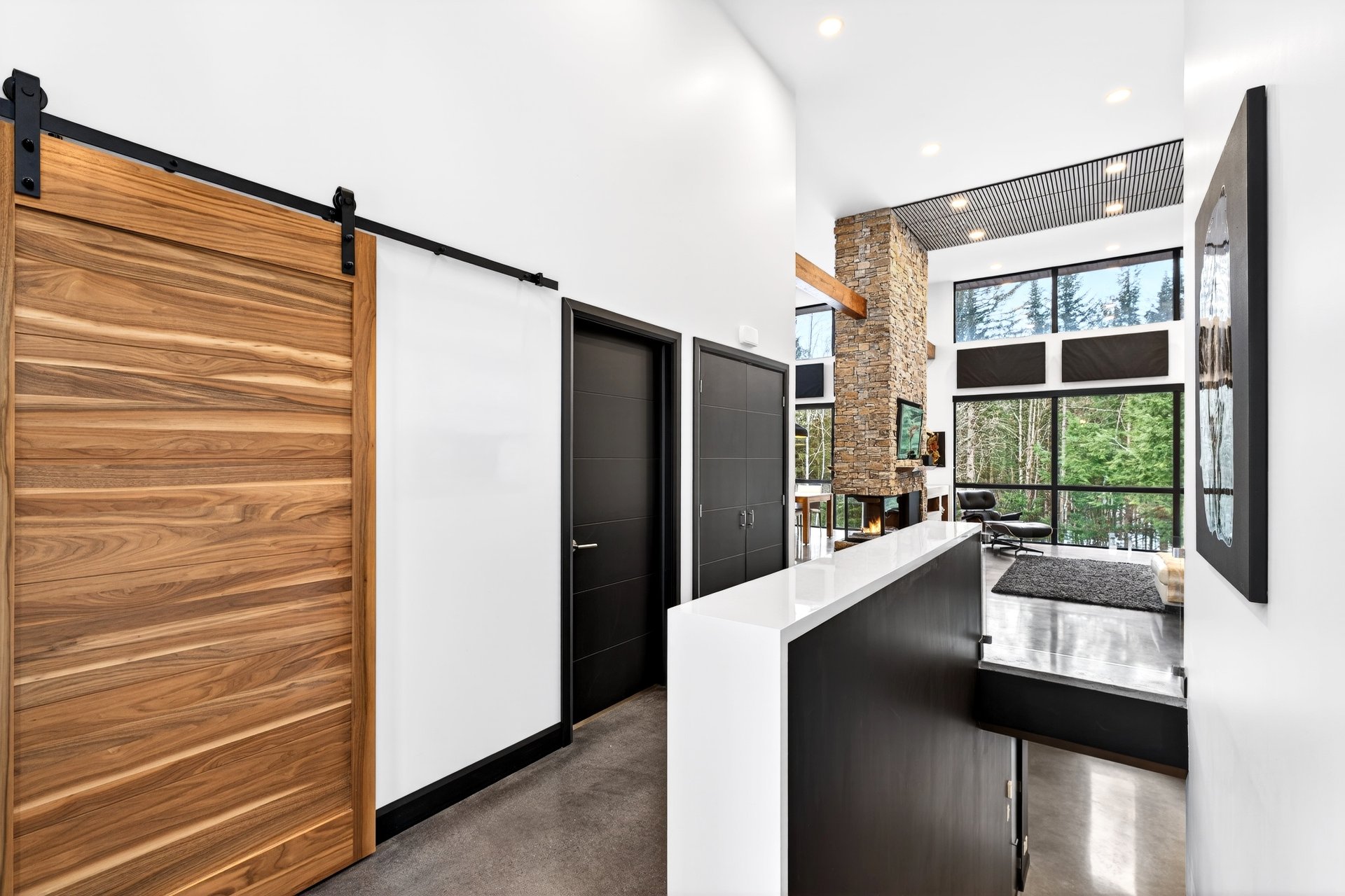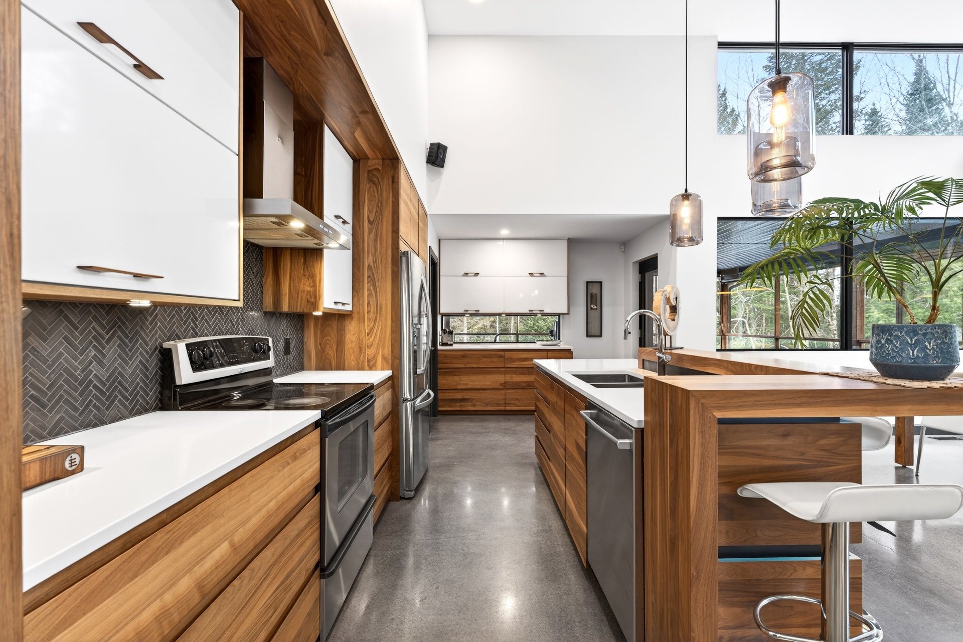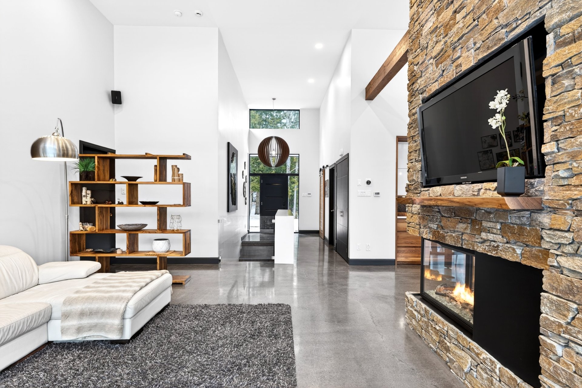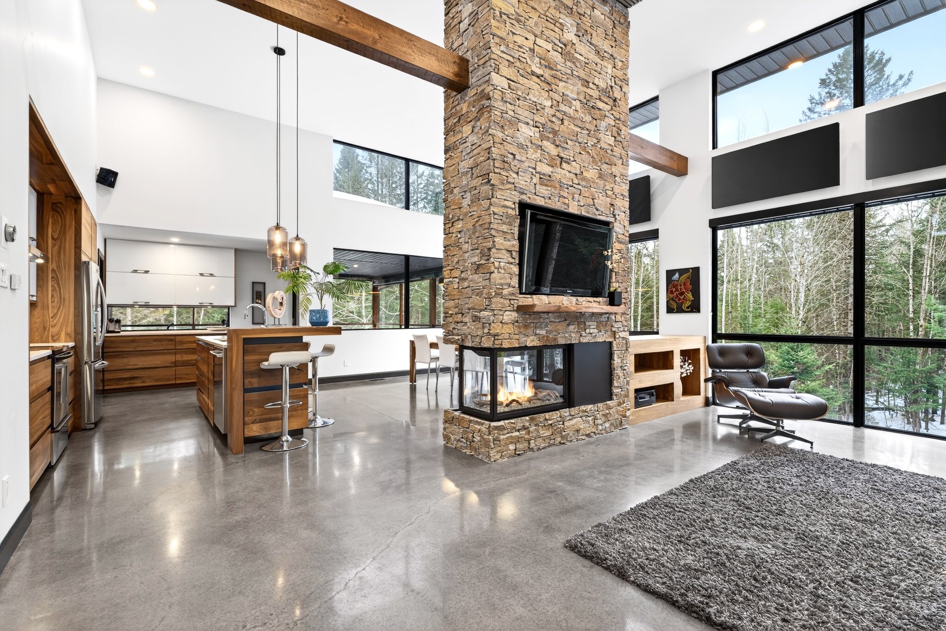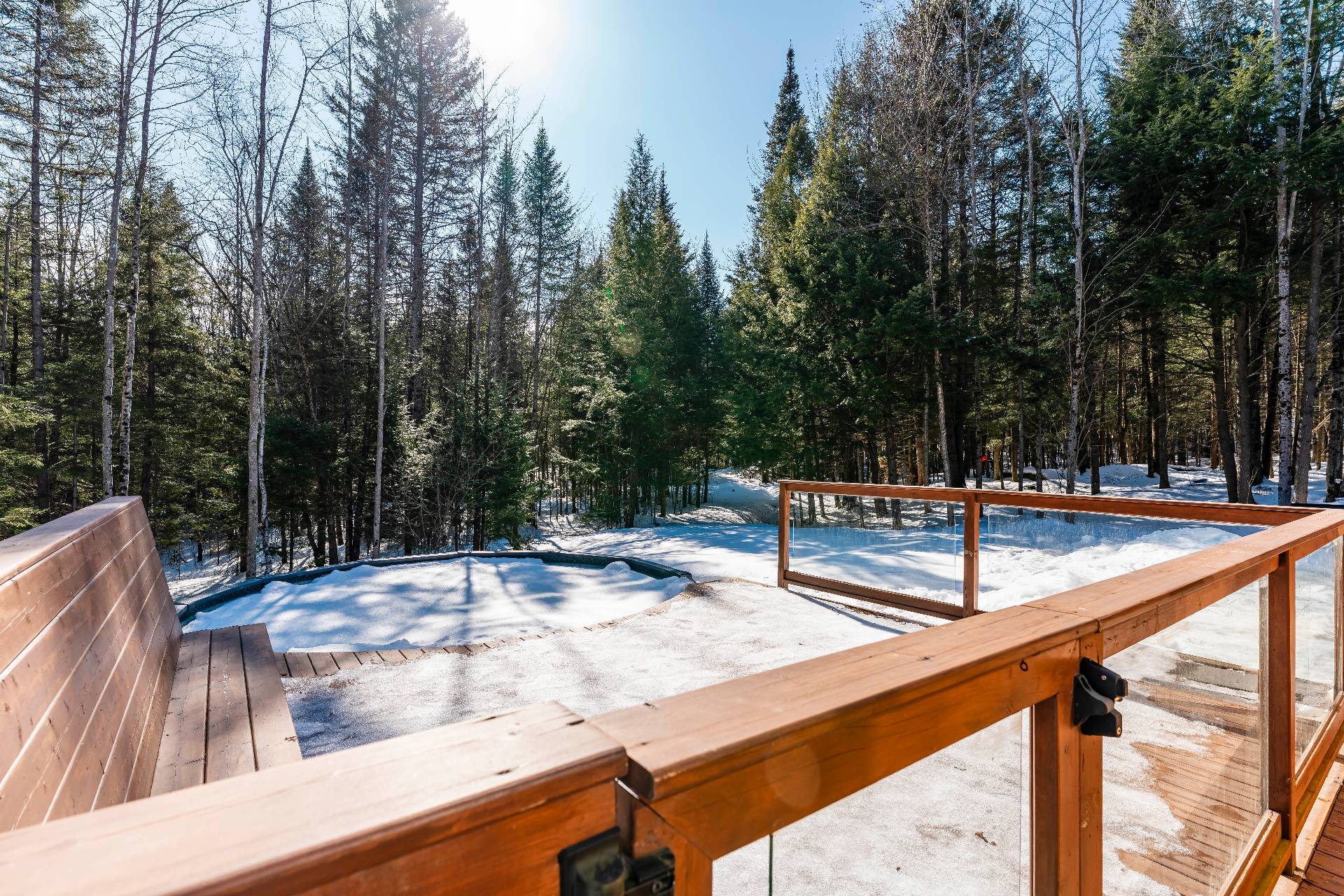 Véritable havre de paix, cette propriété haut de gamme à l'architecture contemporaine et aux matériaux nobles est située sur un terrain boisé intime de près de 2,5 acres, dans un rond-point. L'aire de vie, coiffée d'un plafond de 14 pieds et d'un spectaculaire mur vitré, met en valeur le foyer 3 faces en pierre, la cuisine en noyer massif et les planchers de béton radiant. 3 chambres se trouvent au rez-de-chaussée, ainsi qu'une salle de bain style spa. Rez-de-jardin lumineux offrant la possibilité d'aménager un bi-génération. Immense véranda 3 saisons, garage double et cabanon attenant. À 5 minutes du CHUS, de l'autoroute et des commerces.