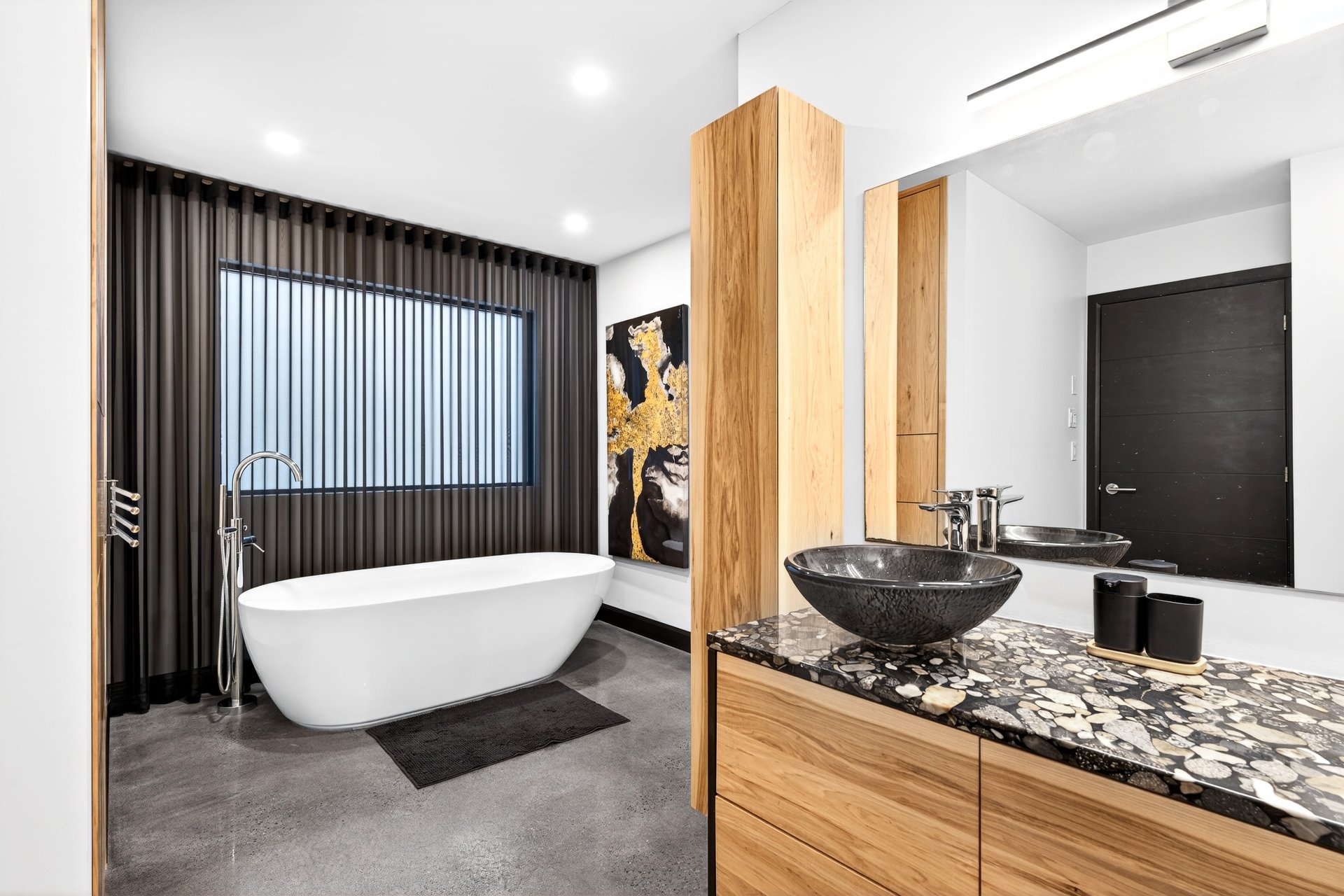 pierre naturelle, douche à l'italienne, bain autoportant,