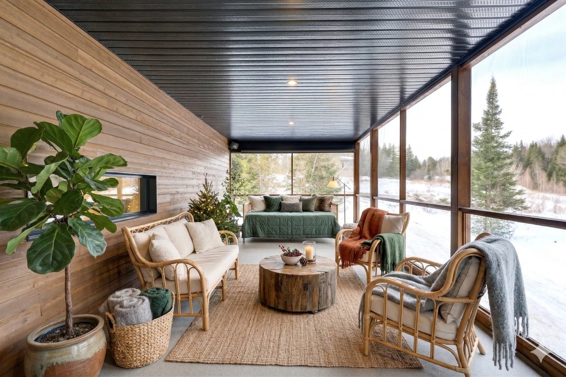 Une immense véranda 3 saisons prolonge l'espace de vie et