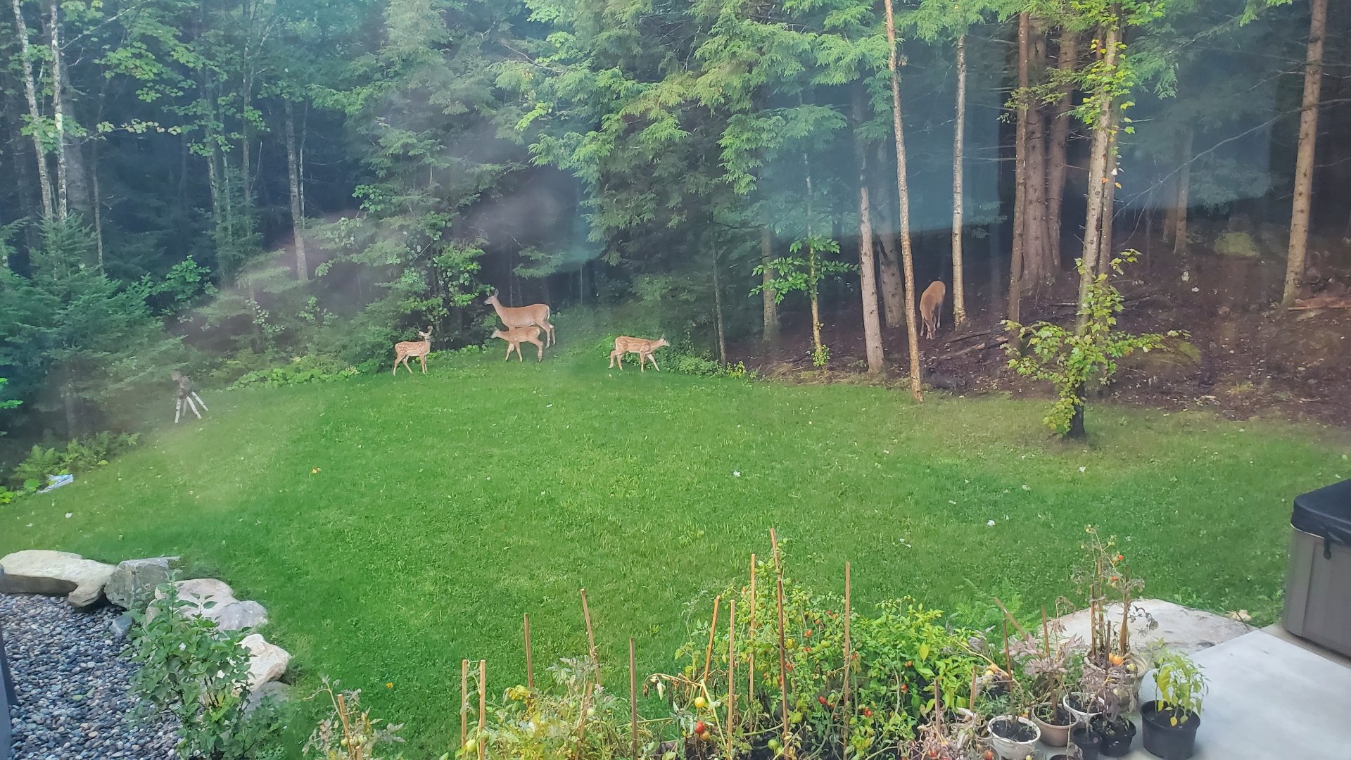 Implantée sur un terrain boisé de près de 2,5 acres, sans
