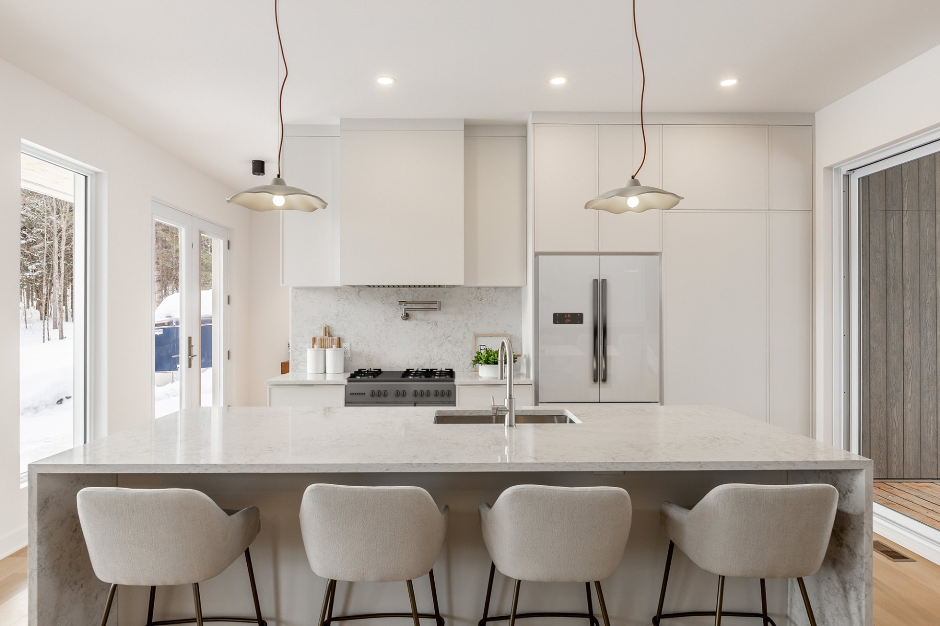 projette dans la cuisine avec comptoir de quartz ainsi que