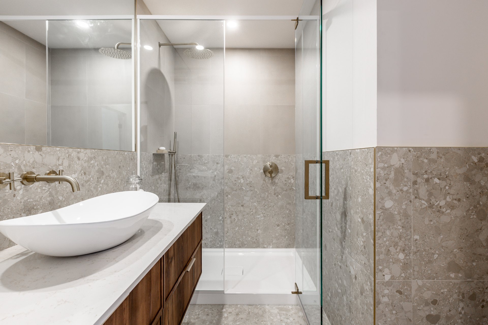 walk-in et une énorme salle de bain avec plancher chauffant.