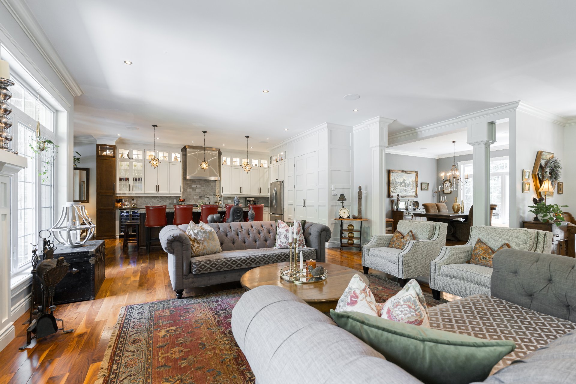 cuisine à aire ouverte s'intègre parfaitement à cet espace.