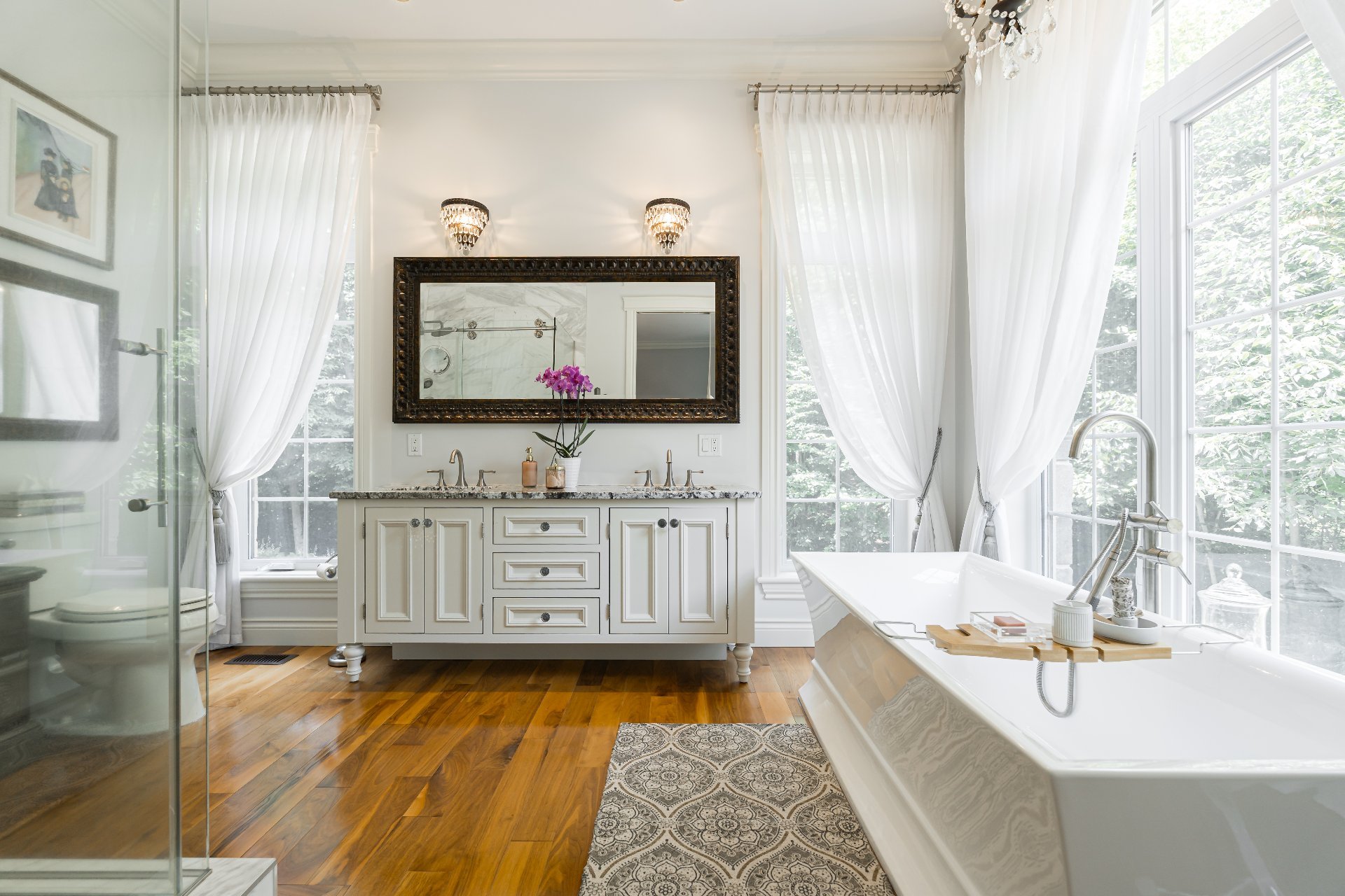 d'une baignoire et d'une douche séparée. Une salle d'eau,