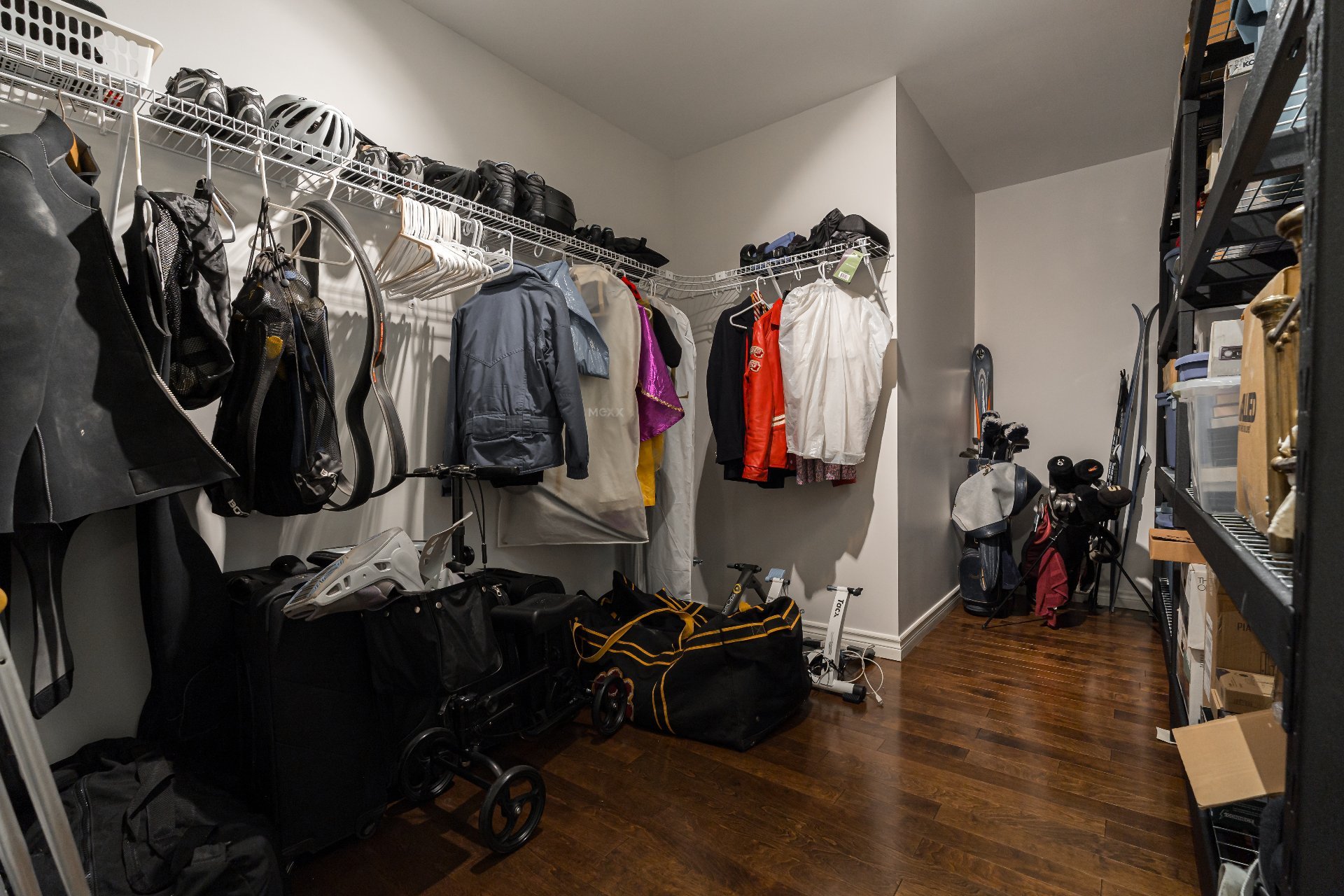 rangement, dont une salle d'équipement et un accès au