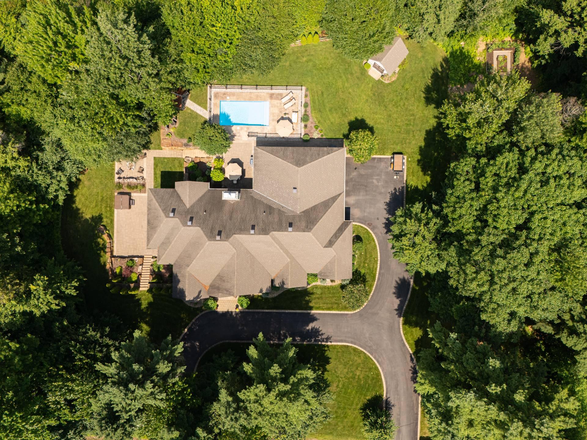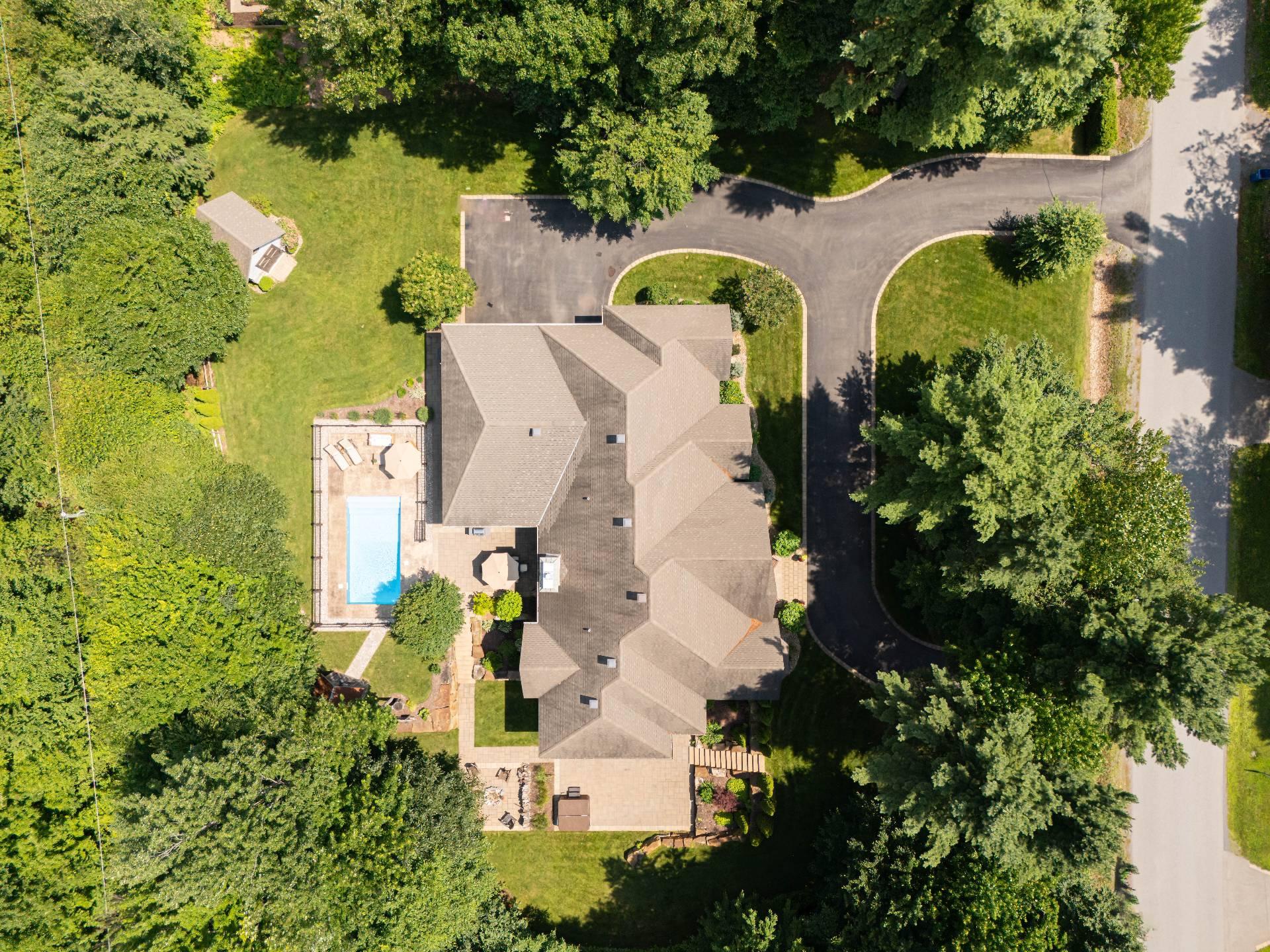 entourée d'arbres matures, offrant une intimité totale sans