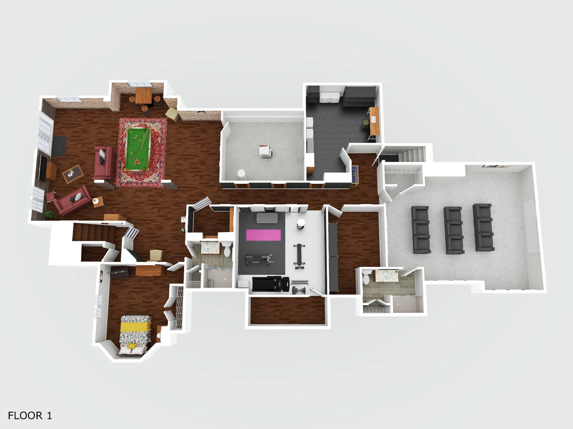 salle de sport, atelier et deux grandes pièces de