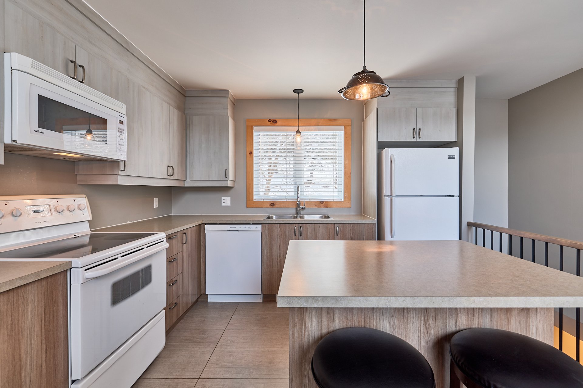 qu'une cuisine entièrement équipée avec îlot central et