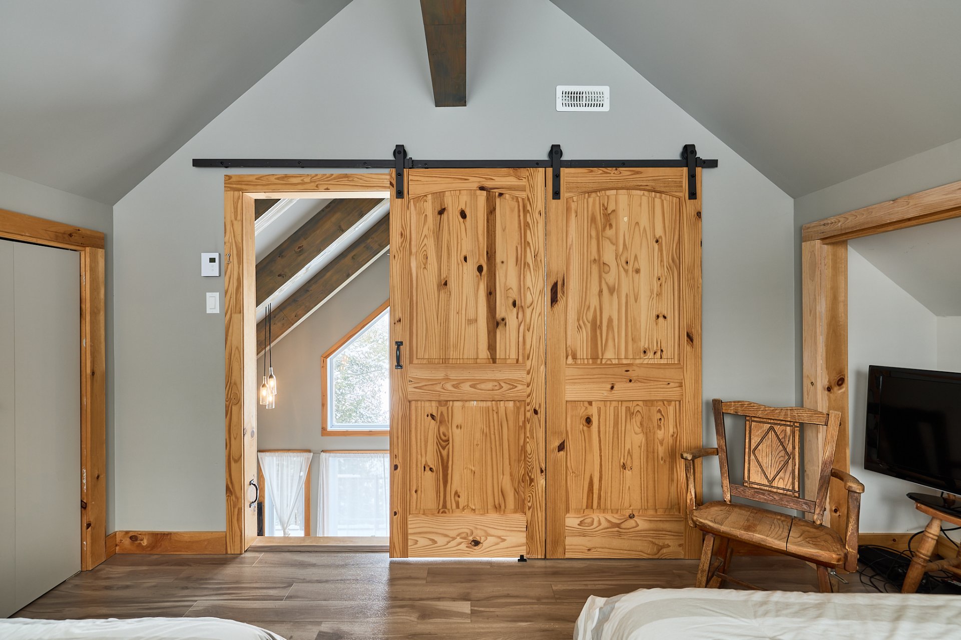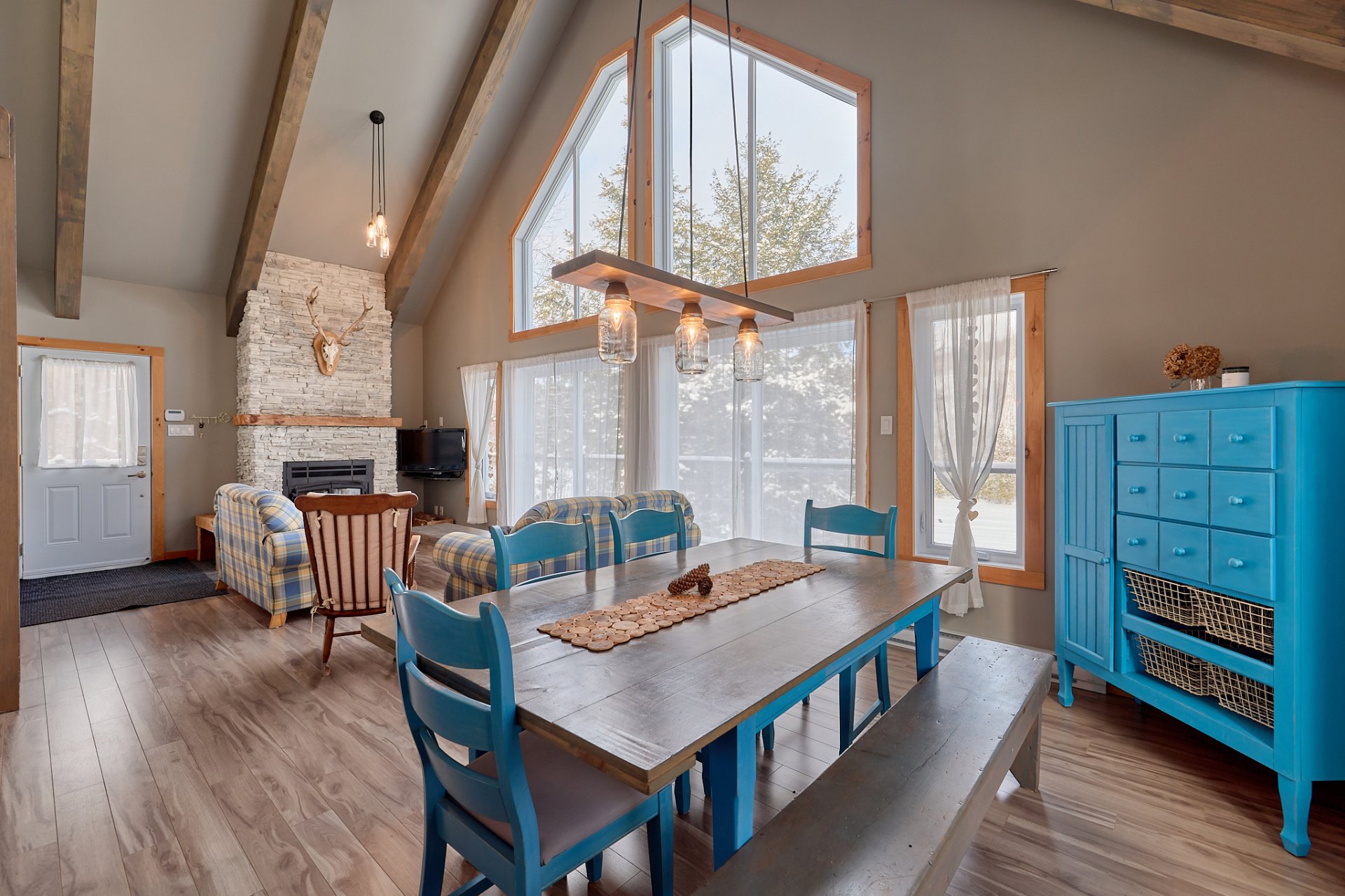 cathédrale, les poutres apparentes et le foyer au bois à