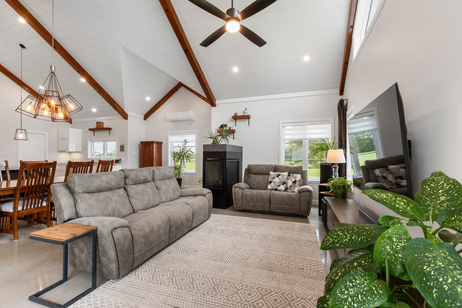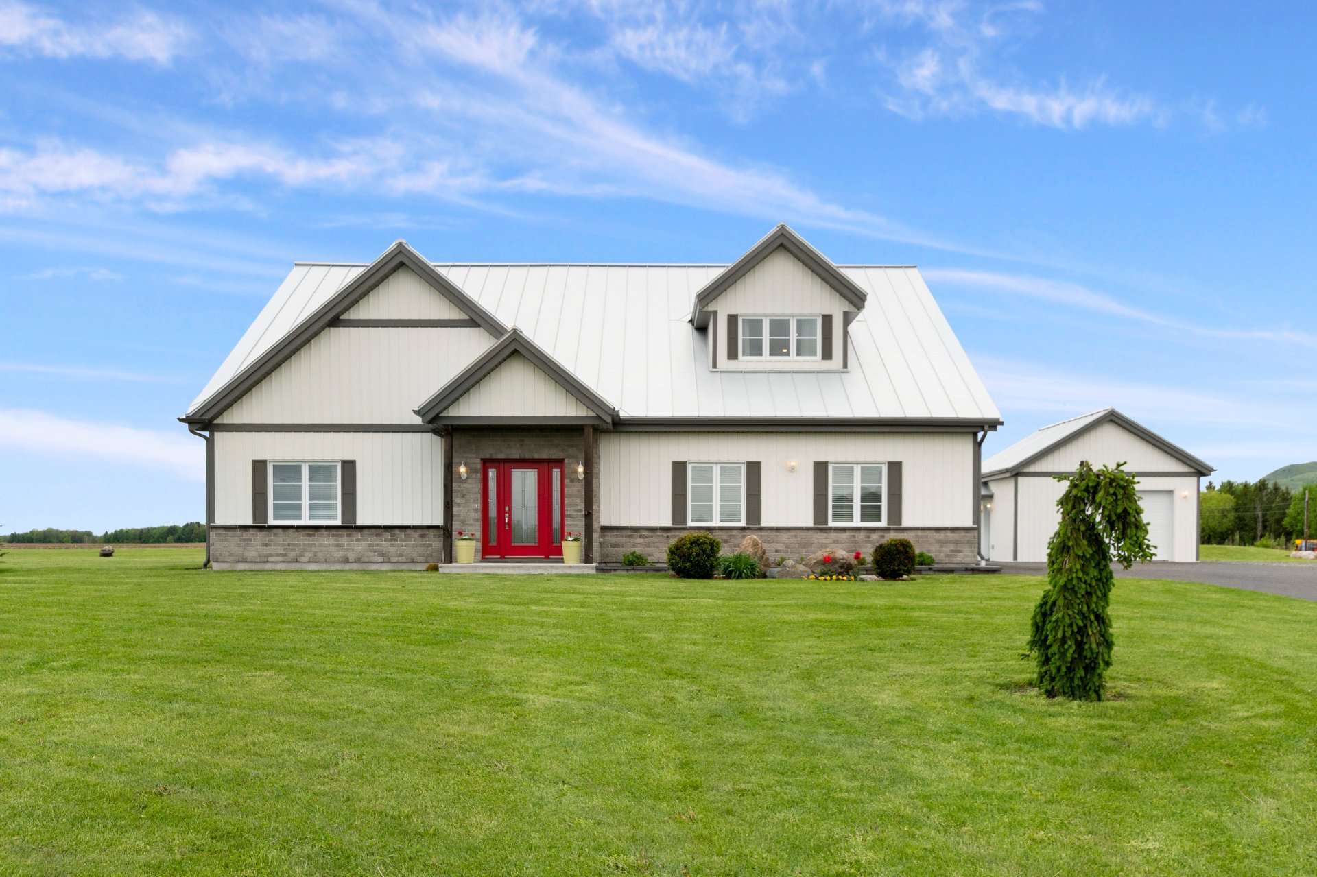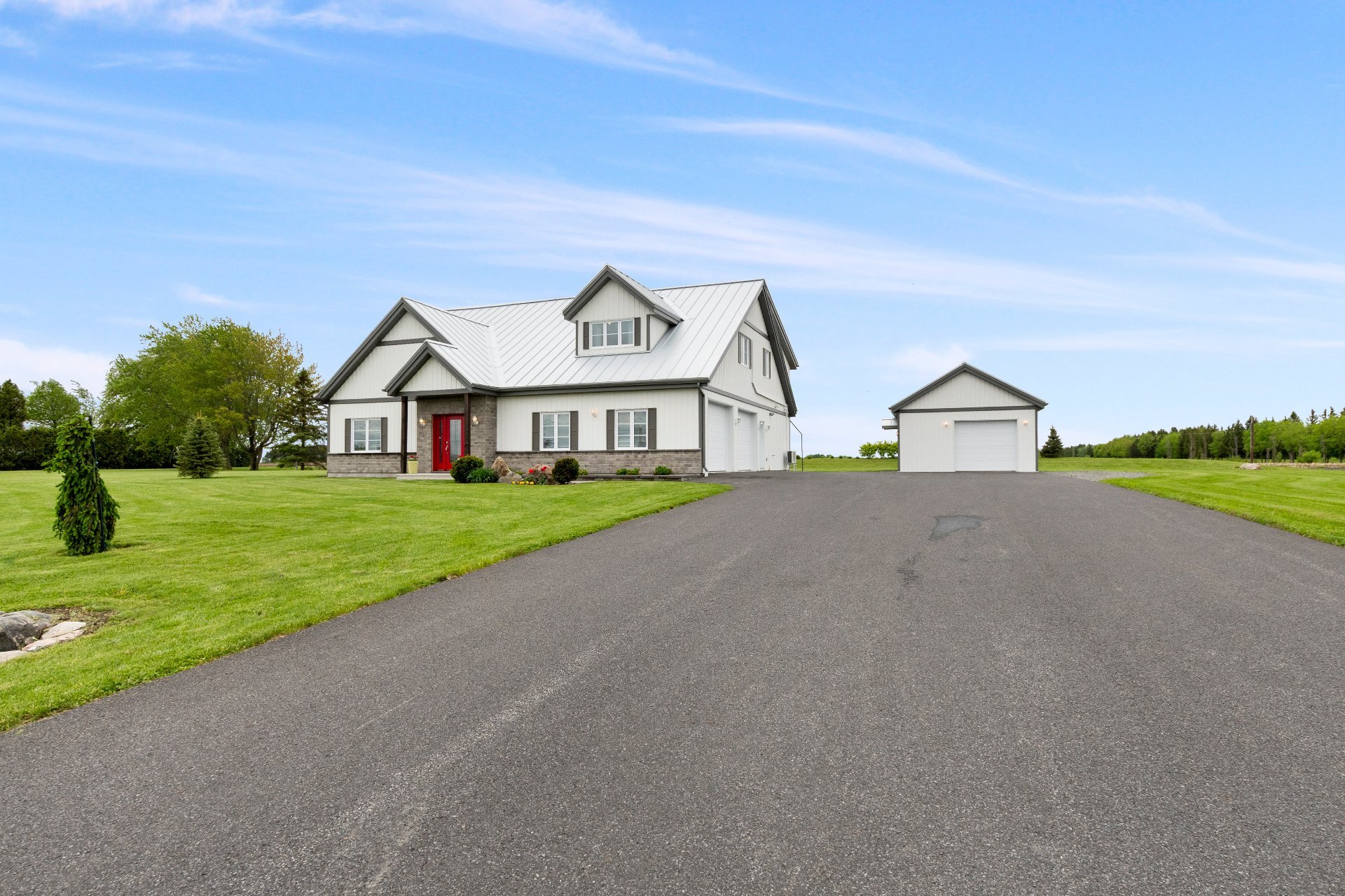 Maison d'exception sur terrain de 53 820 p², en nature et à l'abri des regards. Construction supérieure sur dalle de béton avec aire de vie et chambre principale au RDC sur plein pied, matériaux haut de gamme, souci du détail remarquable. Planchers chauffants partout, incluant le garage double. Aire de vie avec plafond cathédrale de 16 pi, cuisine, salle à manger et salon ouverts, foyer au gaz 3 faces. 4 chambres, dont une suite principale, 2 salles de bain complètes, salle d'eau avec lavage, grande salle familiale à l'étage. Toiture en tôle, allée asphaltée pour plus de 10 véhicules, garage détaché. Intimité, confort et durabilité.