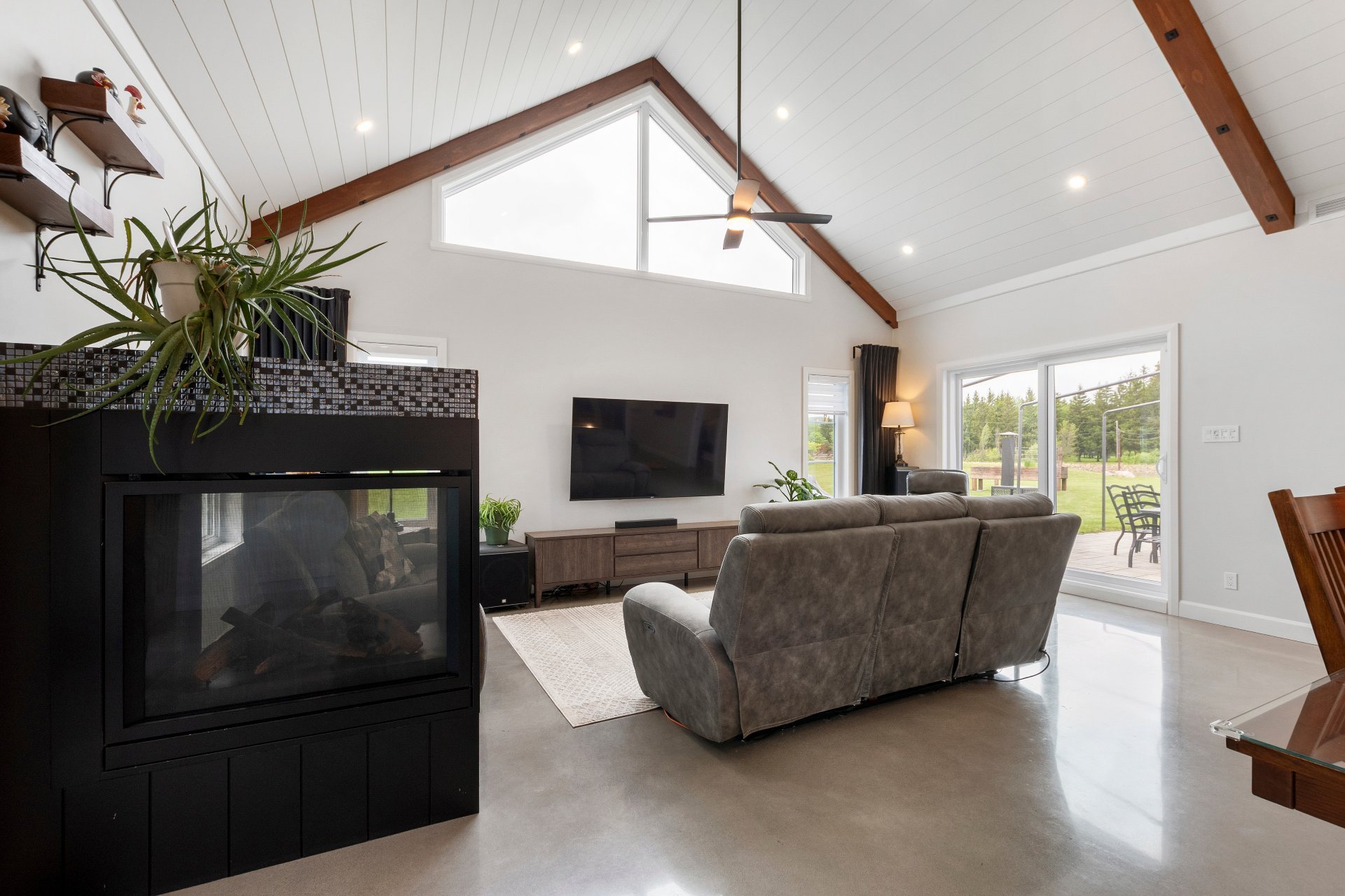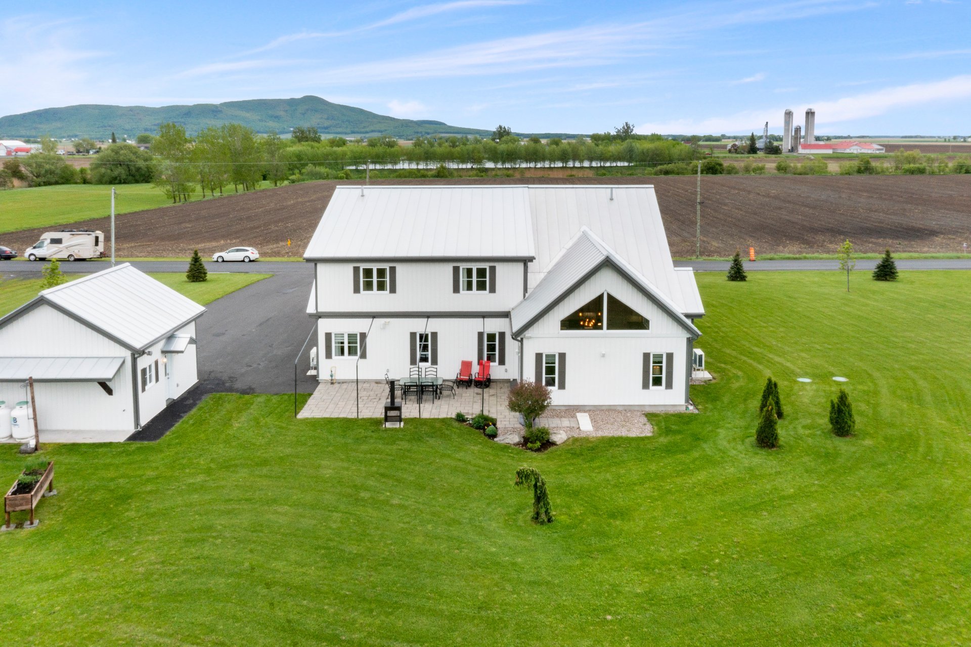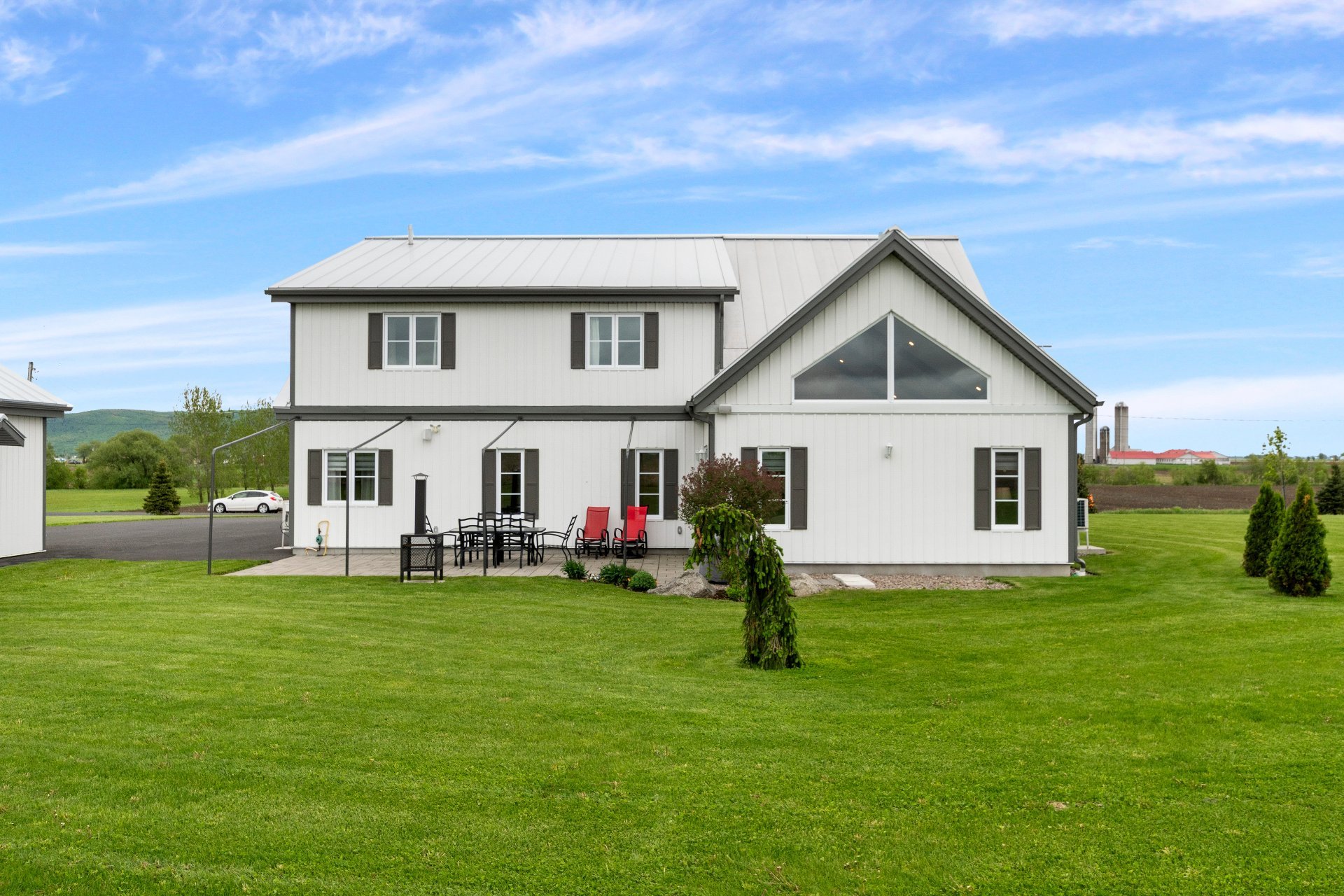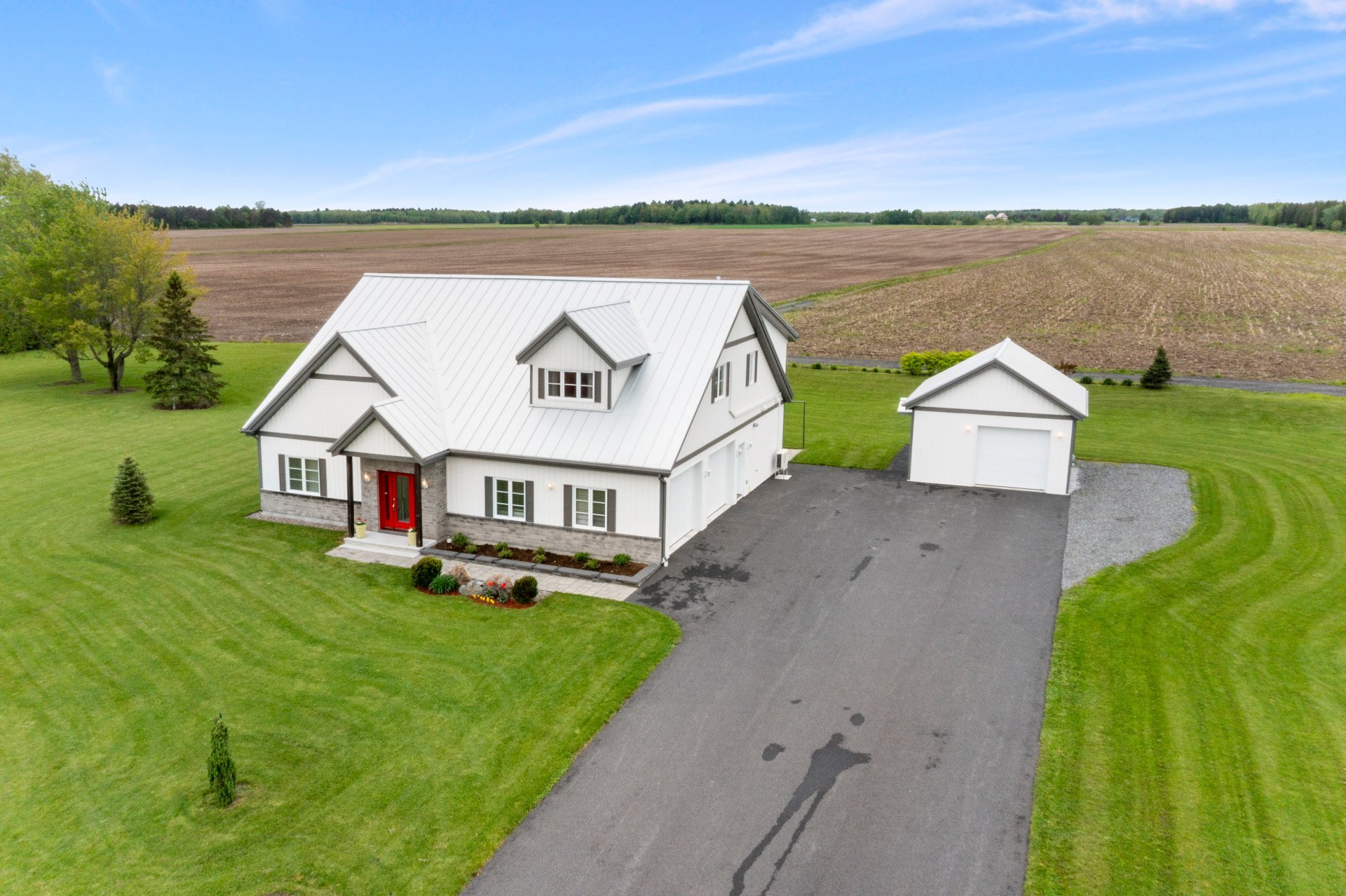 Maison d'exception sur terrain de 53 820 p², en nature et à l'abri des regards. Construction supérieure sur dalle de béton avec aire de vie et chambre principale au RDC sur plein pied, matériaux haut de gamme, souci du détail remarquable. Planchers chauffants partout, incluant le garage double. Aire de vie avec plafond cathédrale de 16 pi, cuisine, salle à manger et salon ouverts, foyer au gaz 3 faces. 4 chambres, dont une suite principale, 2 salles de bain complètes, salle d'eau avec lavage, grande salle familiale à l'étage. Toiture en tôle, allée asphaltée pour plus de 10 véhicules, garage détaché. Intimité, confort et durabilité.