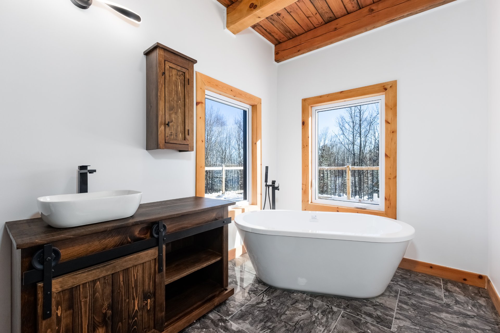 Magnifique propriété au style unique mariant, charme rustique et finition contemporaine, sur deux étages. Vaste salon lumineux avec plafond cathédrale, finitions en boiseries, escalier architectural en bois et métal. Cuisine moderne à aire ouverte sur la salle à manger. Trois chambres à coucher, un bureau, deux salles de bain complètes (dont une attenante à la chambre principale) et une salle d'eau. Sous-sol à terminer selon vos besoins, avec entrée extérieure. Planchers de bois et céramique, grand balcon avec vue sur la forêt. Une maison au cachet chaleureux à découvrir, située près des écoles et à seulement 30 minutes de Hull!