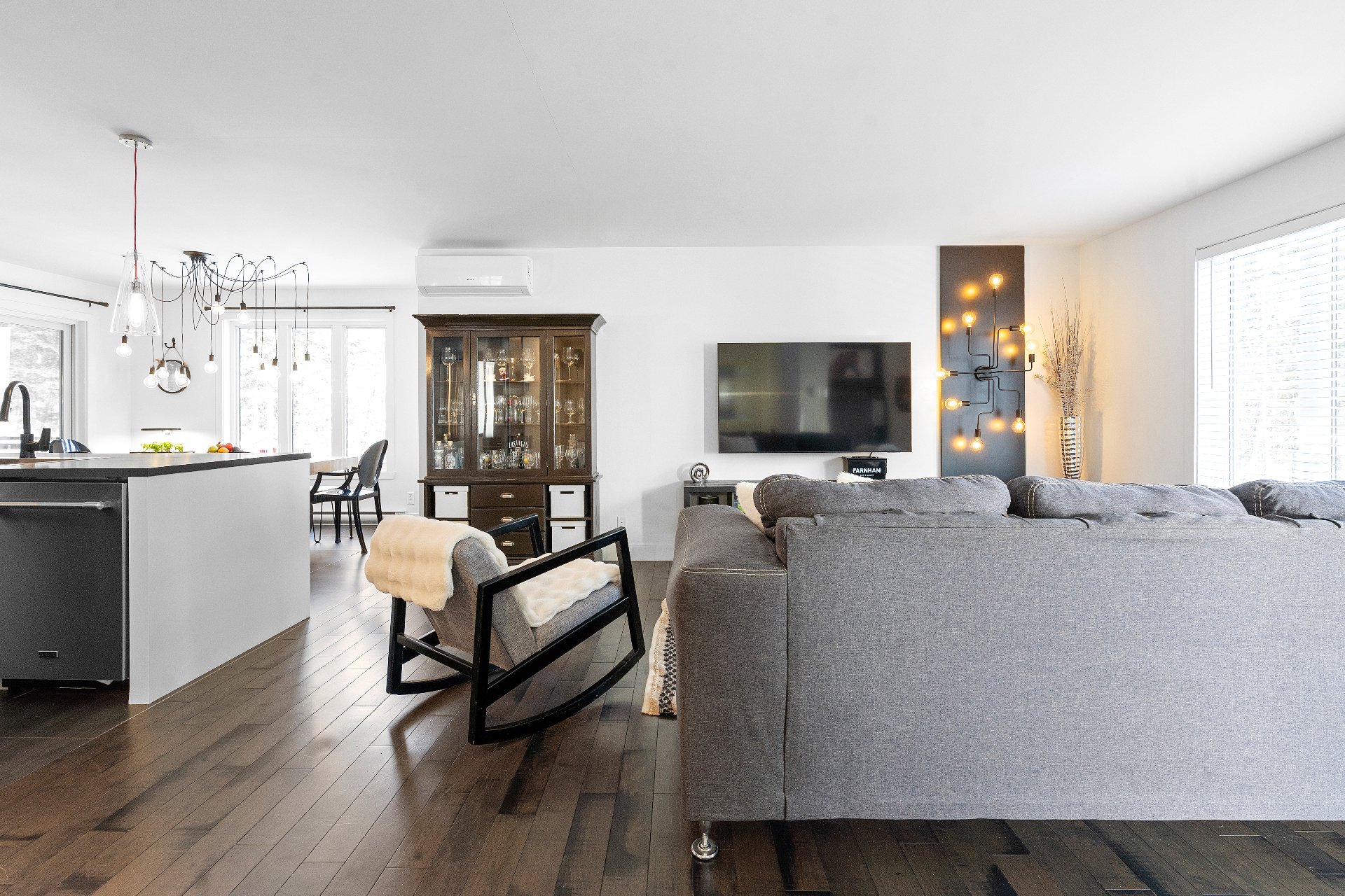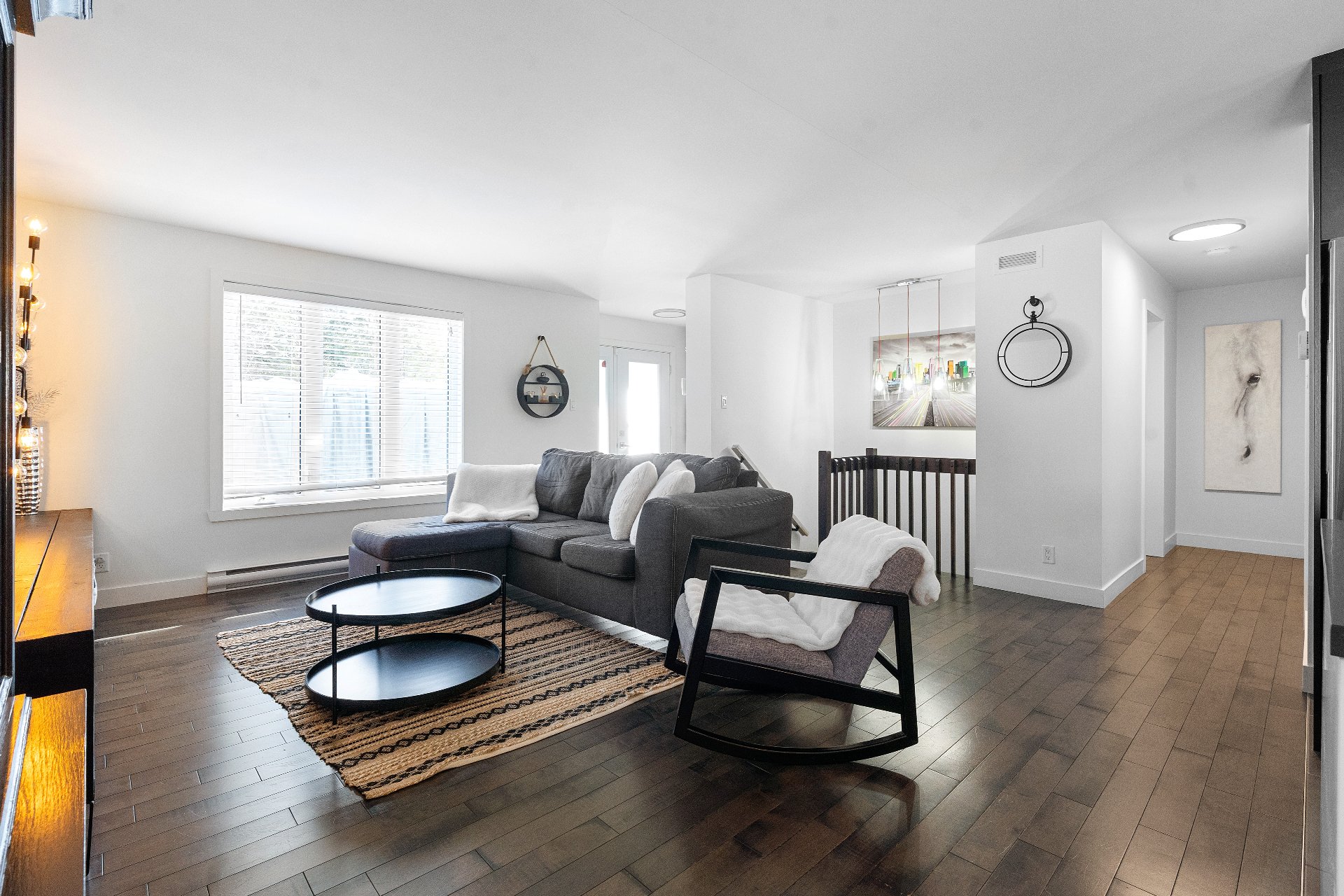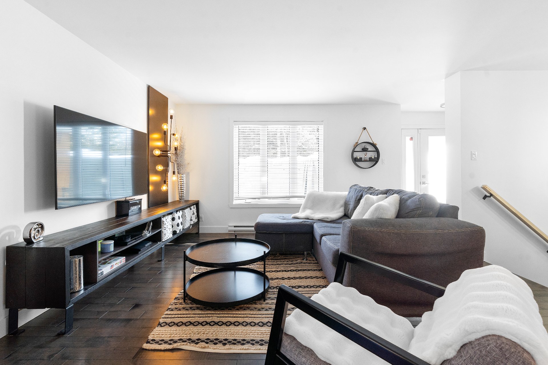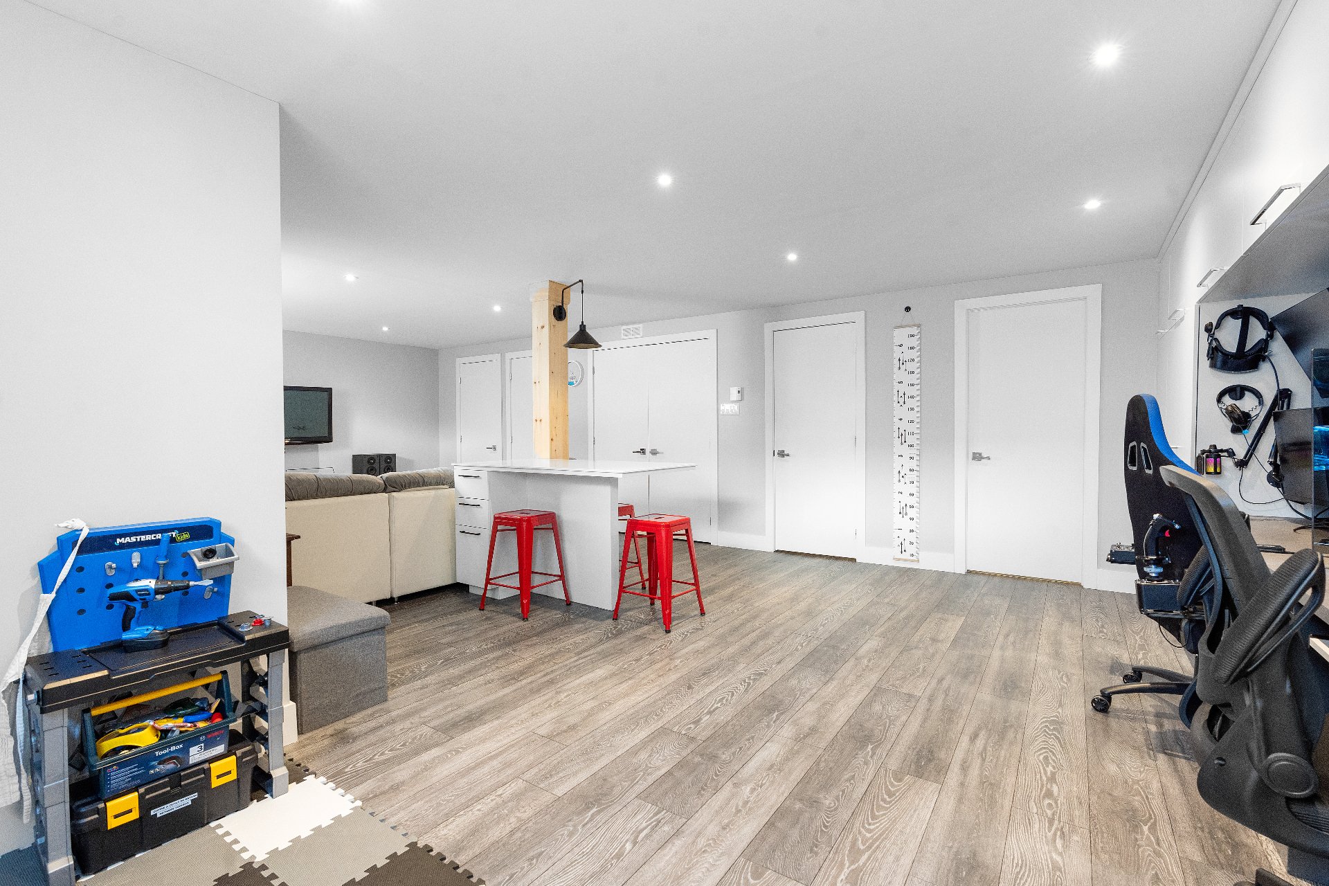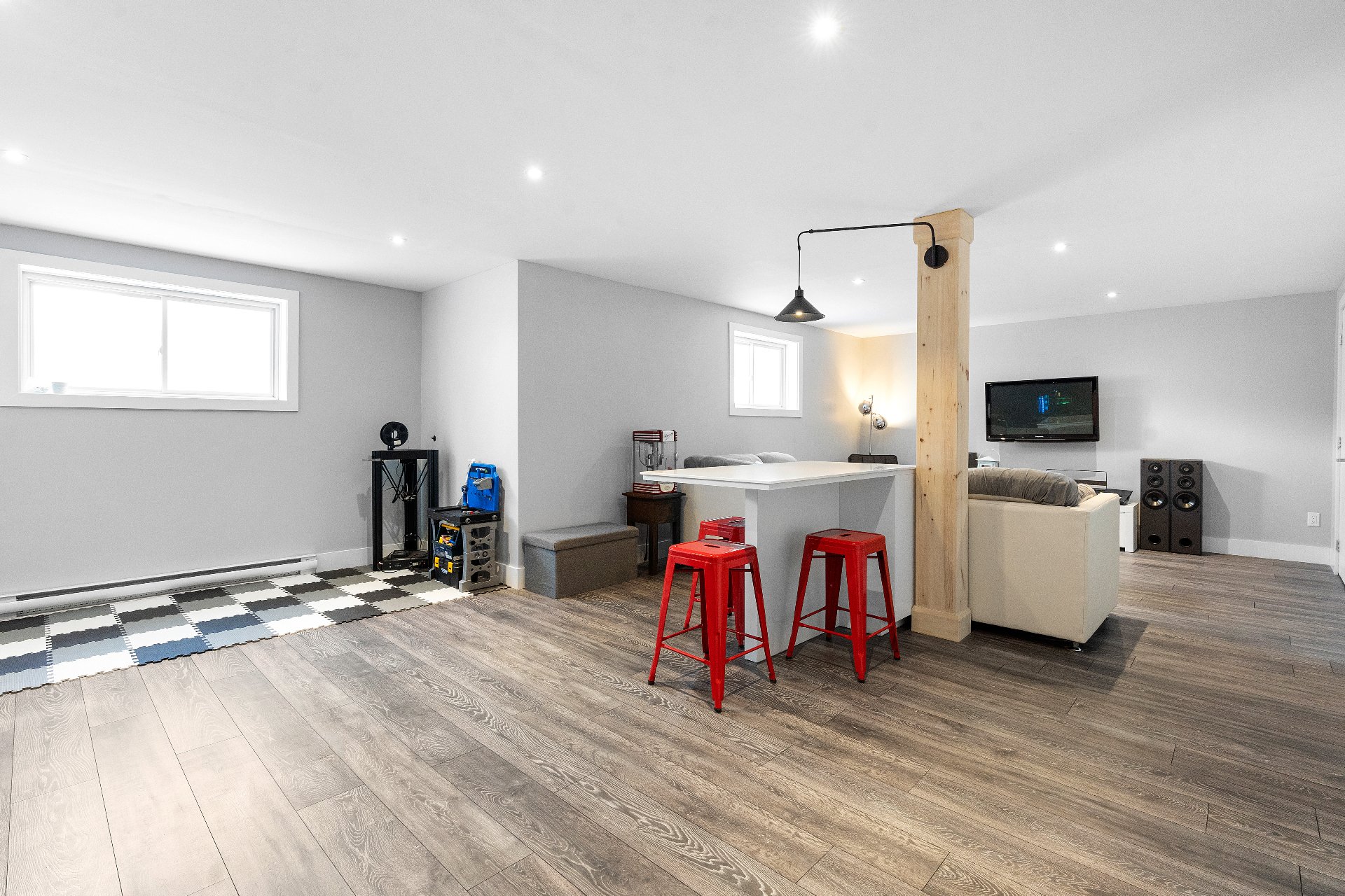 Le sous-sol totalement aménagé comprend une grande salle