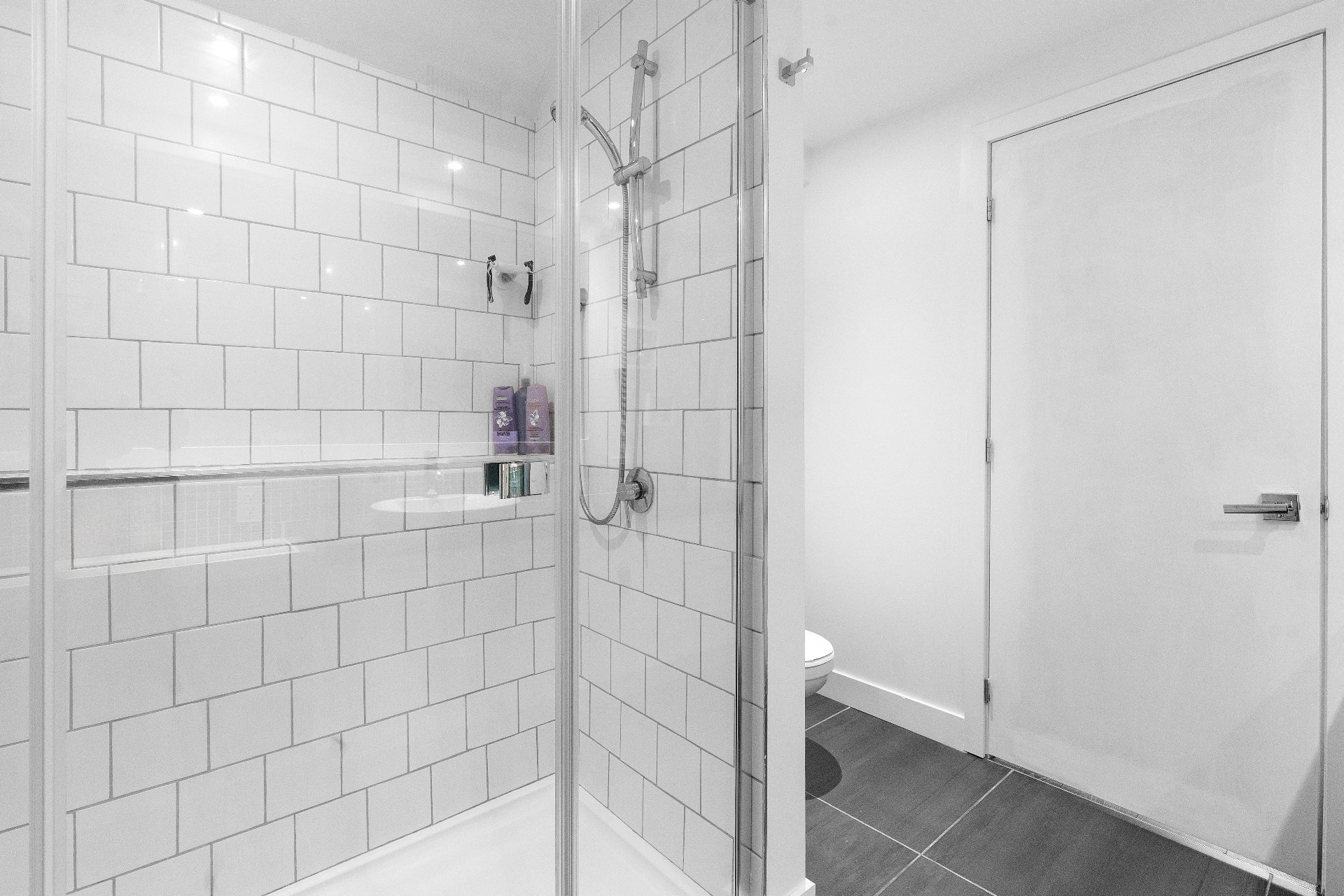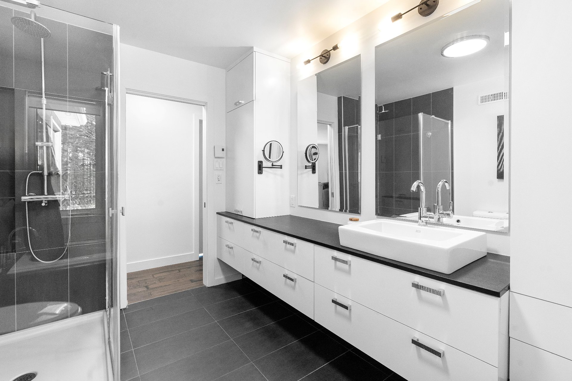 salle de bain moderne, lumineuse, avec douche indépendante.