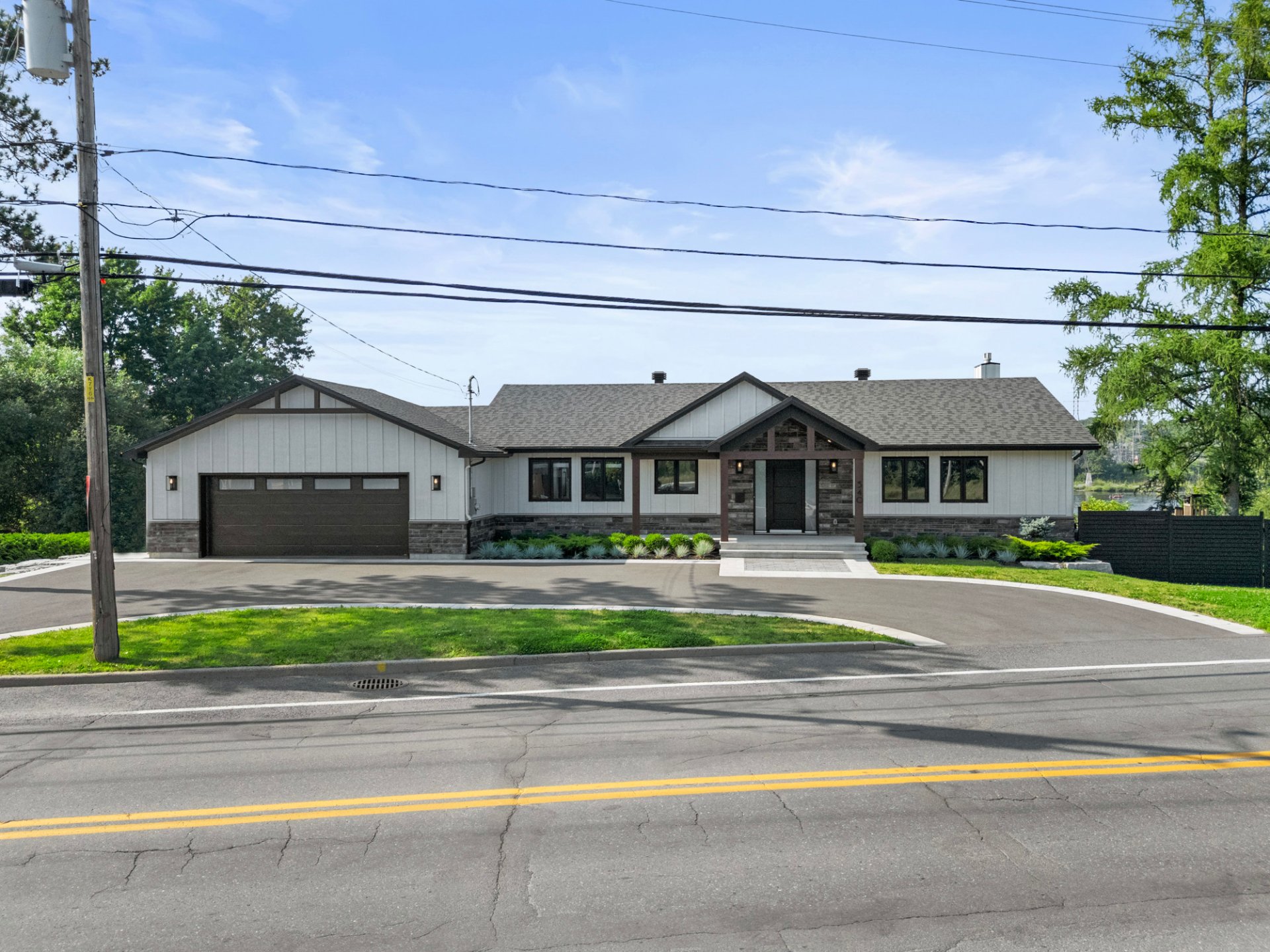 Prestigieuse propriété entièrement rénovée avec vue panoramique sur la rivière! À l'intérieur, aire ouverte baignée de lumière, cuisine haut de gamme, salon avec foyer et accès à une terrasse couverte. Trois chambres, salle de bain luxueuse et walk-in. Au sous-sol : salle familiale, bar, bureau vitré et salle de jeux. Cour aménagée avec piscine creusée, coin feu et remise. Garage double impeccable. Une résidence clé en main offrant espace, style et confort exceptionnel. À visiter sans tarder!