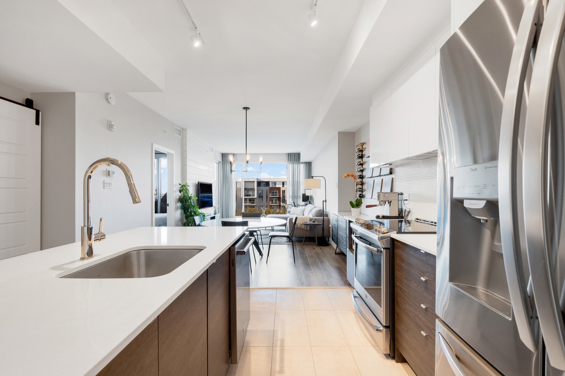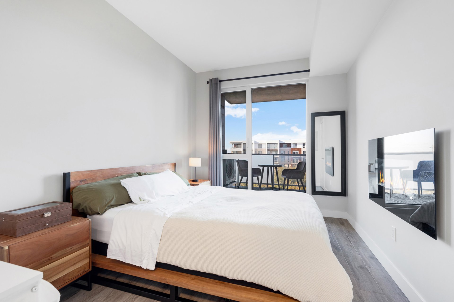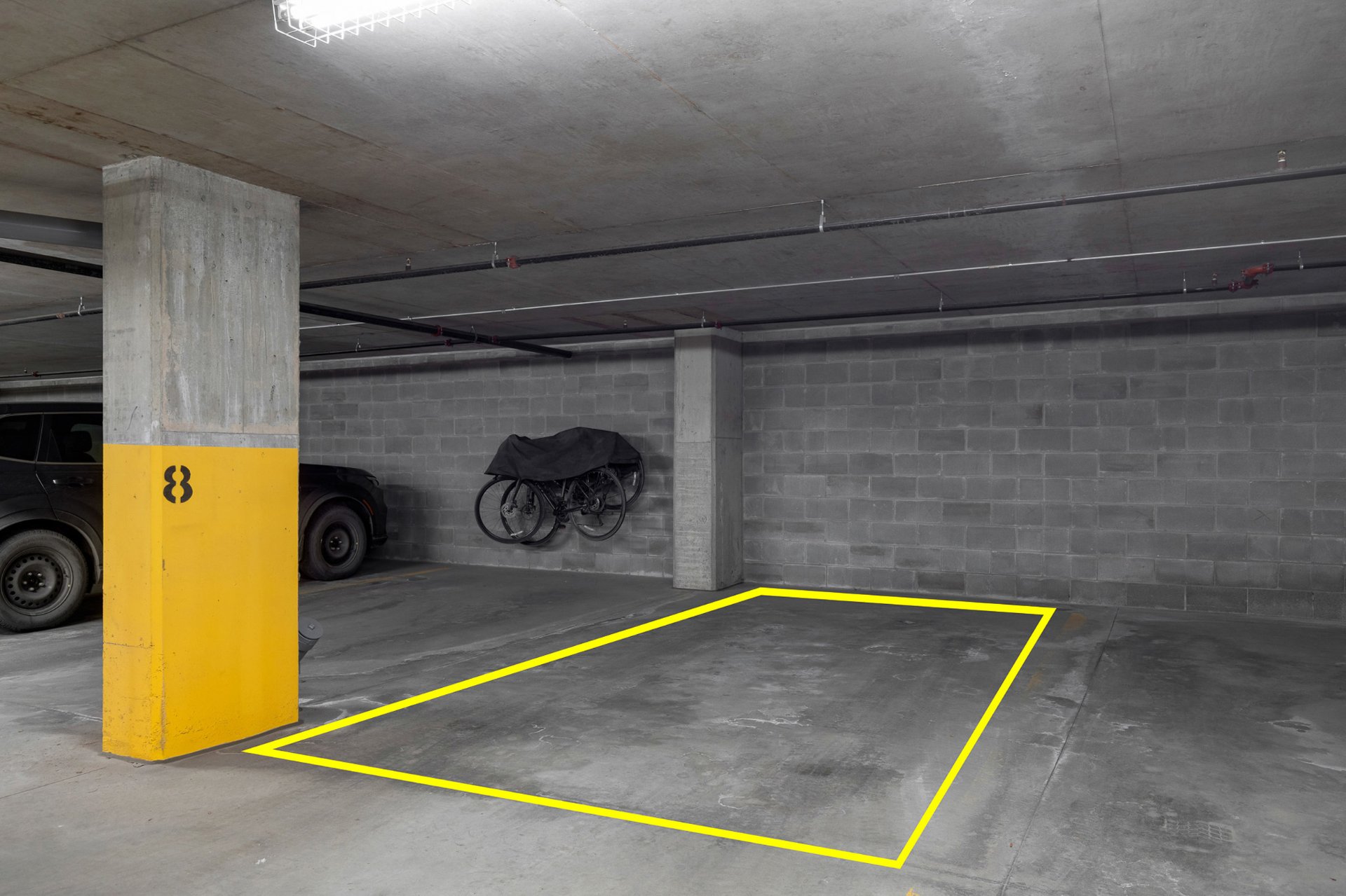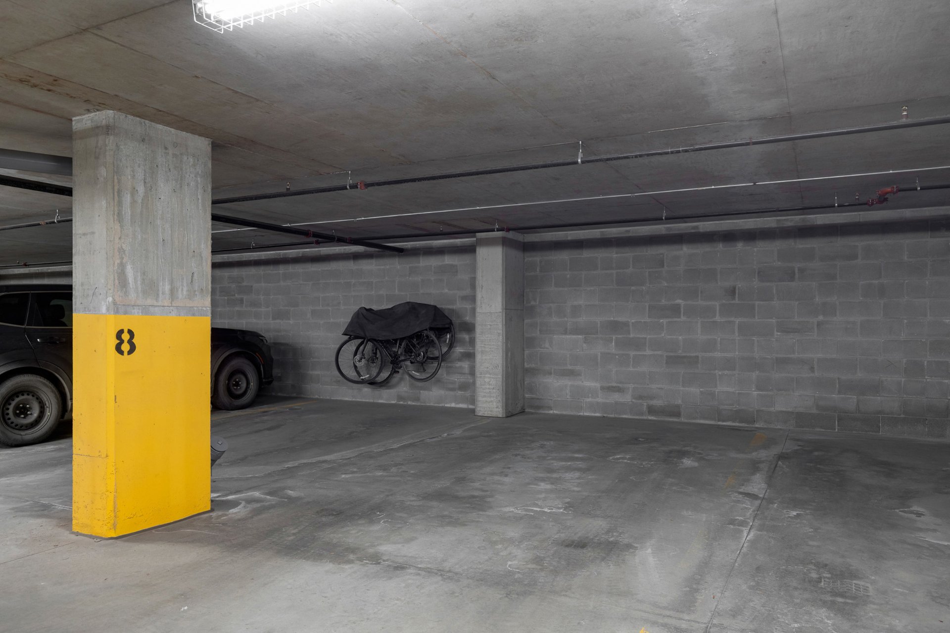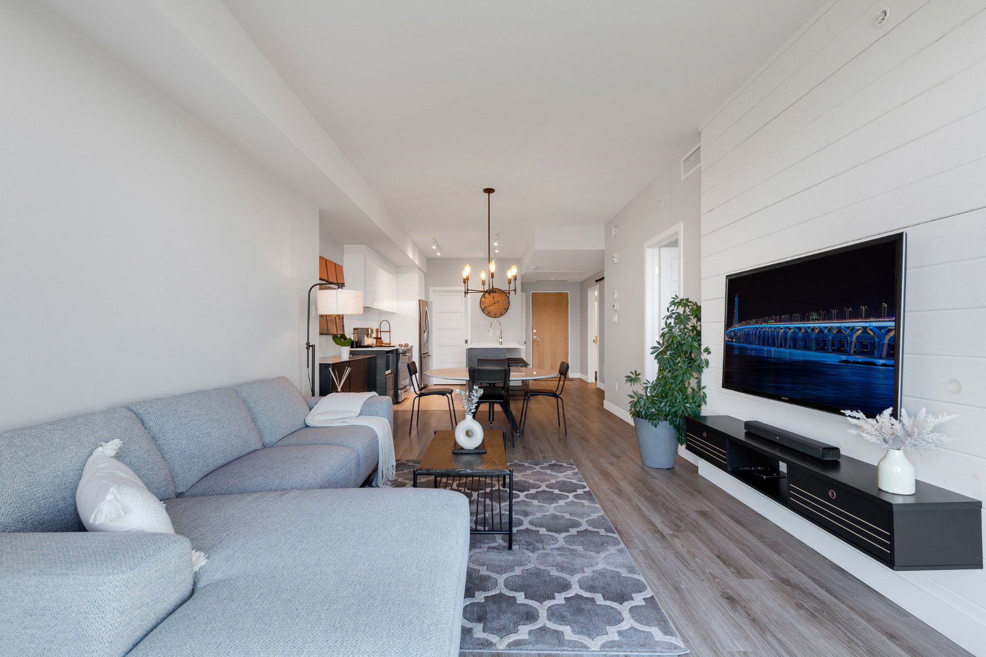 Condo moderne d'une chambre avec concept à aire ouverte et abondante lumière naturelle. Comprend cuisine moderne avec armoires deux tons, comptoirs élégants, dosseret subtil et garde-manger/espace de rangement. Chambre est un véritable havre de paix avec balcon privé, cheminée murale et espace suffisant pour un coin détente. L'unité inclut stationnement intérieur et casier. Commodités exceptionnelles : terrain clôturé, piscine, spa, BBQ, putting green, terrasse et gazebo. Emplacement idéal près des services, activités et autoroutes, dans un environnement paisible et sécurisé.